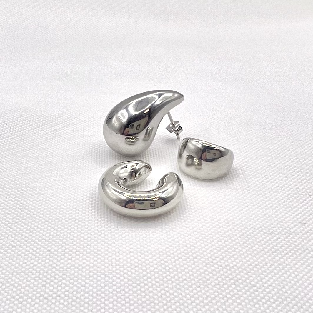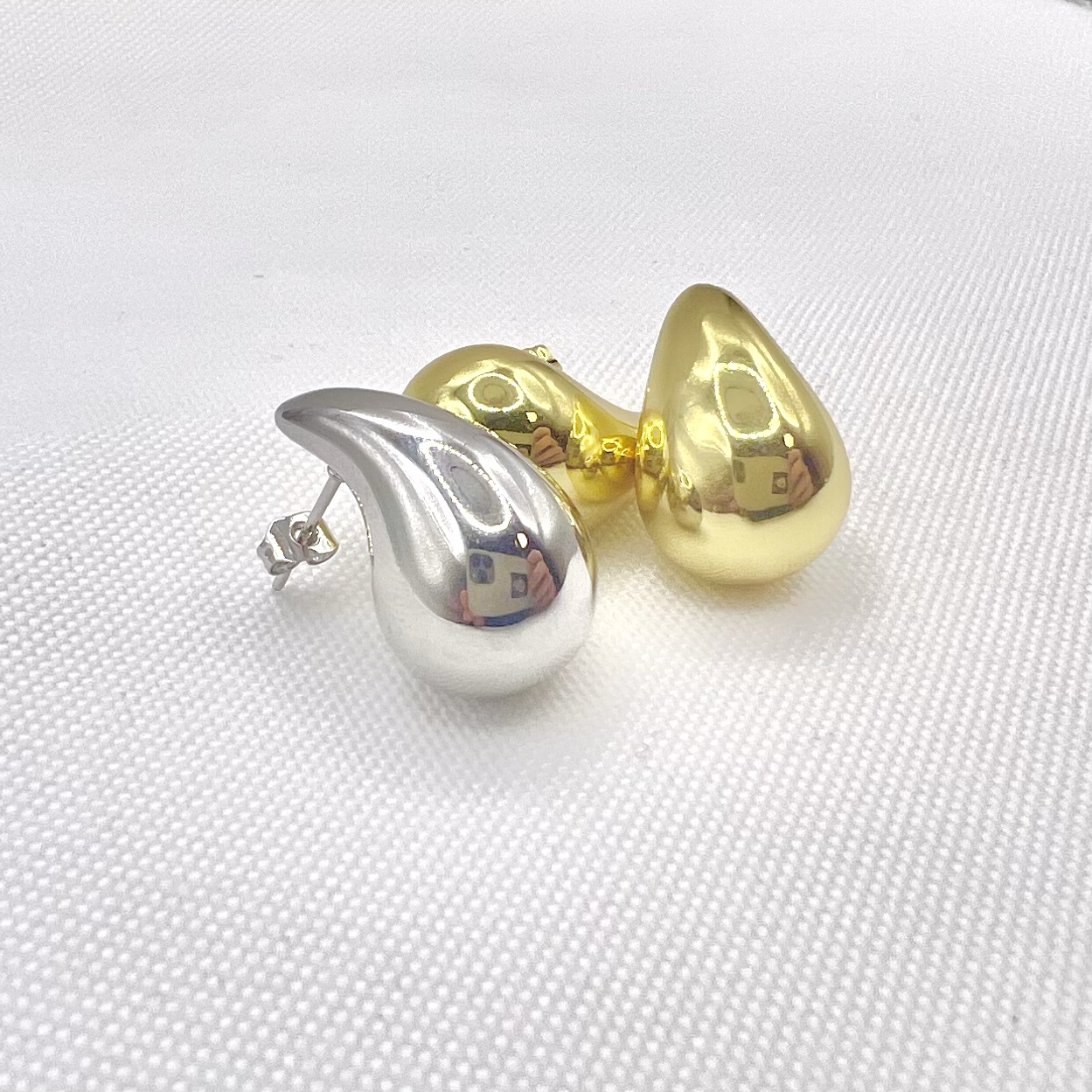 עגיל בצורת טיפה גדולה חלקה מרודיום איכותי