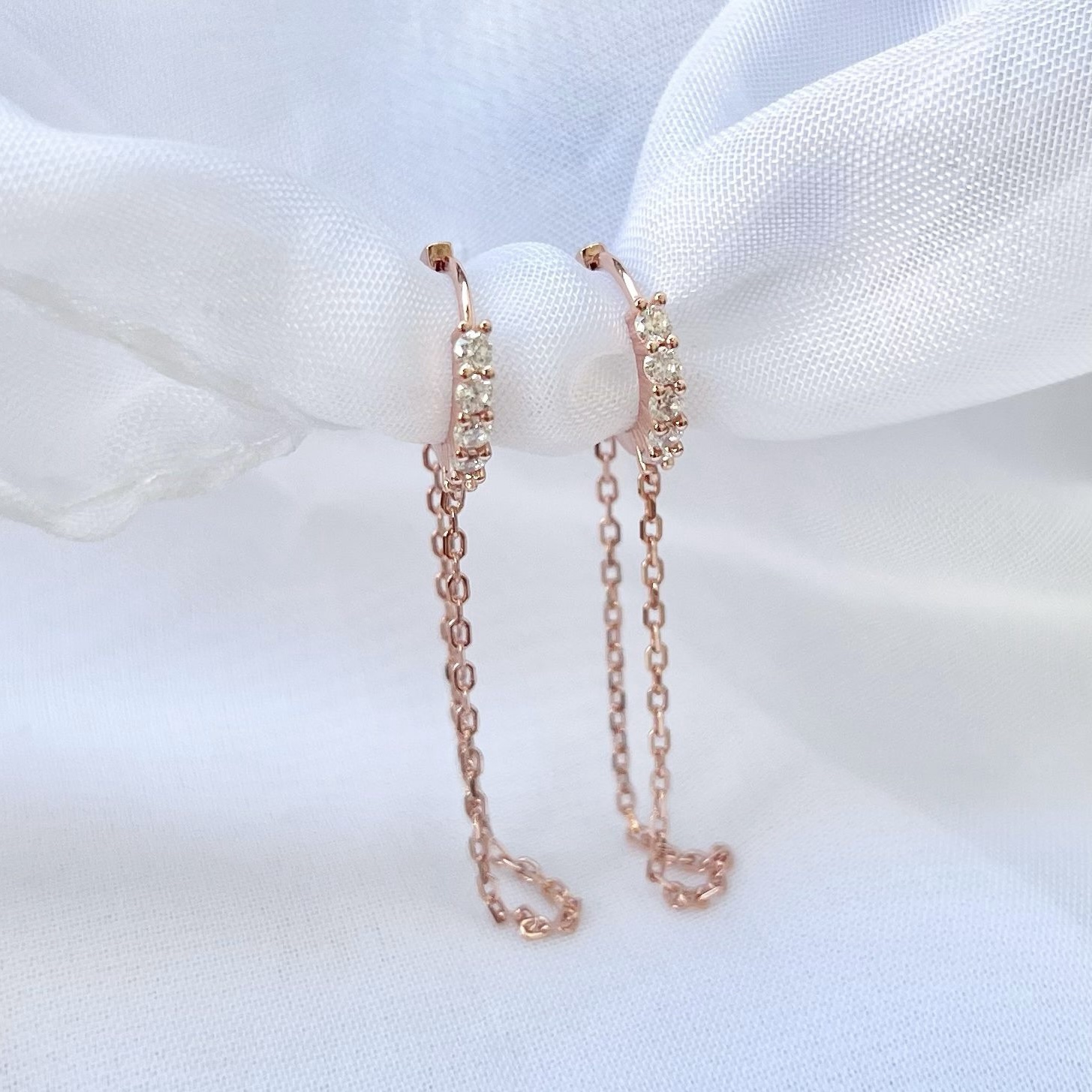 עגיל חישוק משובץ אבני זרקון עם שרשרת נופלת מכסף אמיתי 925