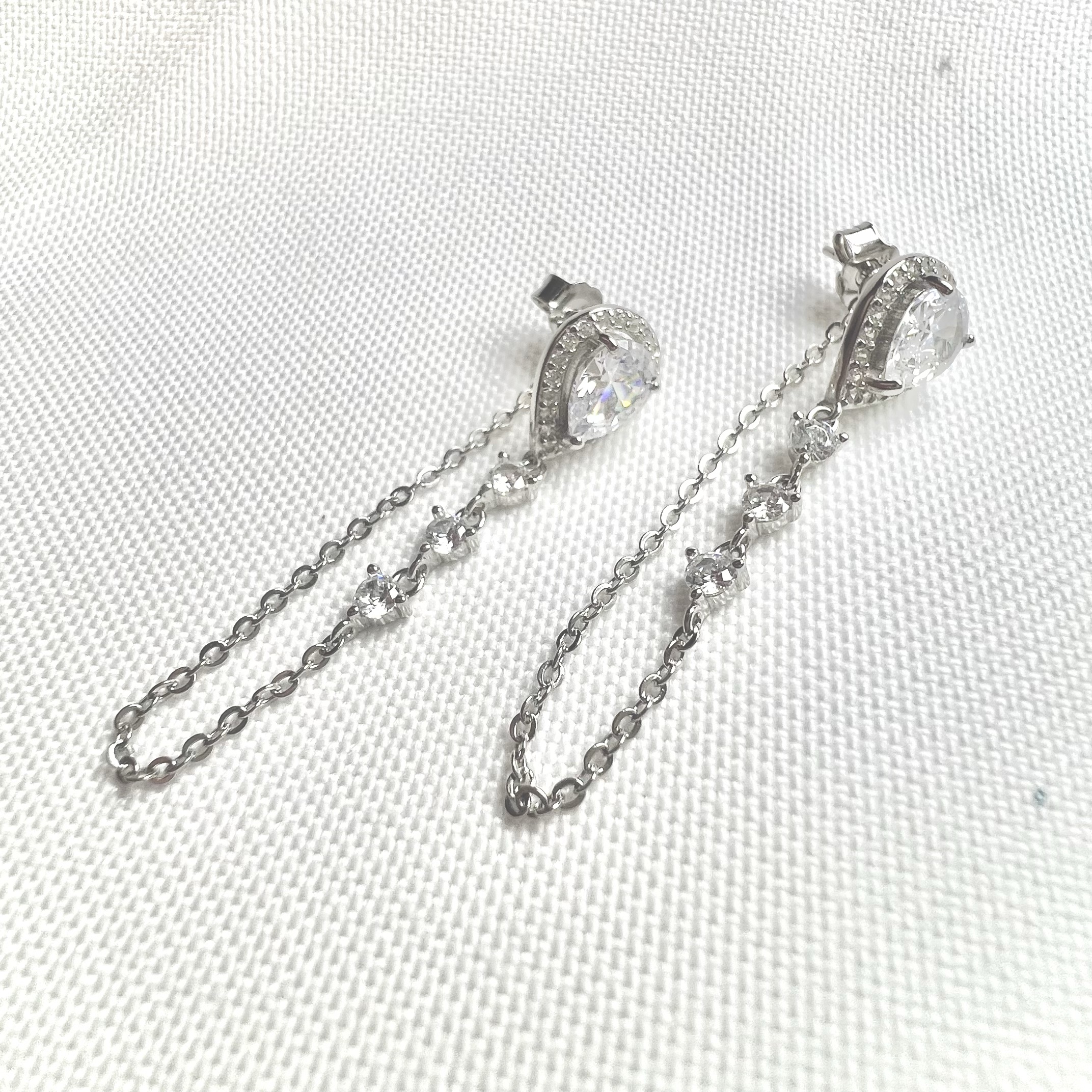עגיל צמוד עם אבן זרקון בצורת טיפה משובץ מסביב עם אבנים נופלים מכסף אמיתי 925