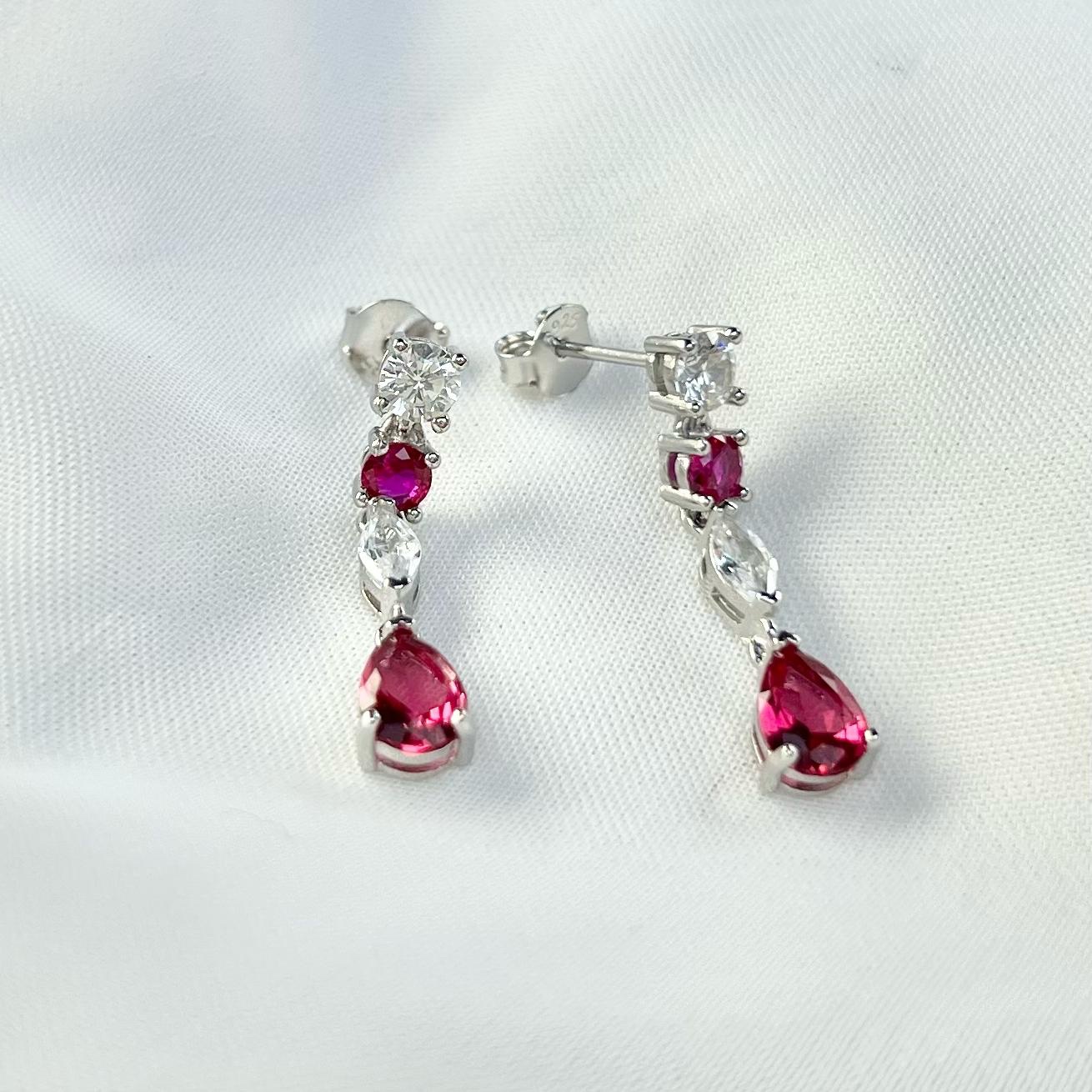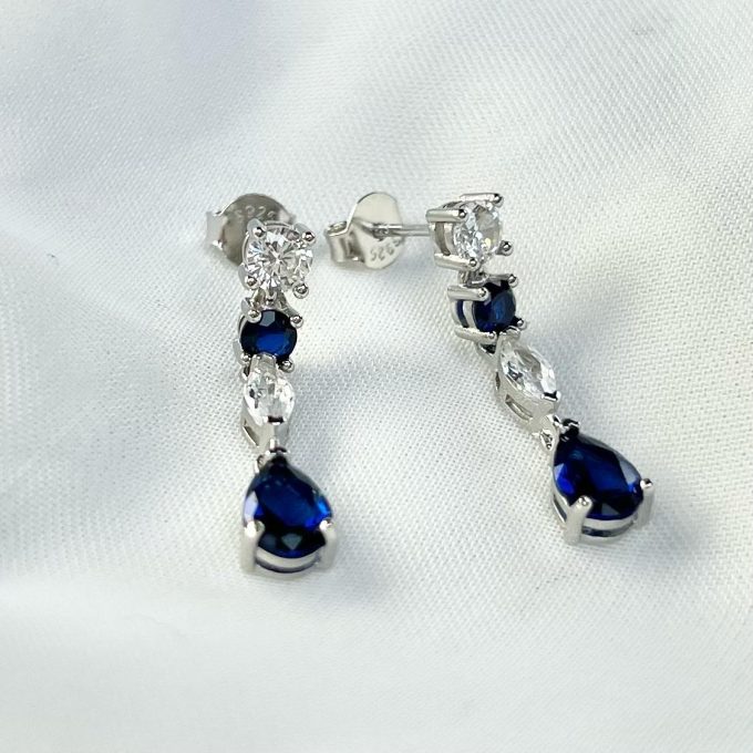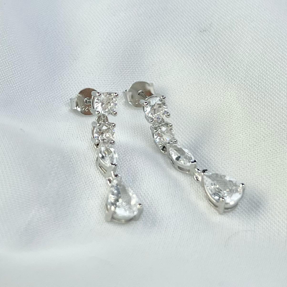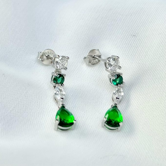 עגיל צמוד נופל עם אבני זרקון עגולות שמשתנות לאבני זרקון בצורת טיפה במגוון צבעים מכסף אמיתי 925