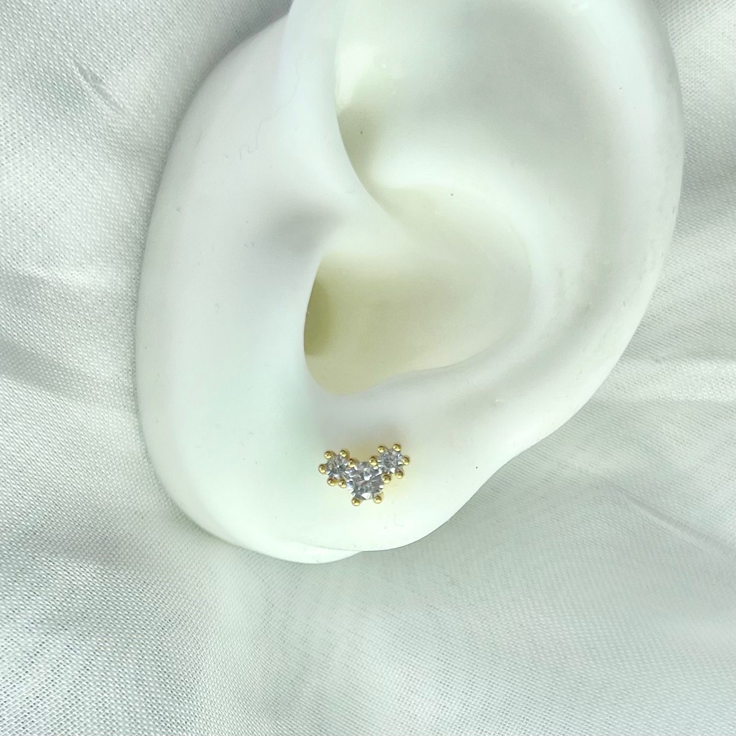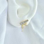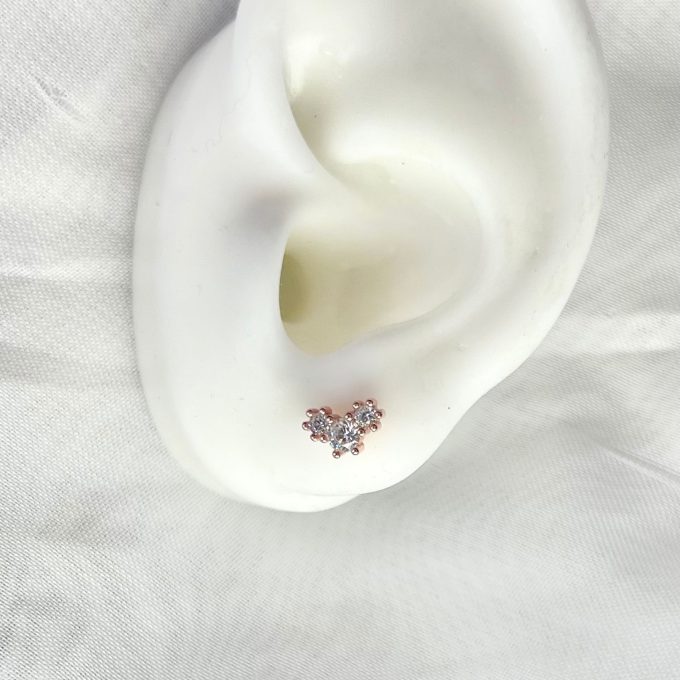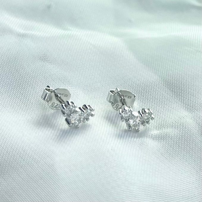 עגיל צמוד עם שלושה אבני זרקון עגולות מחוברות מכסף אמיתי 925