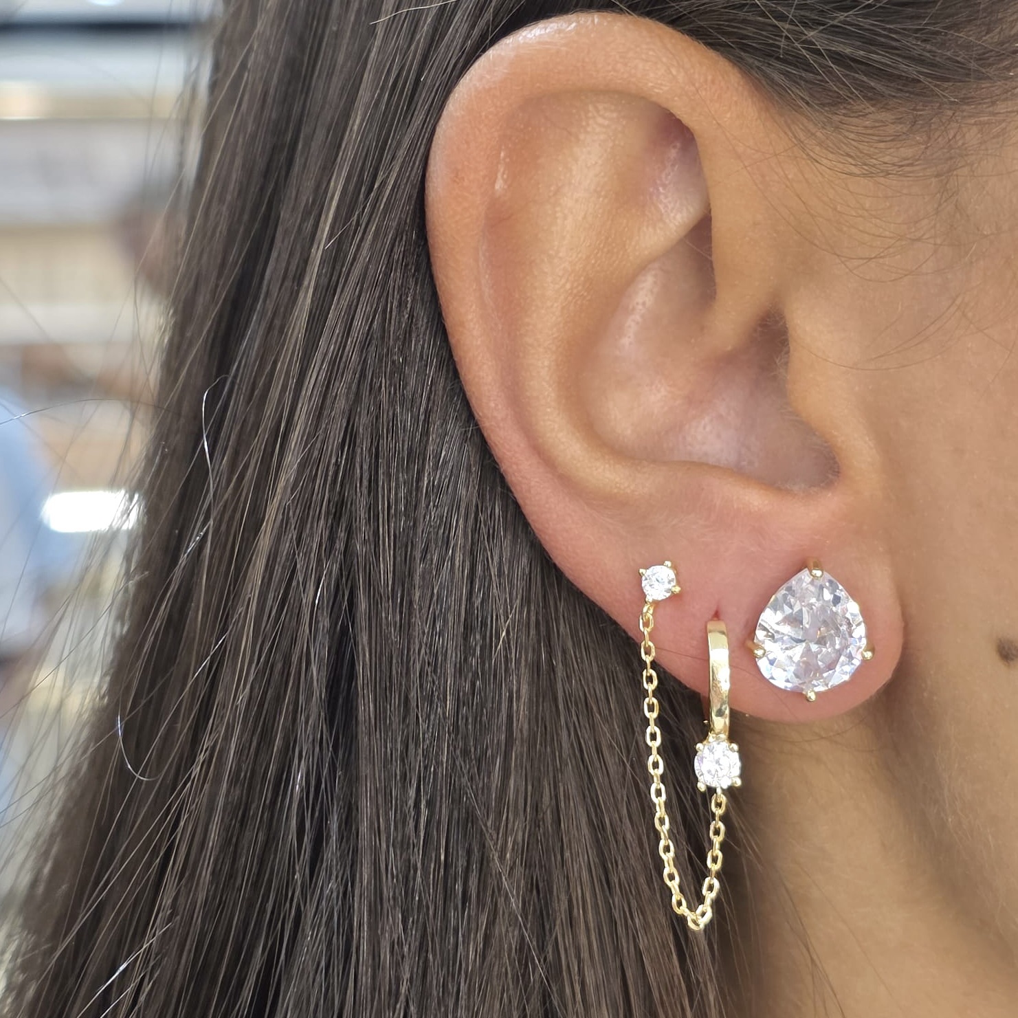 עגיל צמוד משובץ אבן זרקון בצורת טיפה