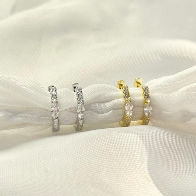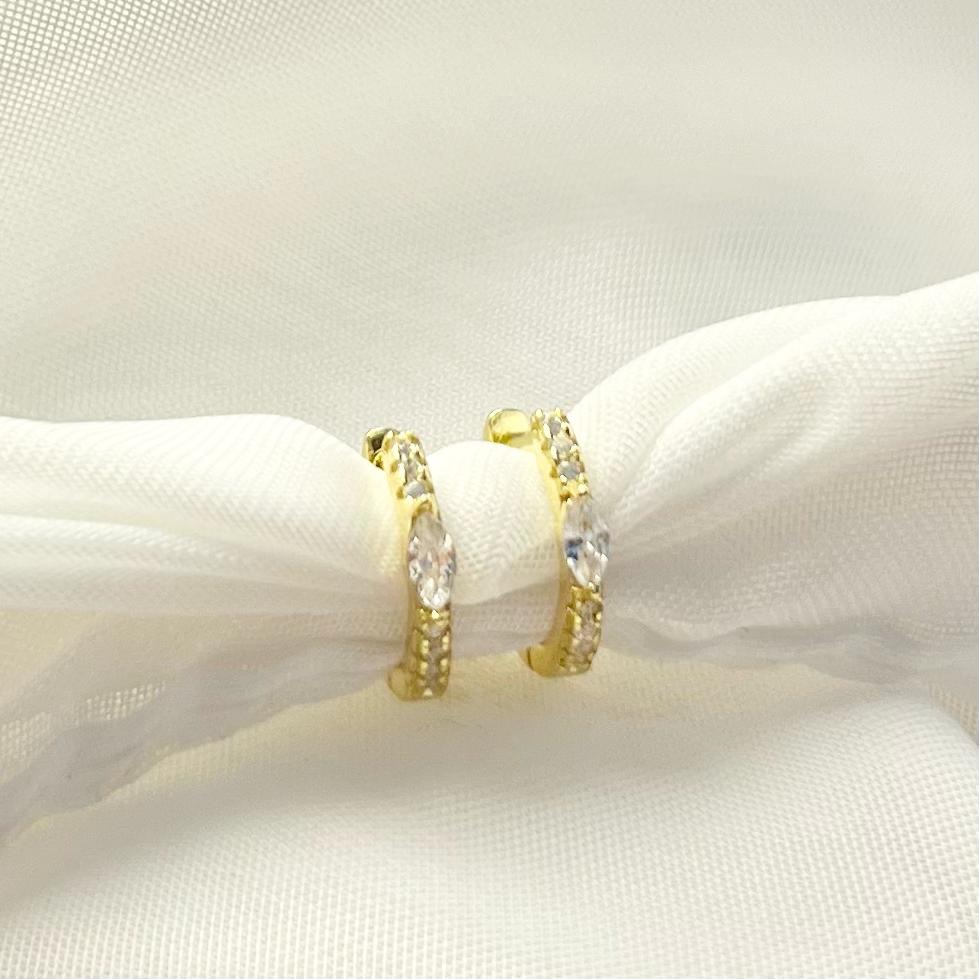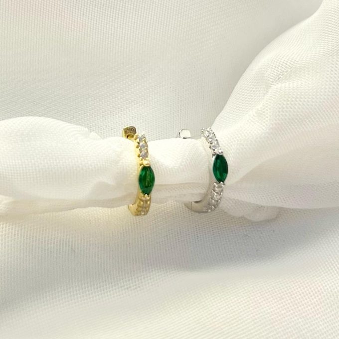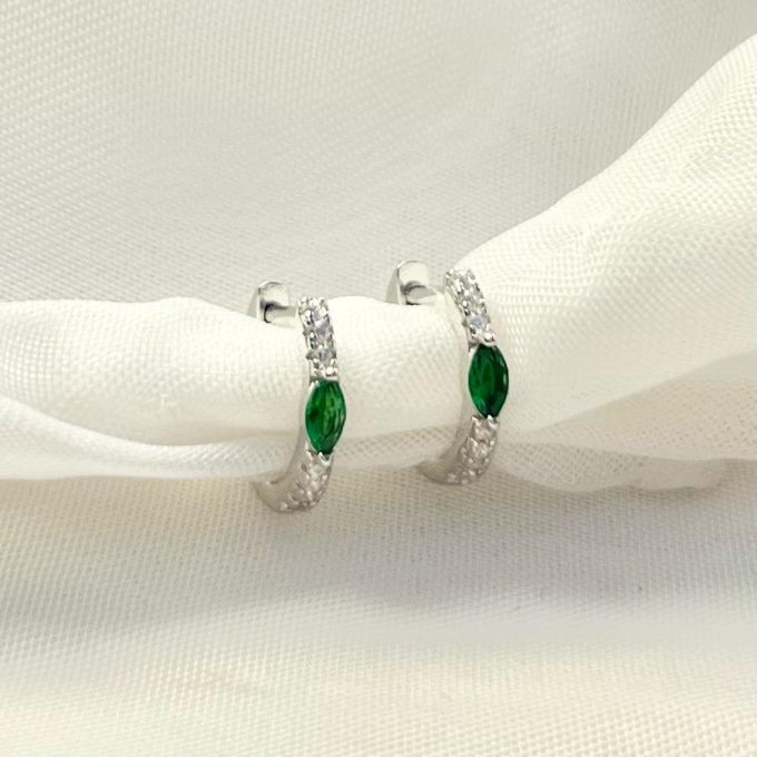 עגיל חישוק משובץ זרקונים עם אבן זרקון גדולה בצורת טיפה במרכז במבחר צבעים מכסף אמיתי 925