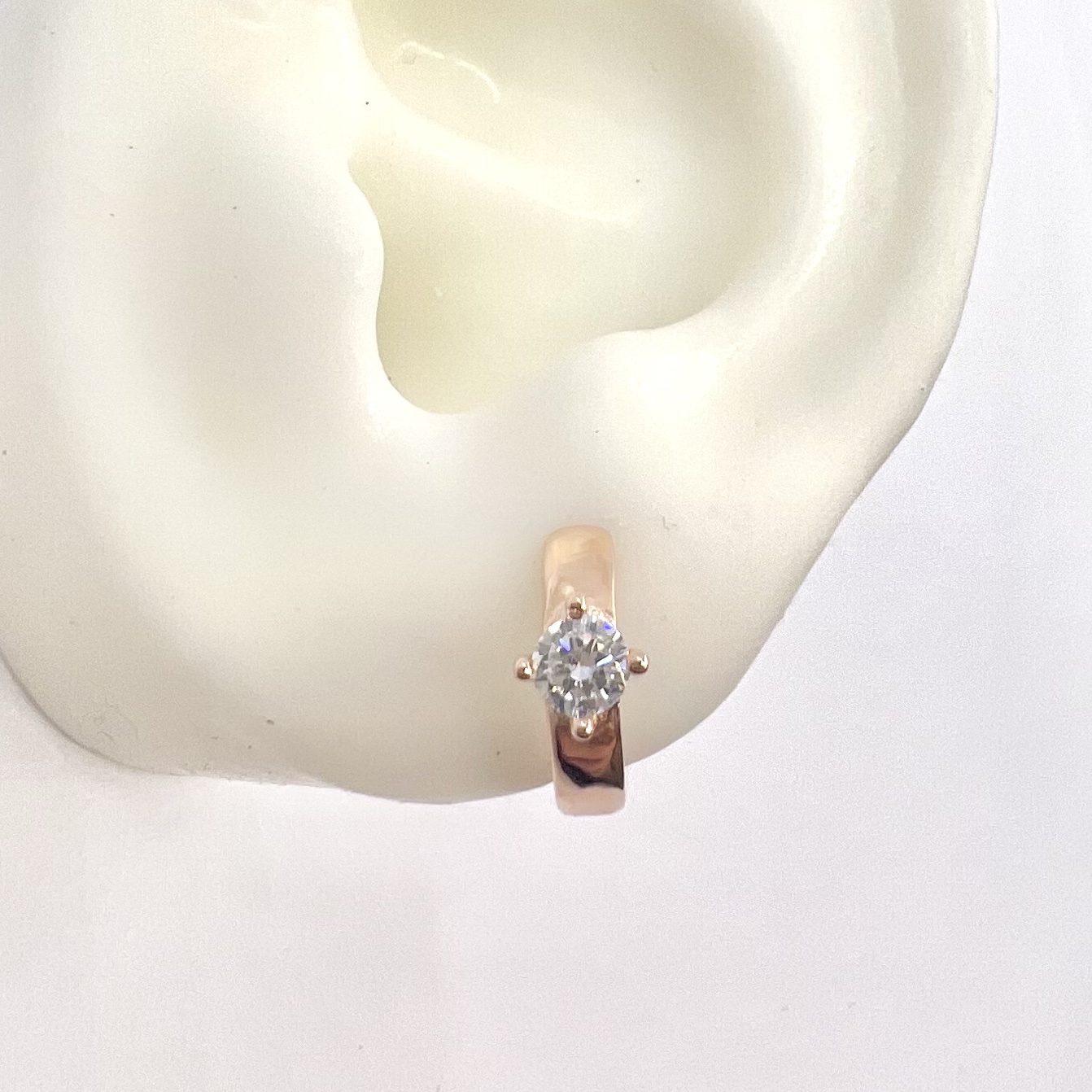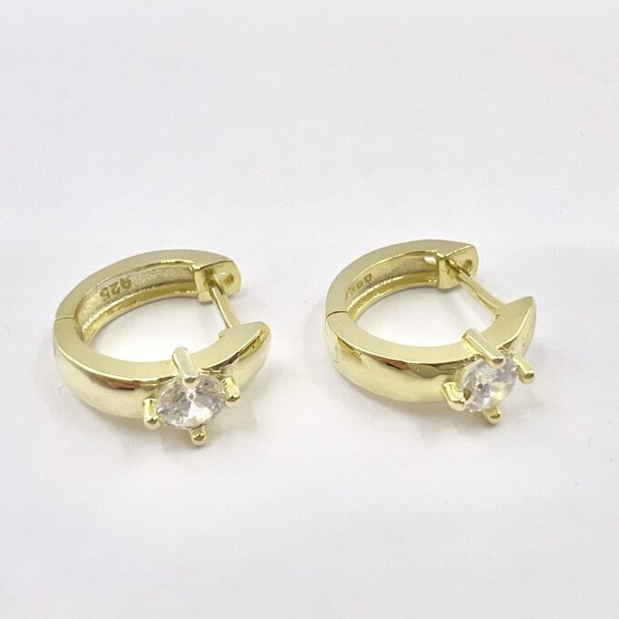 עגיל חישוק חלק מדובת אבן זרקון עגולה במרכז מכסף אמיתי 925