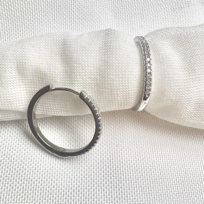 עגיל חישוק גדול משובץ אבני זרקון מכסף אמיתי 925