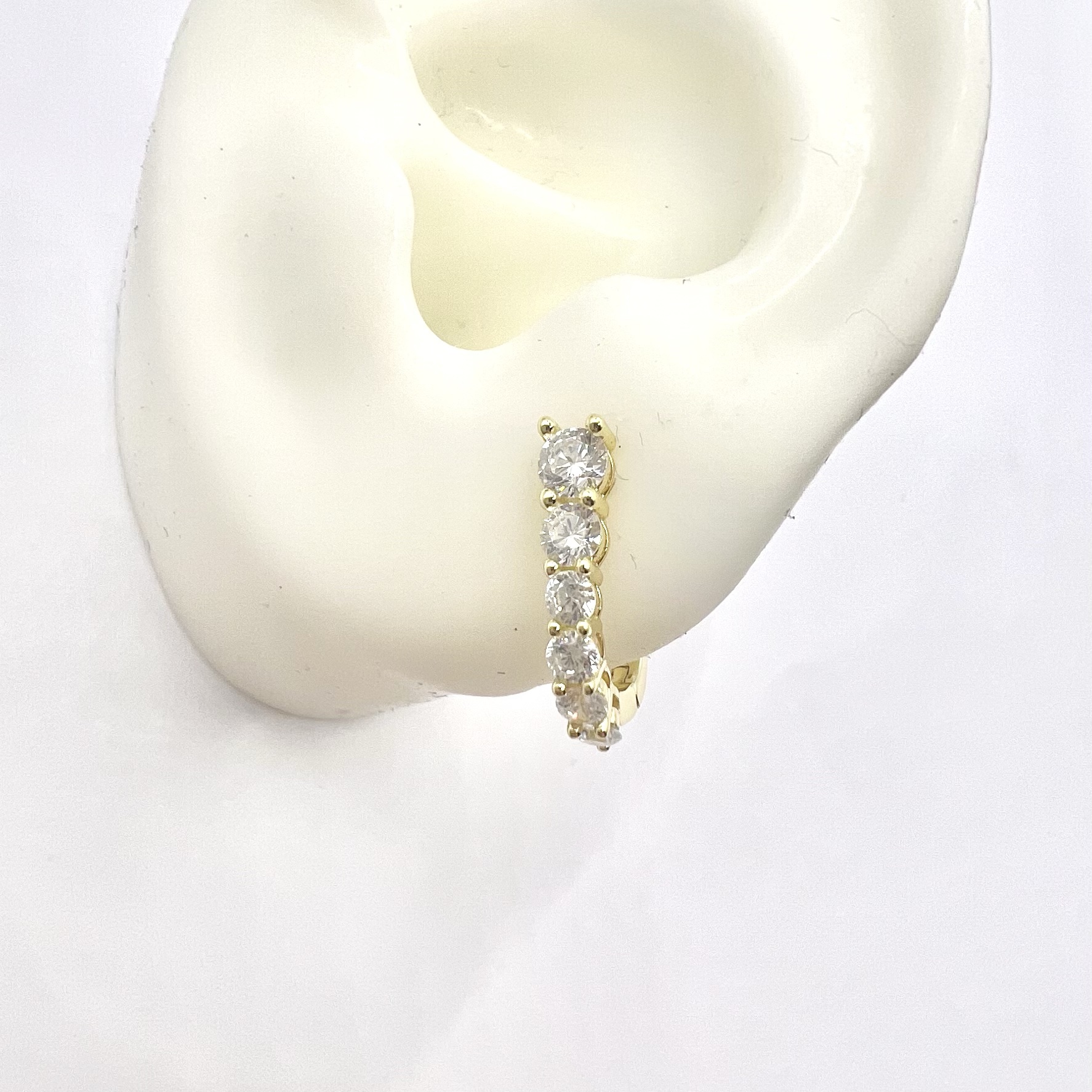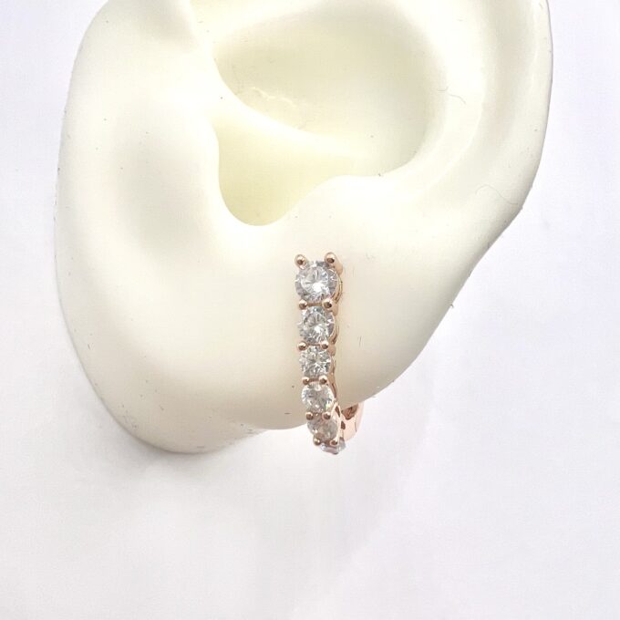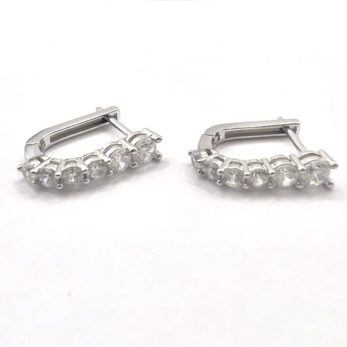 עגיל חישוק משובץ אבני זרקון בצד אחד מכסף אמיתי 925
