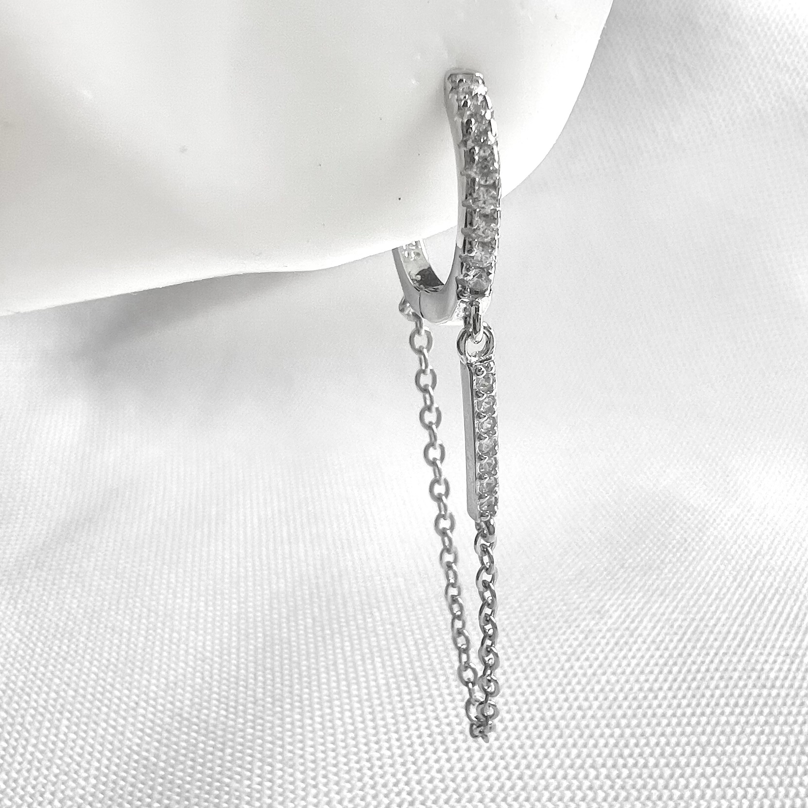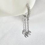 עגיל חישוק משובץ אבני זרקון עם פלטה דקה משובצת נופלת מכסף אמיתי 925