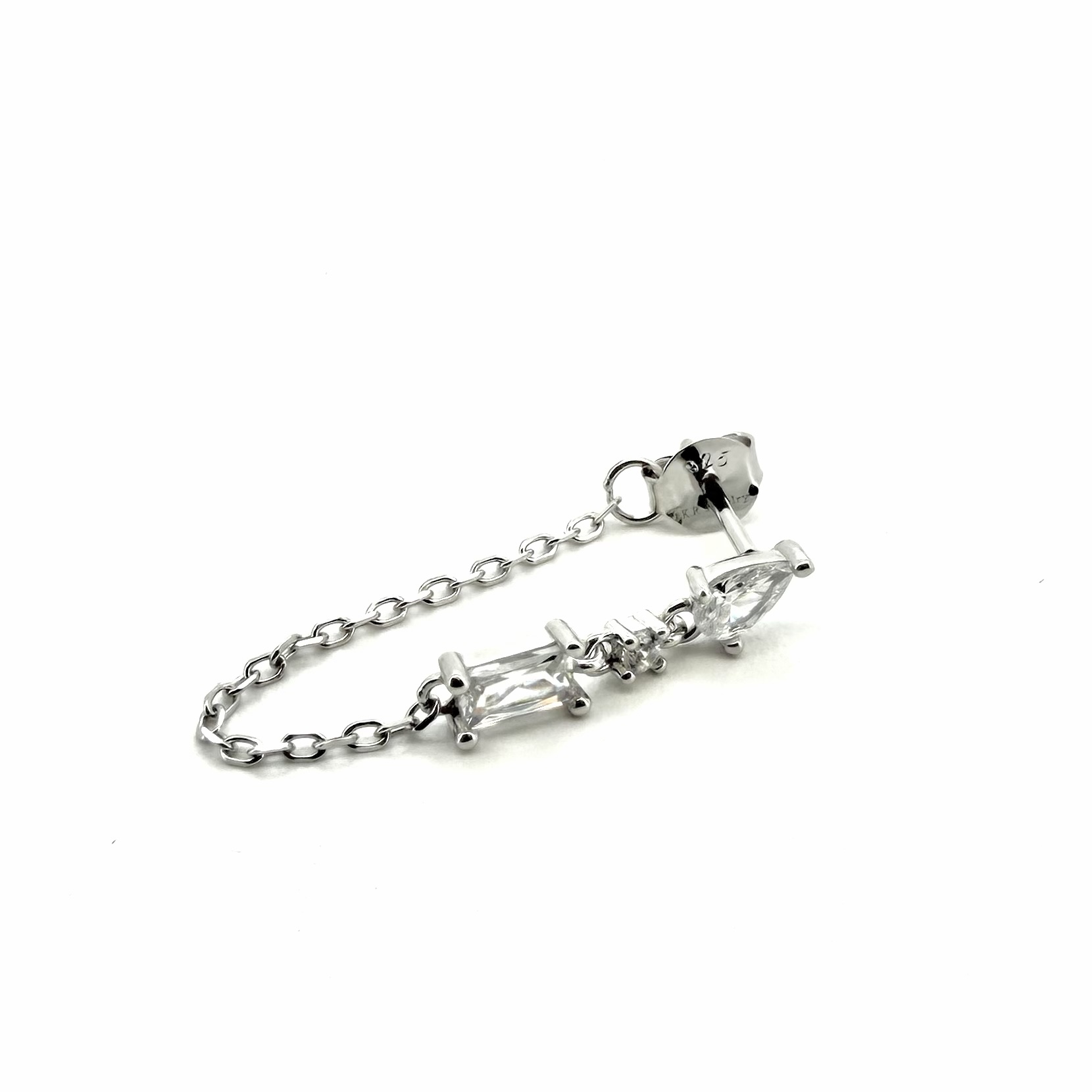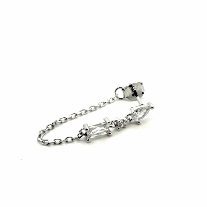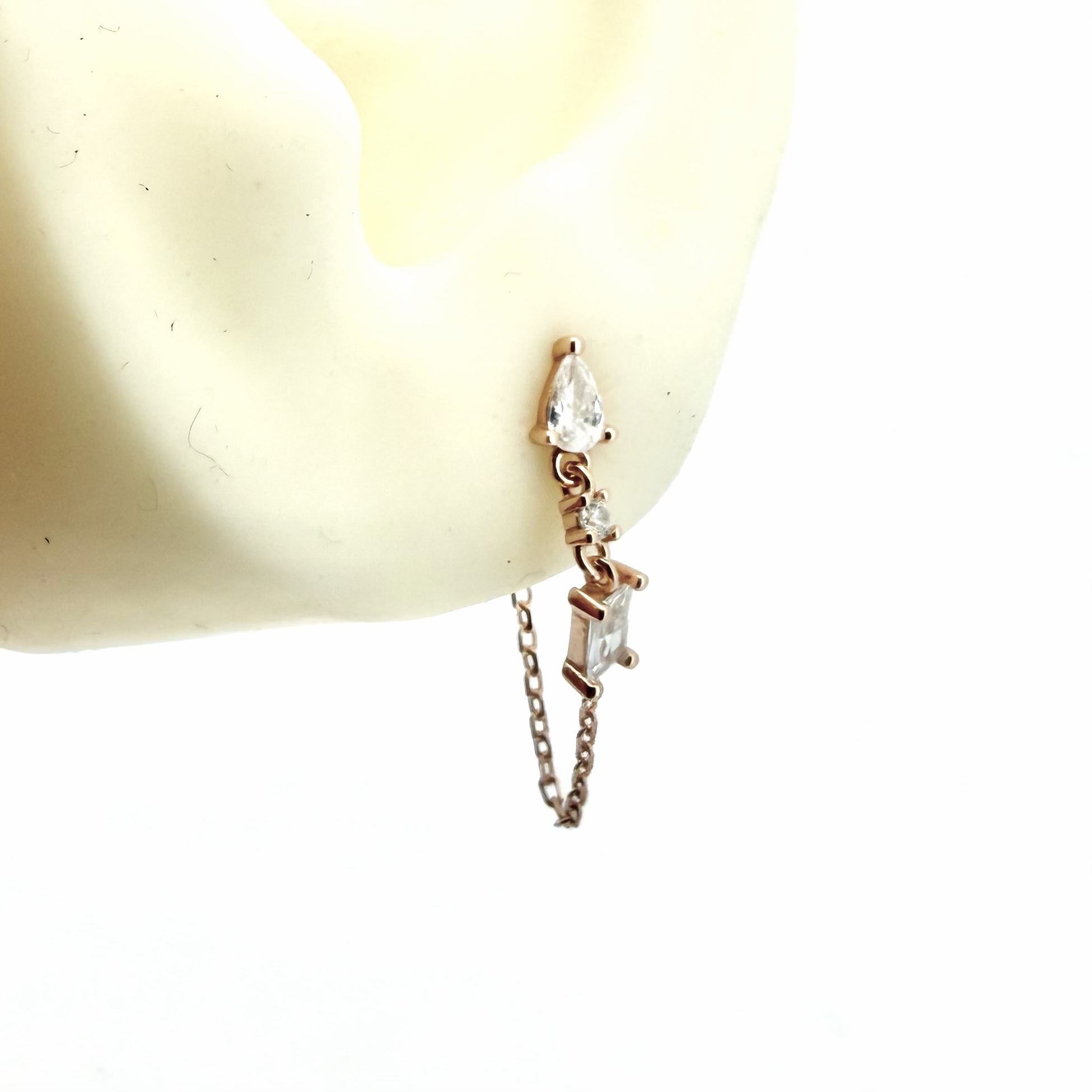 עגיל צמוד משובץ אבן זרקון בצורת טיפה עם שרשרת מחוברת לסוגר ואבני זרקון