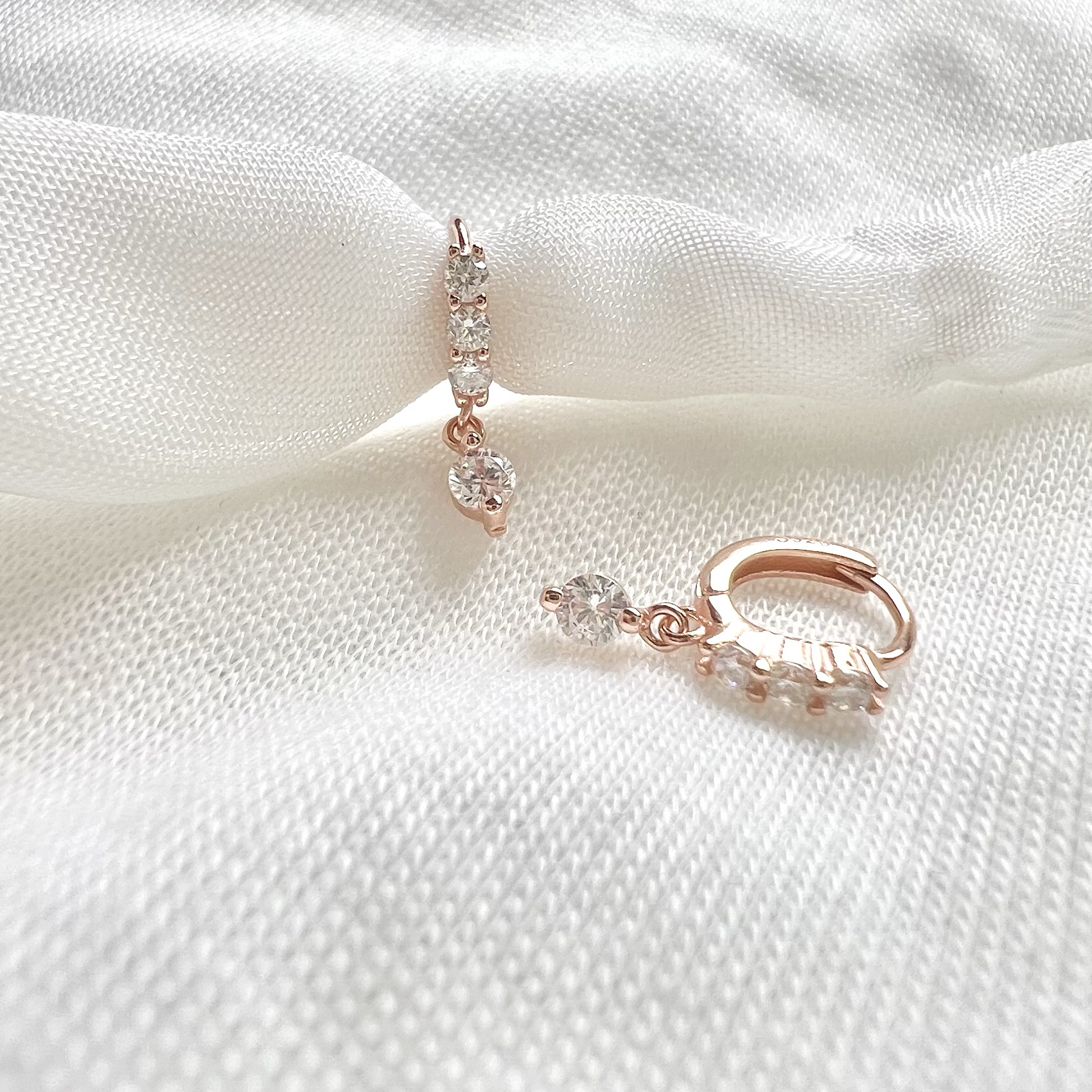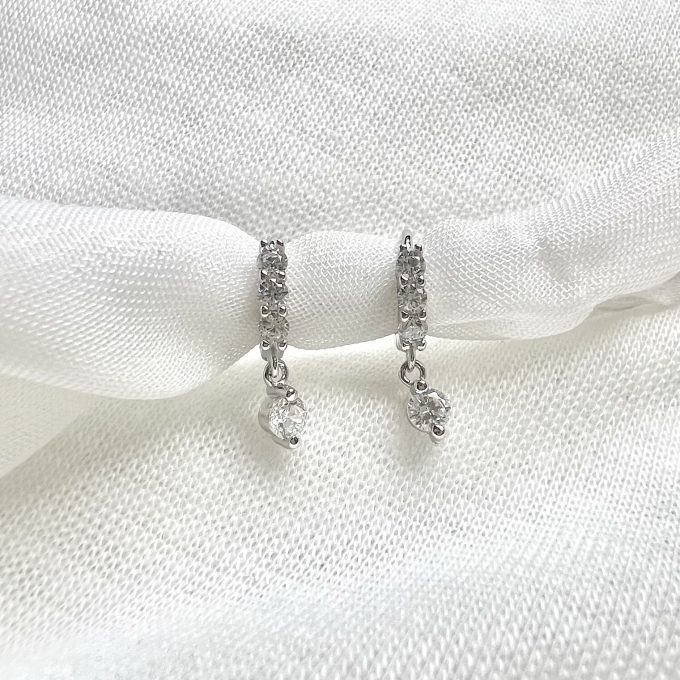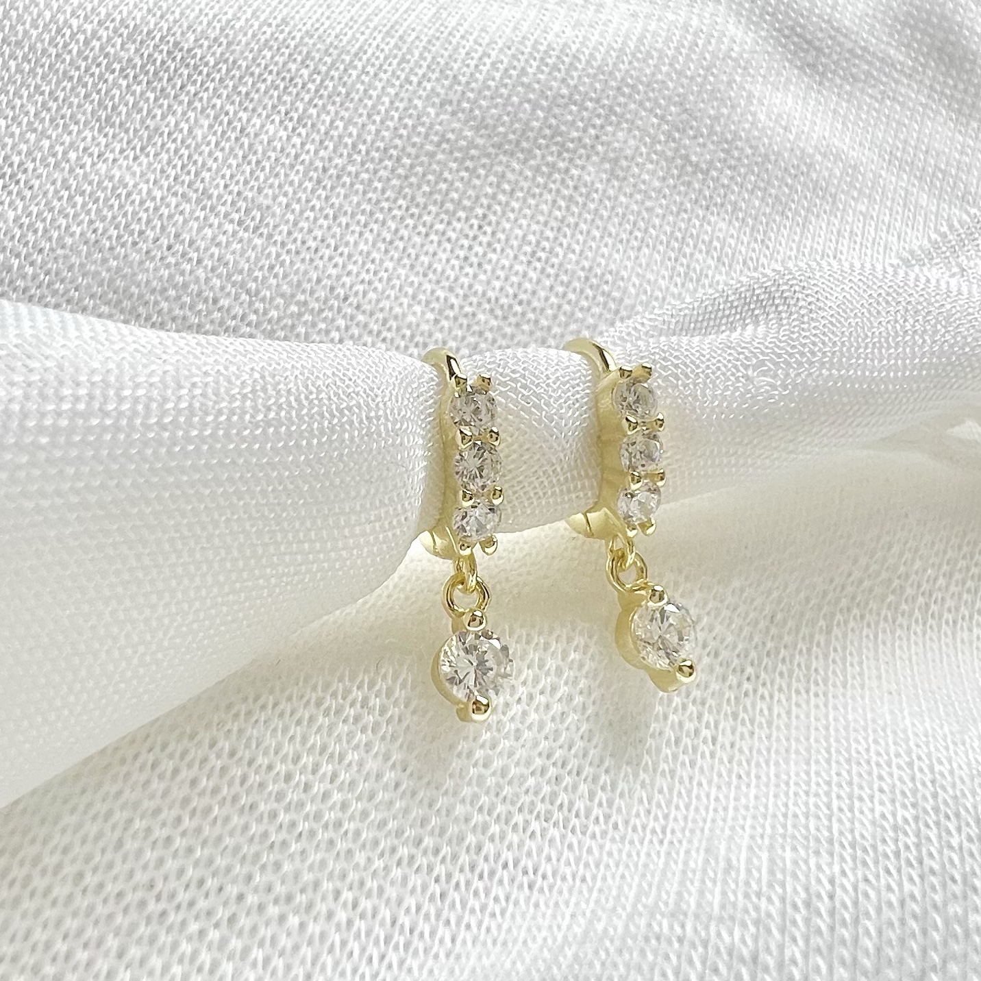 עגיל מיני חישוק משובץ אבני זרקון עגולות עם אבן זרקון נופלת מכסף אמיתי 925