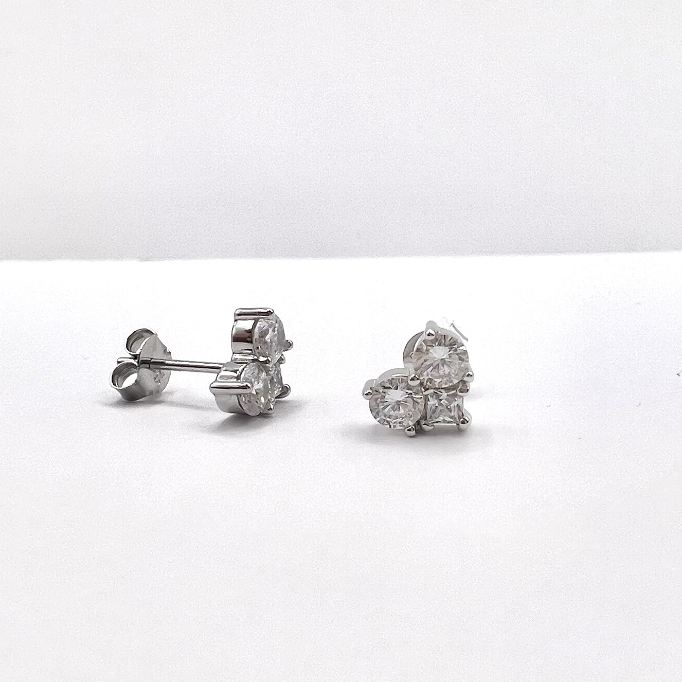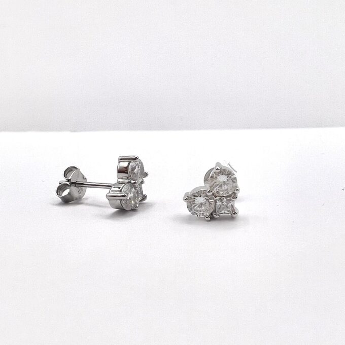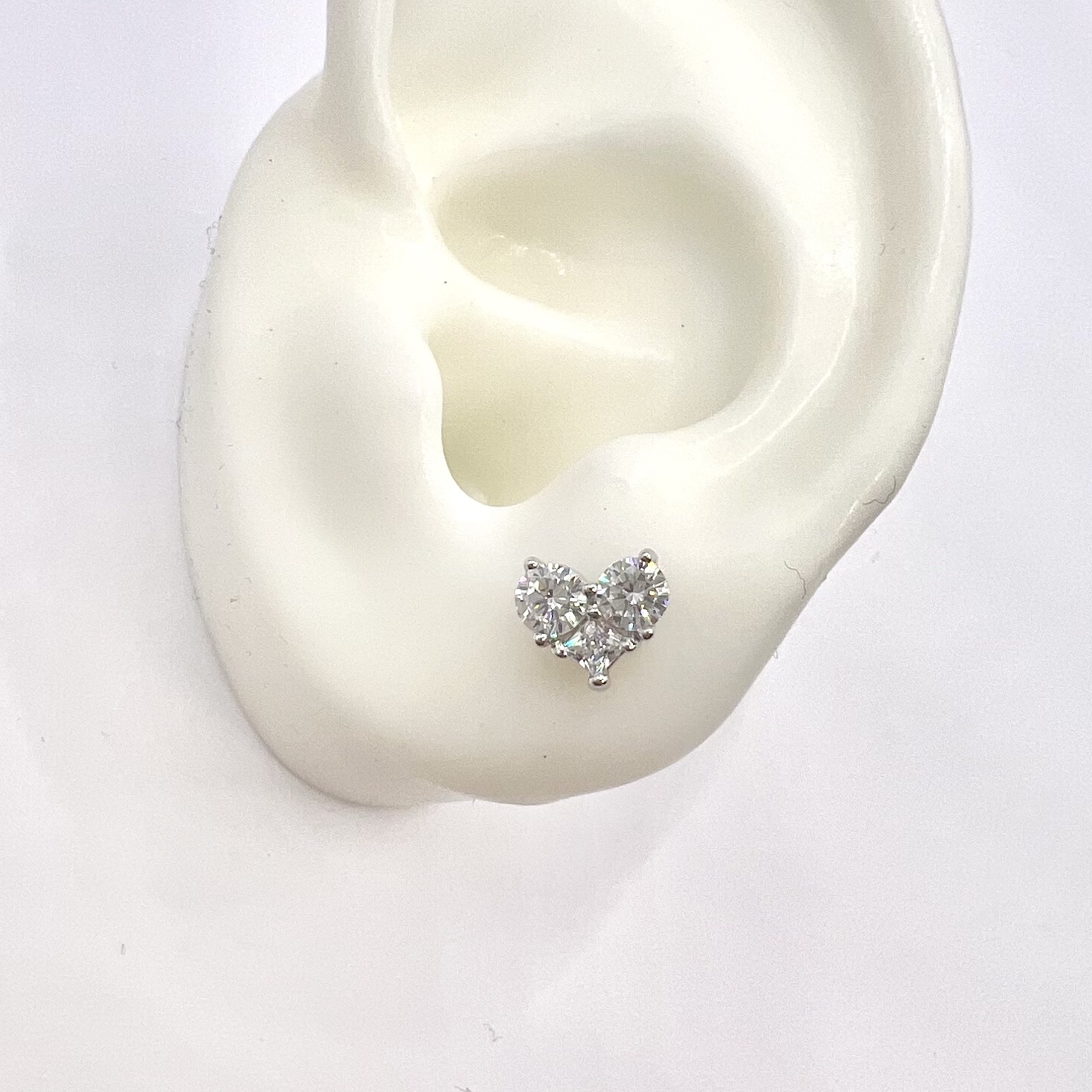 עגיל צמוד משובץ שלוש אבני זרקון שיוצרים לב מכסף אמיתי 925