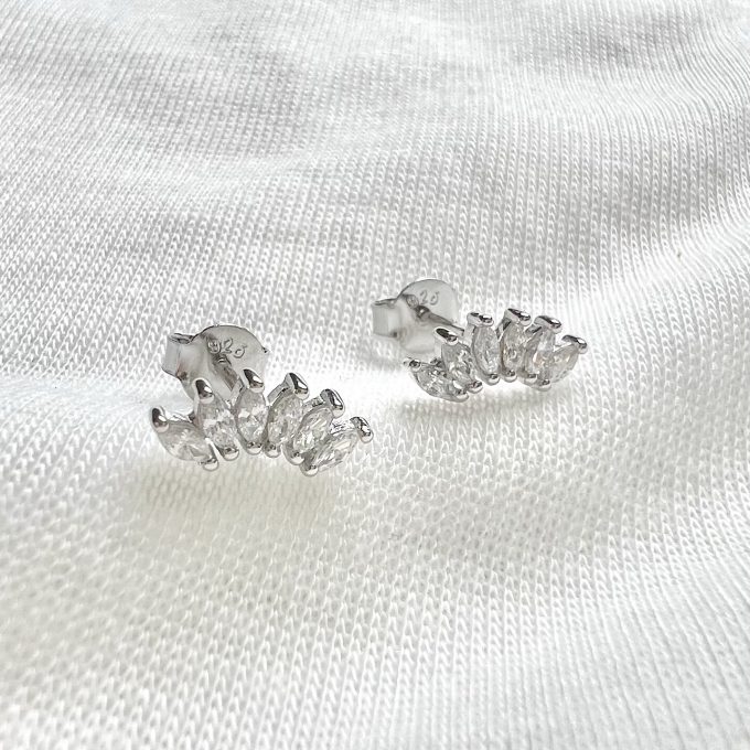 עגיל צמוד משובץ אבני זרקון שיוצרת לוטוס מכסף אמיתי 925
