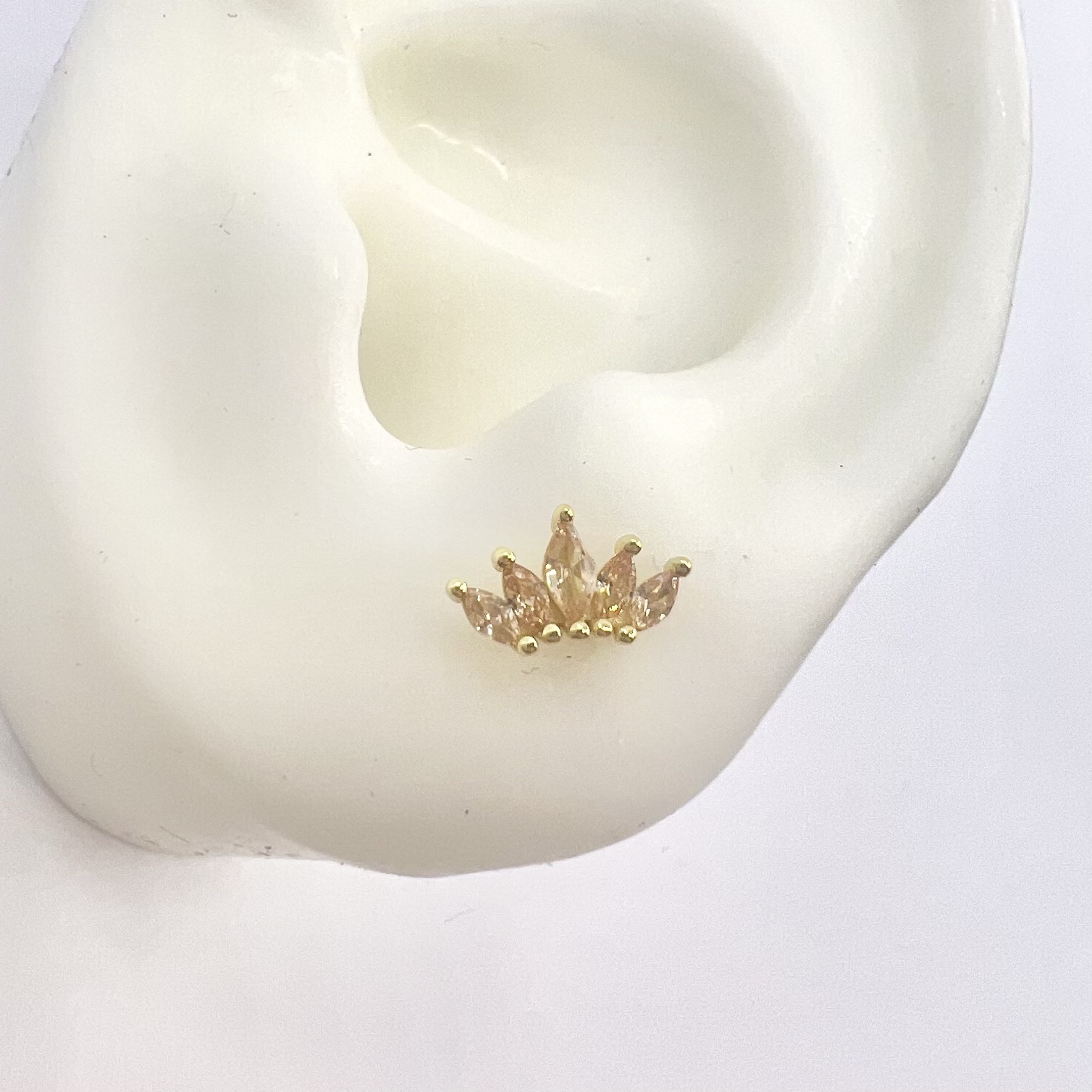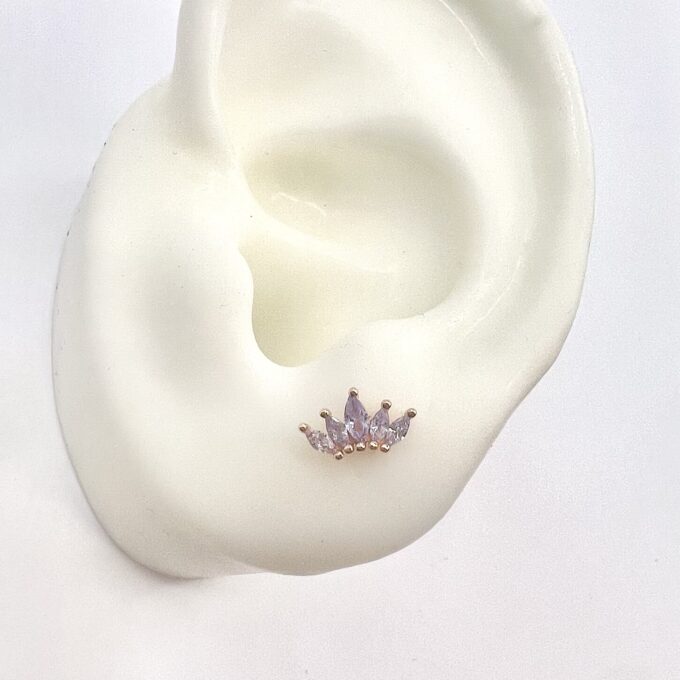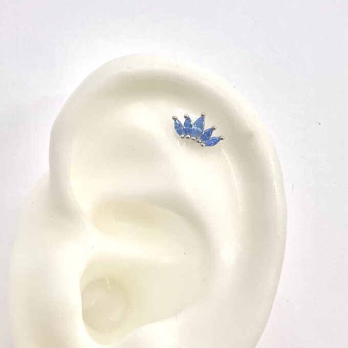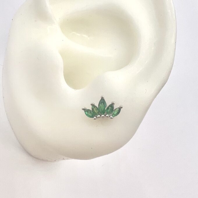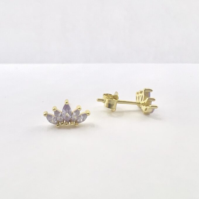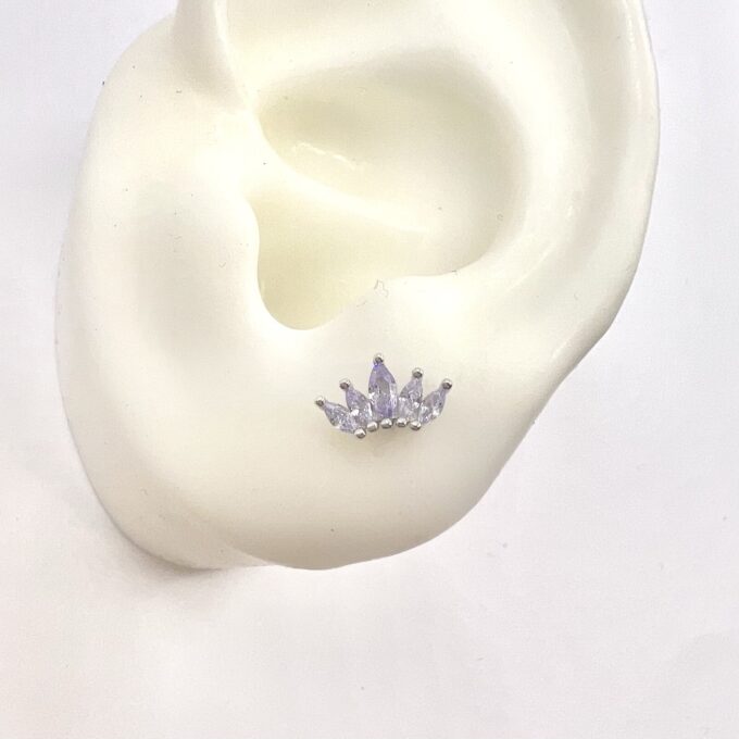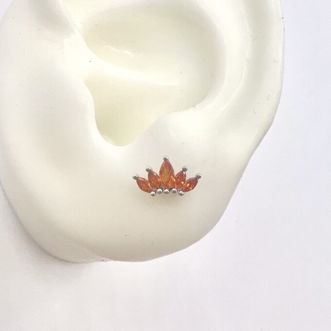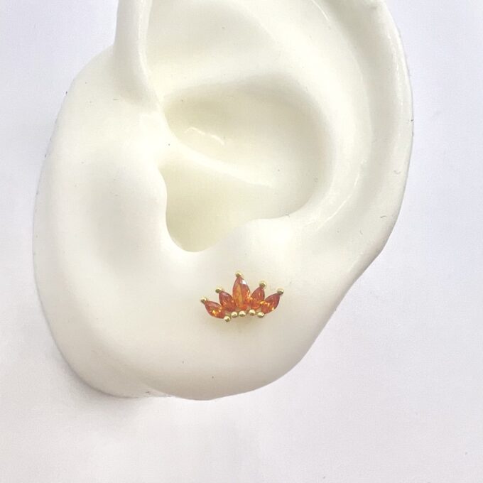 עגיל צמוד משובץ אבני זרקון מדורגות בצורת לוטוס מכסף אמיתי 925