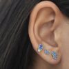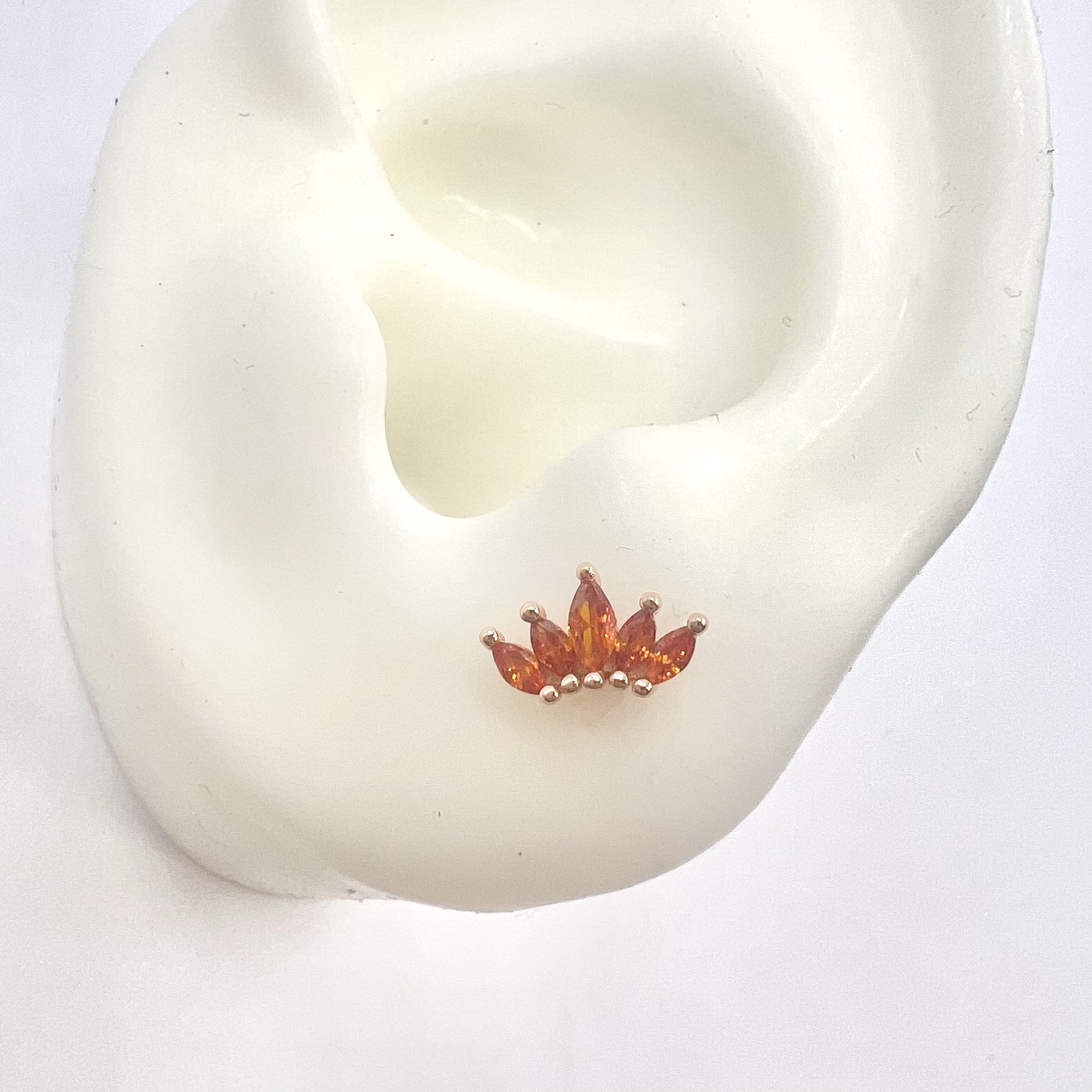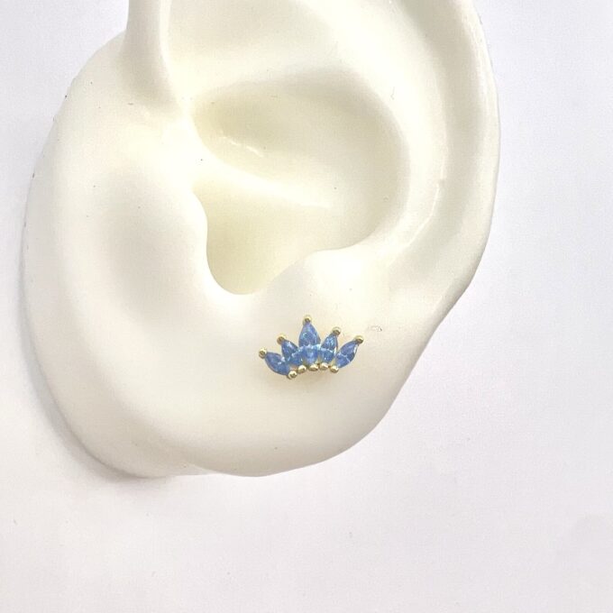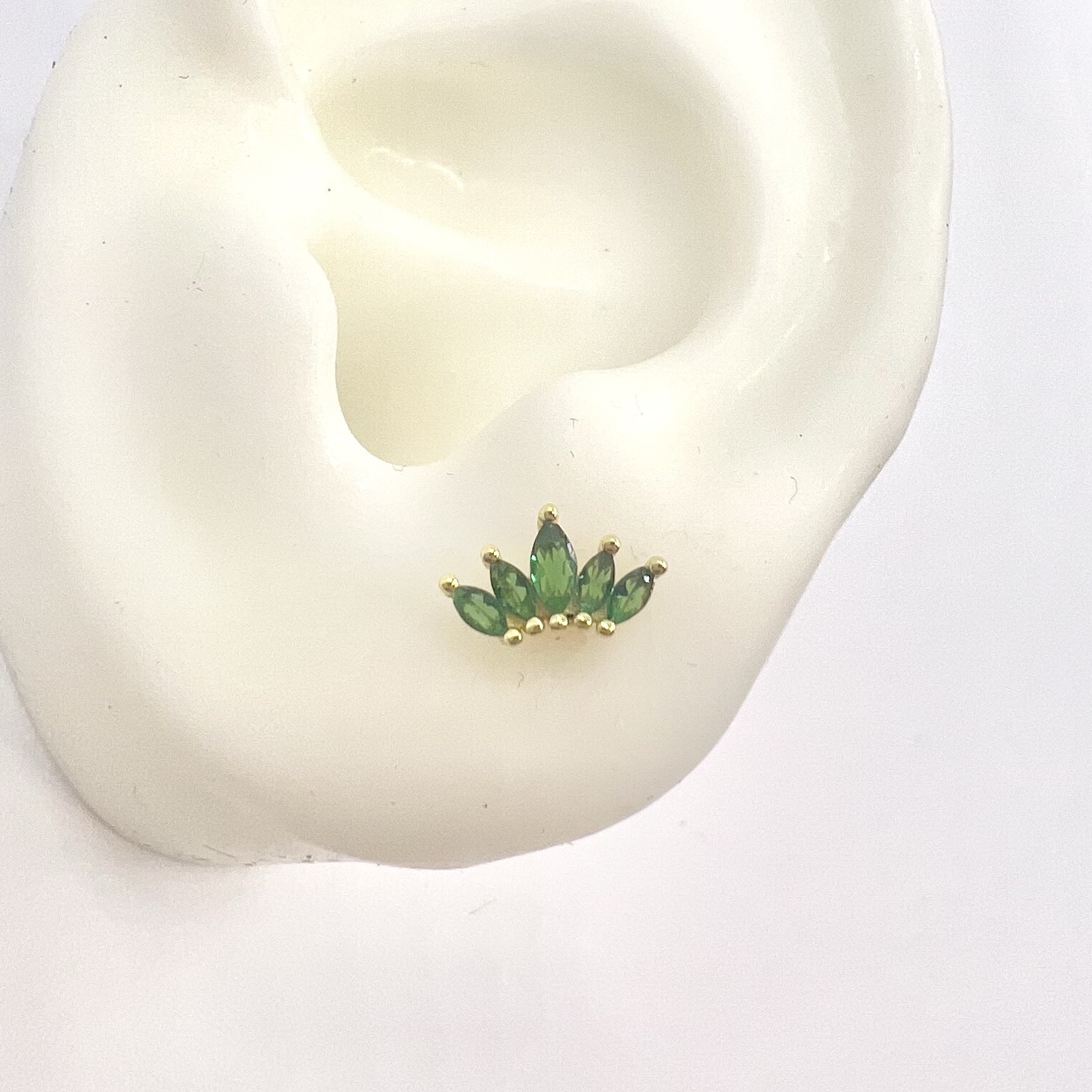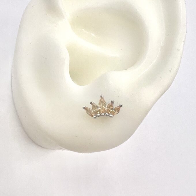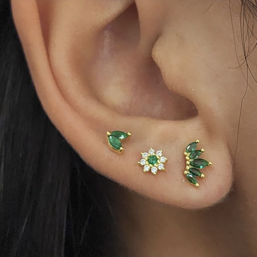 עגיל צמוד משובץ אבני זרקון מדורגות בצורת לוטוס מכסף אמיתי 925