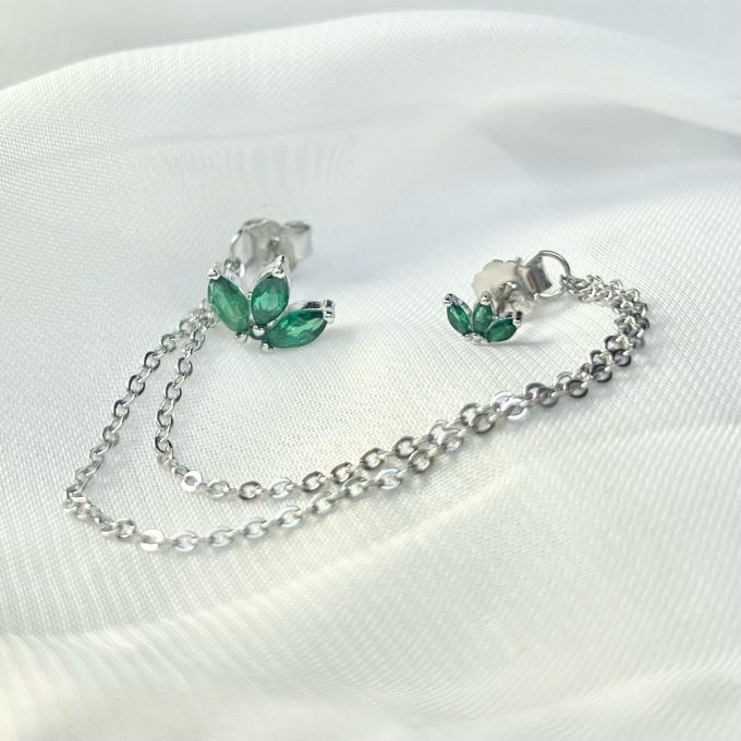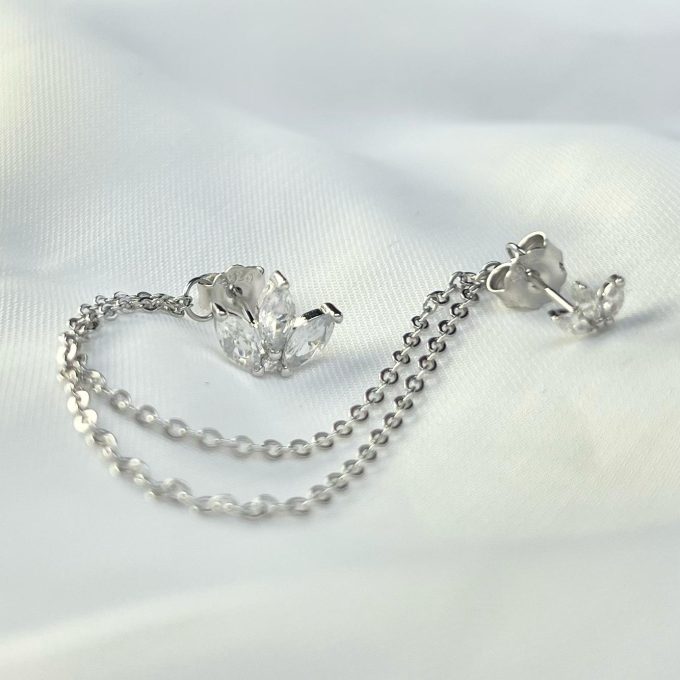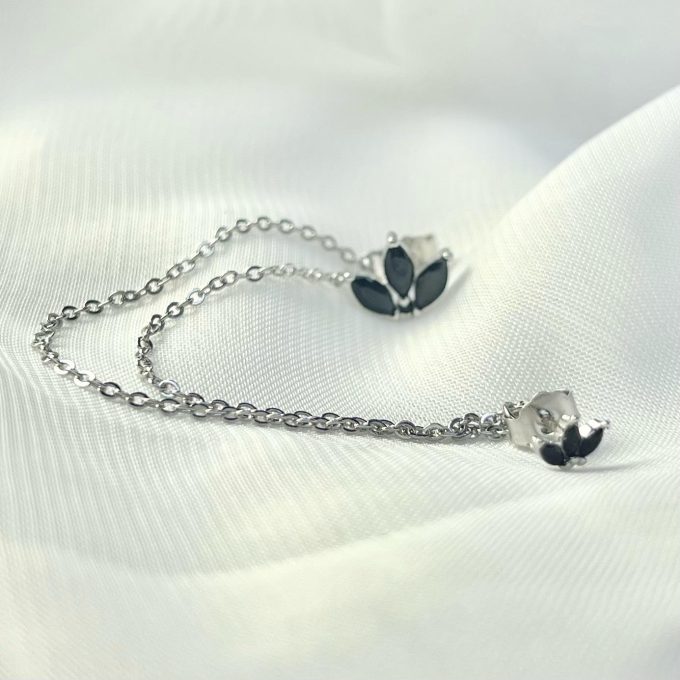 עגיל צמוד משובצת אבני זרקון בצורת לוטוס מחור בשתי שרשראות לעגיל צמוד משובץ אבני זרקון בצורת לוטוס קטנה יותר מכסף אמיתי 925