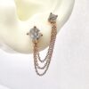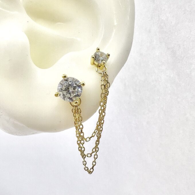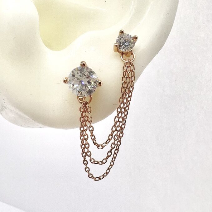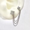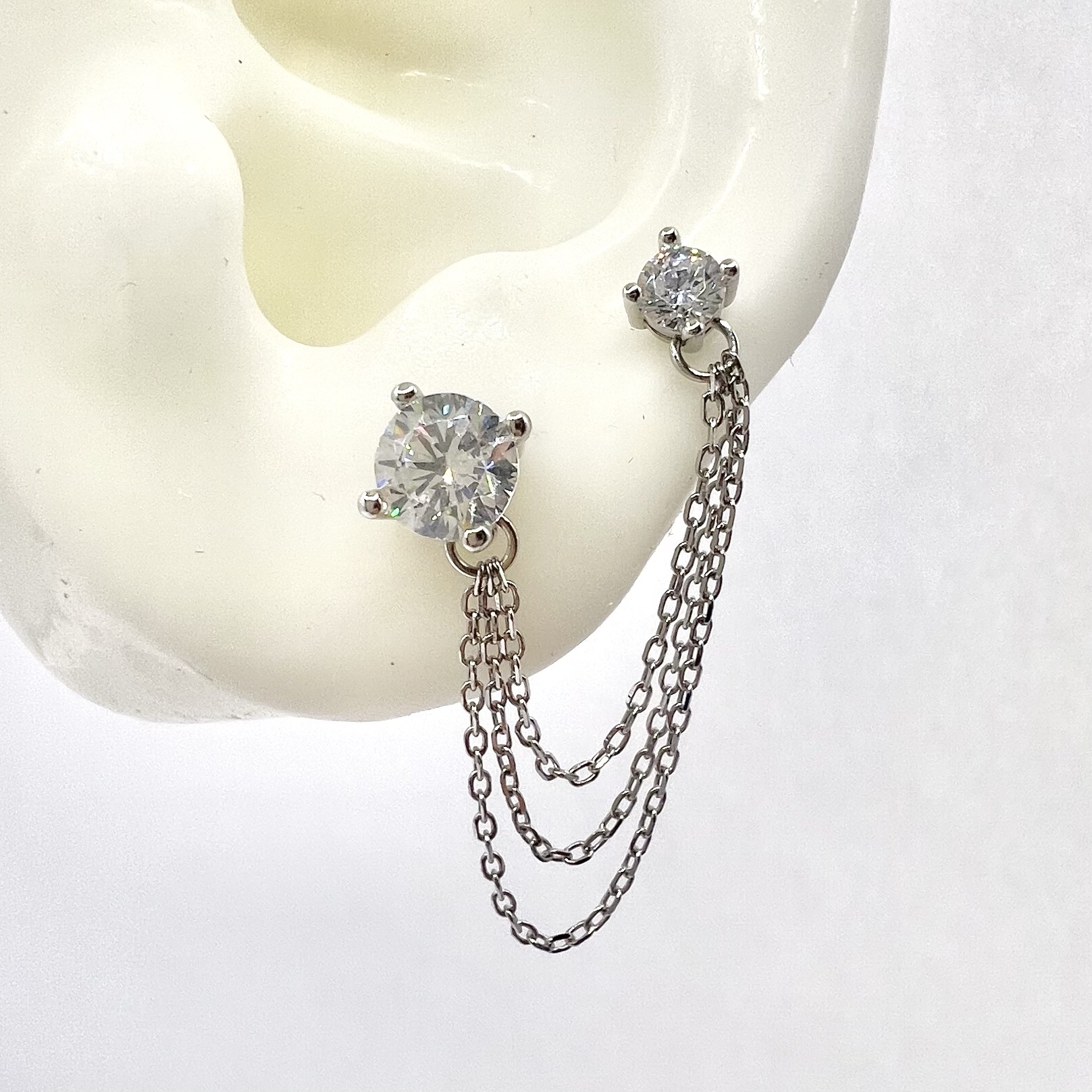 עגיל צמוד משובץ אבן זרקון עגולה מחובר בשלושה שרשראות לעגיל צמוד משובץ אבן זרקון עגולה מכסף אמיתי 925