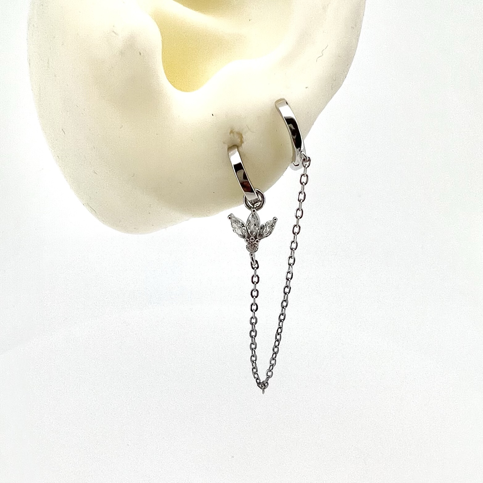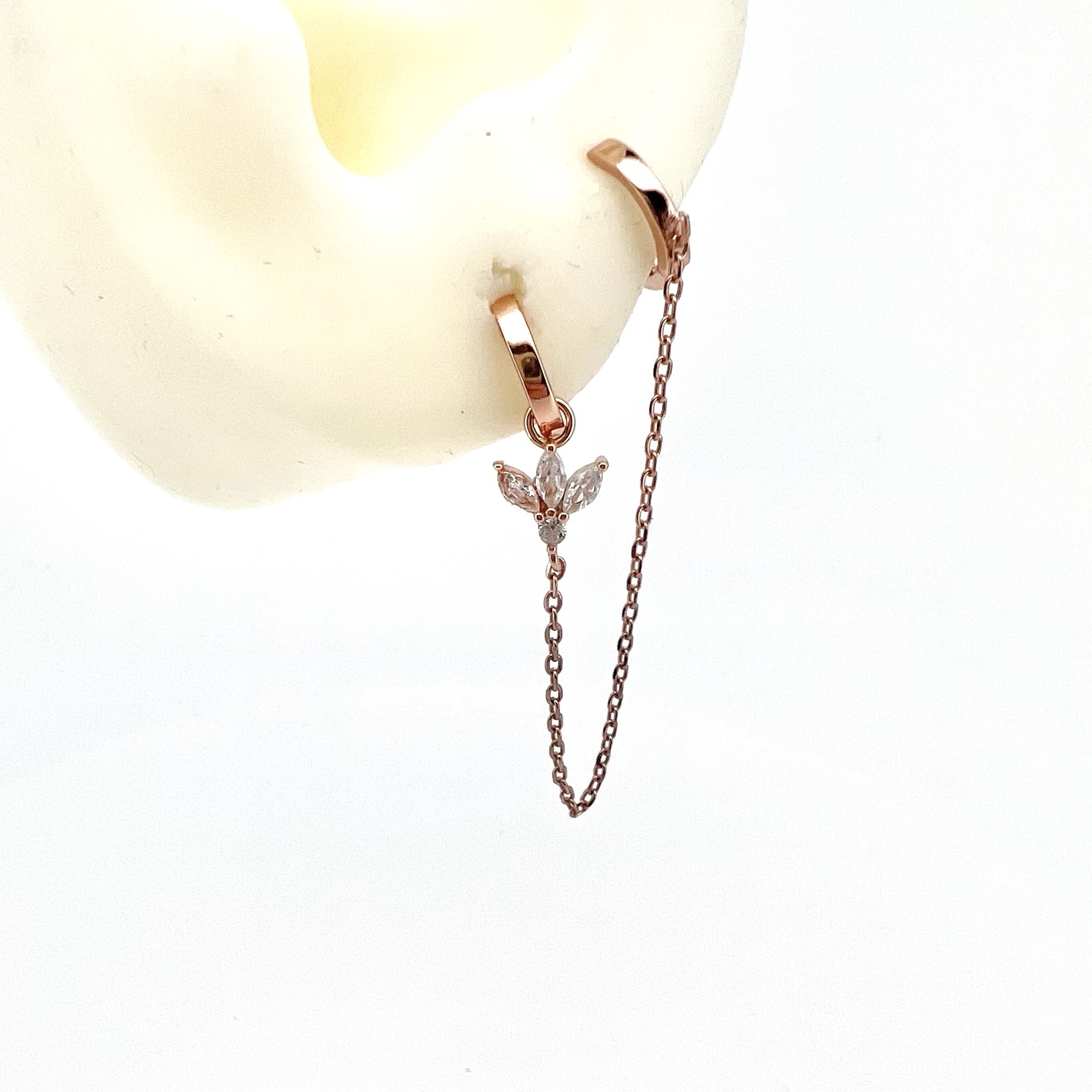 עגיל חישוק למחובר לעגיל חישוק עם אבני זרקון בצורת לוטוס נופל