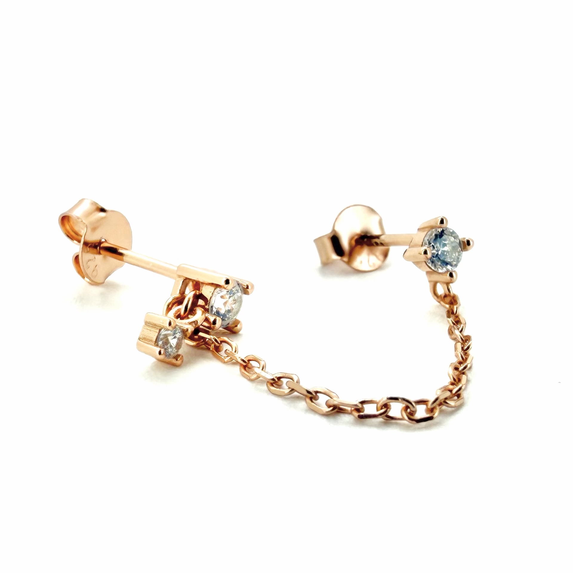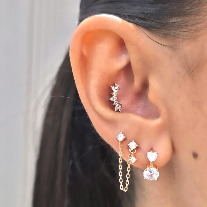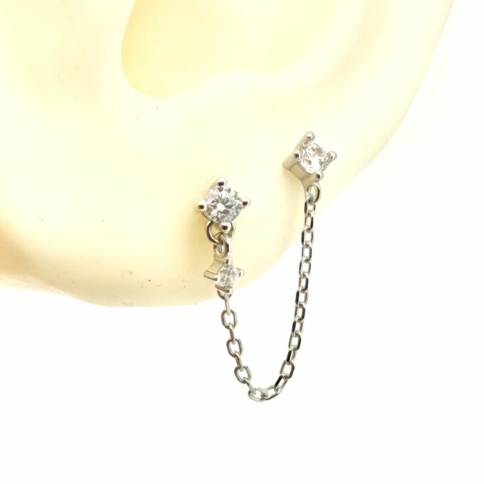 עגיל צמוד משובץ אבן זרקון עם אבן נופלת מחובר בשרשרת לעגיל צמוד נקודה