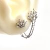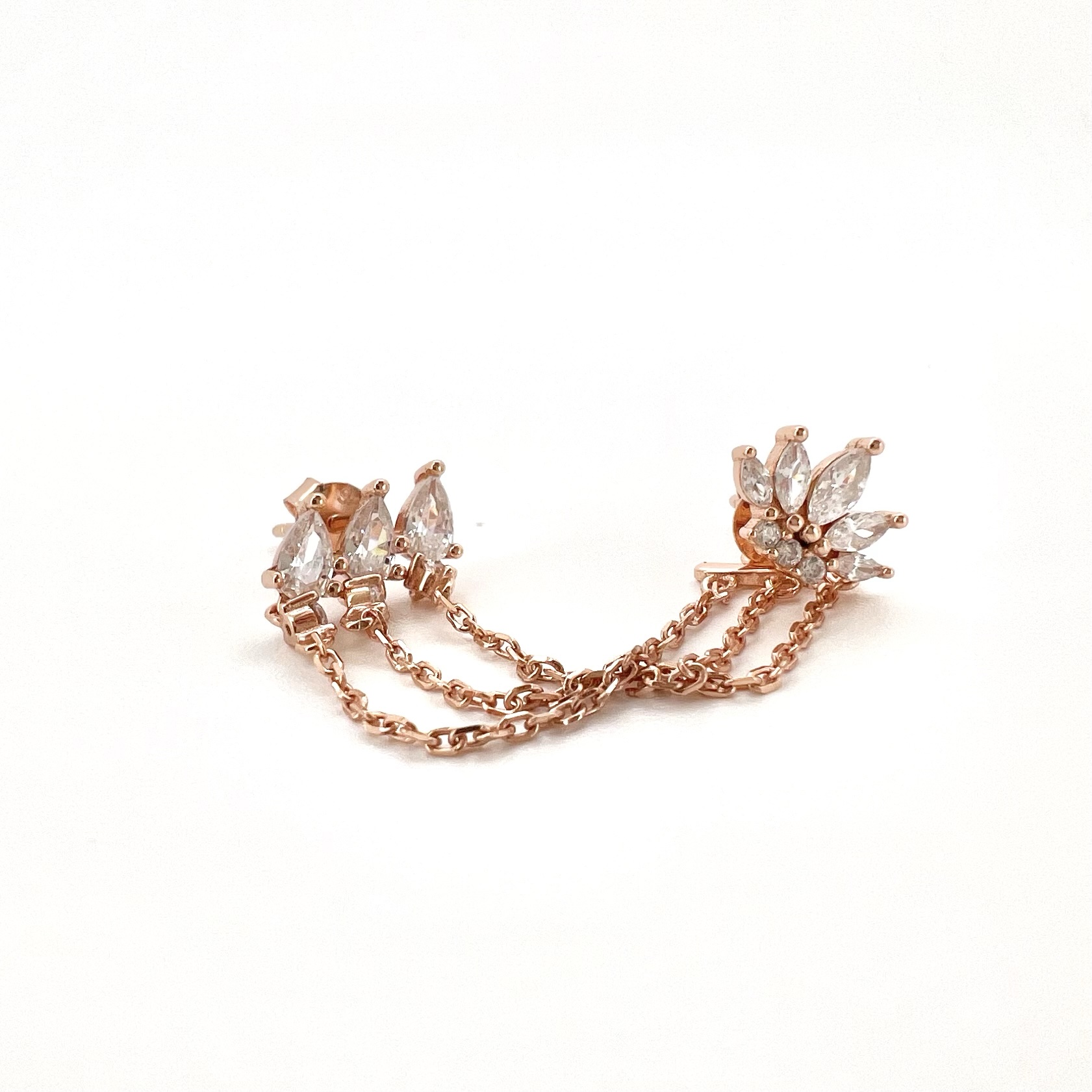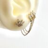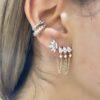 עגיל צמוד משובץ אבני זרקון בצורת לוטוס מחובר בשלוש שרשראות לעגיל צמוד משובץ שלושה אבני טיפות מכסף אמיתי 925