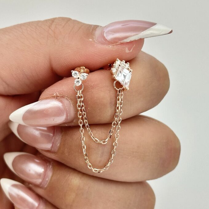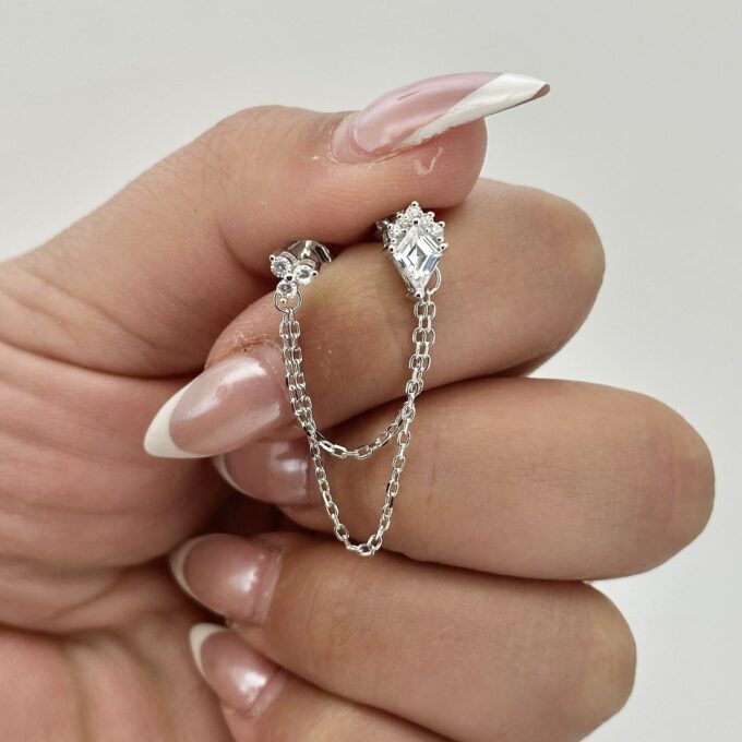 עגיל צמוד משובץ אבני זרקון מחובר לעגיל צמוד משובץ אבני זרקון מכסף אמיתי 925