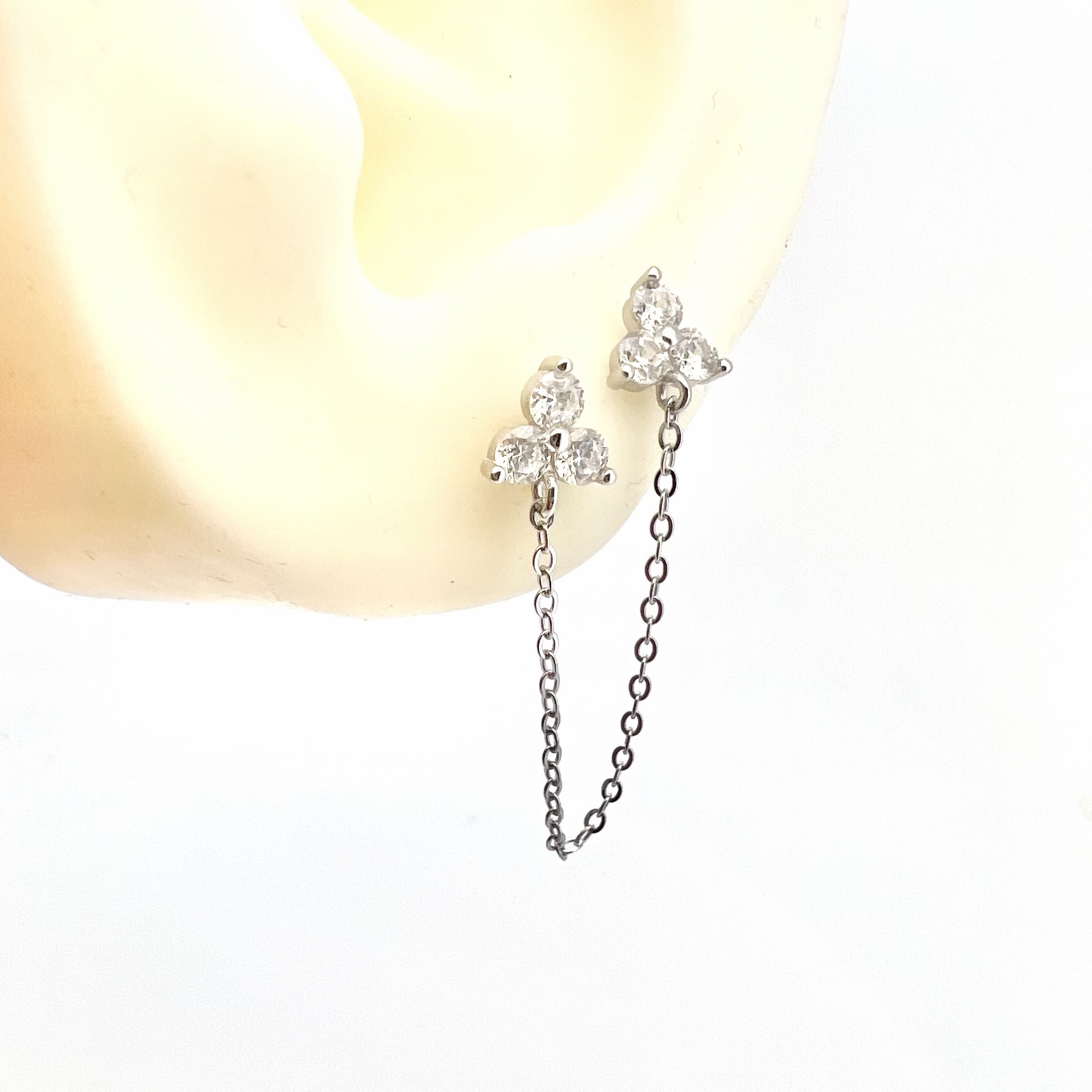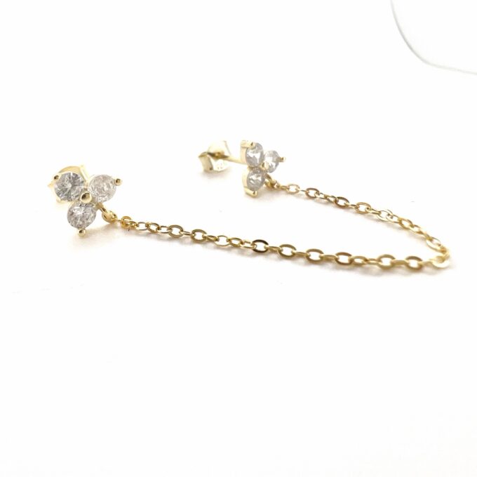 עגיל צמוד משובץ שלושה אבני זרקון עגולות