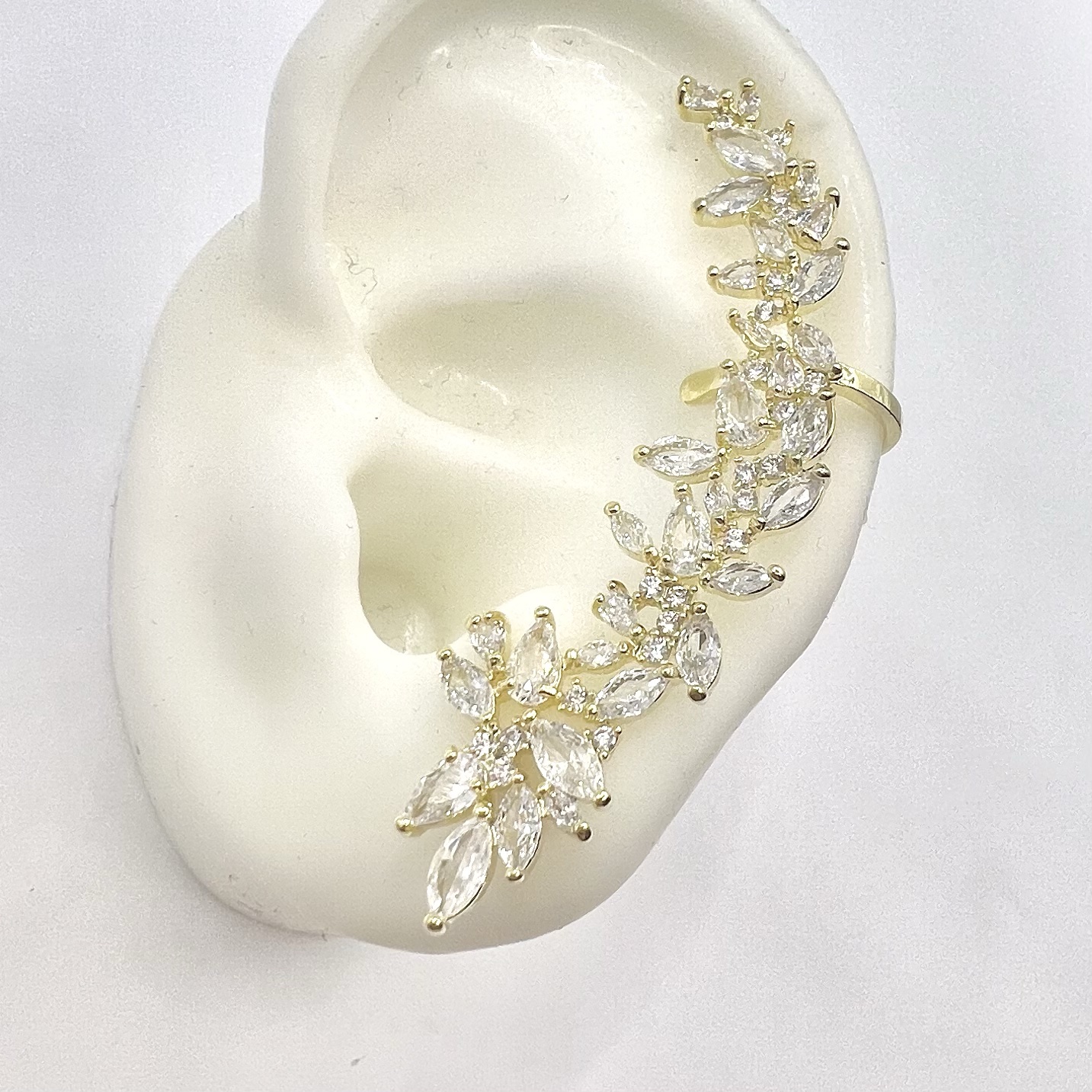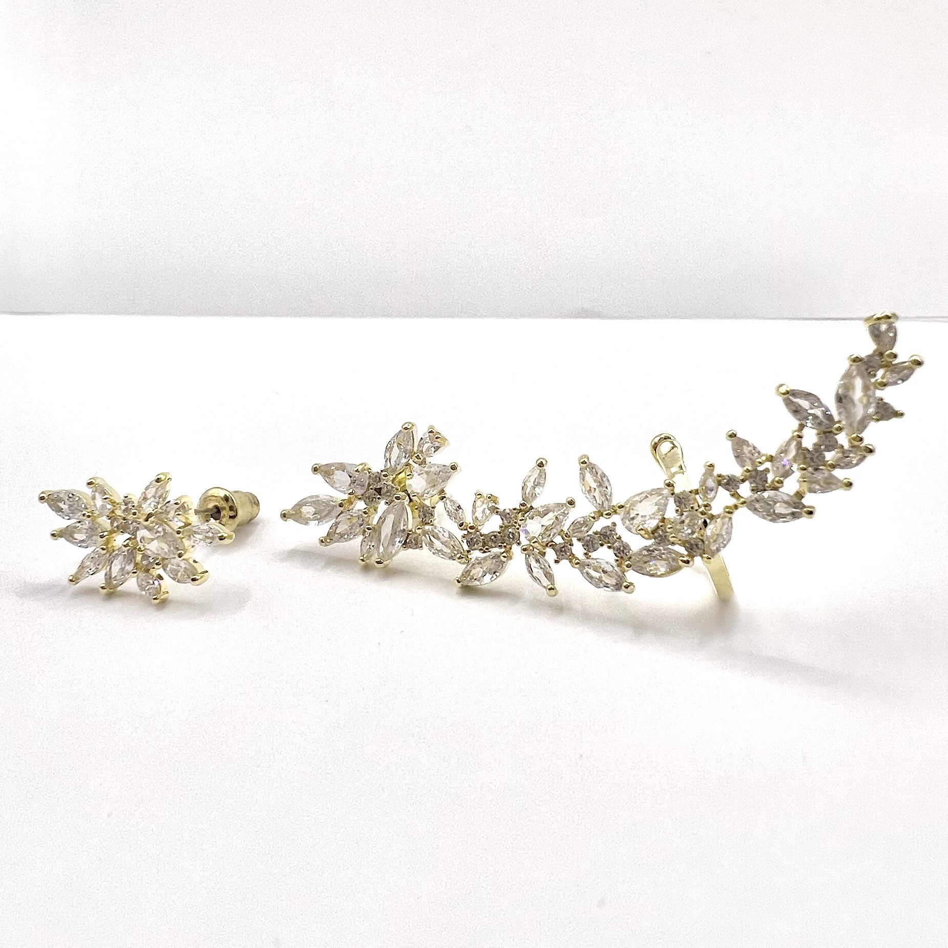 עגיל צמוד בודד משובץ אבני זרקון במגוון צורות ועגיל צמוד מטפס עם הליקס ללא חור משובץ אבני זרקון במגוון צורות מרודיום איכותי