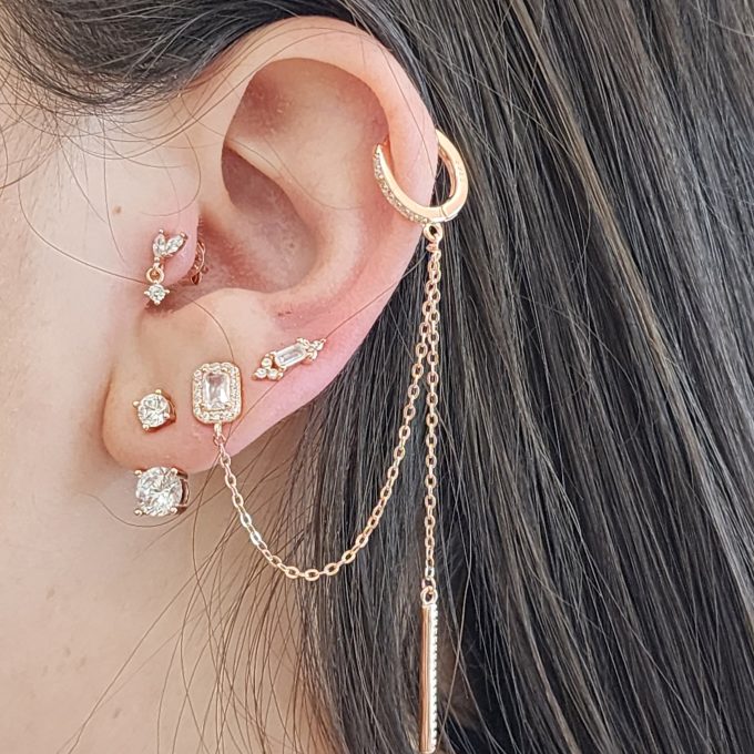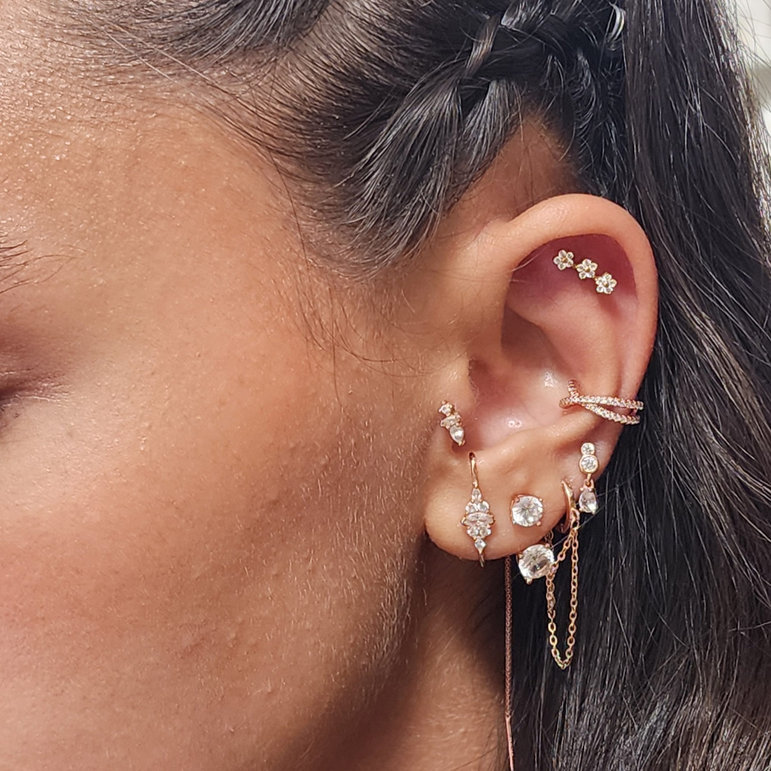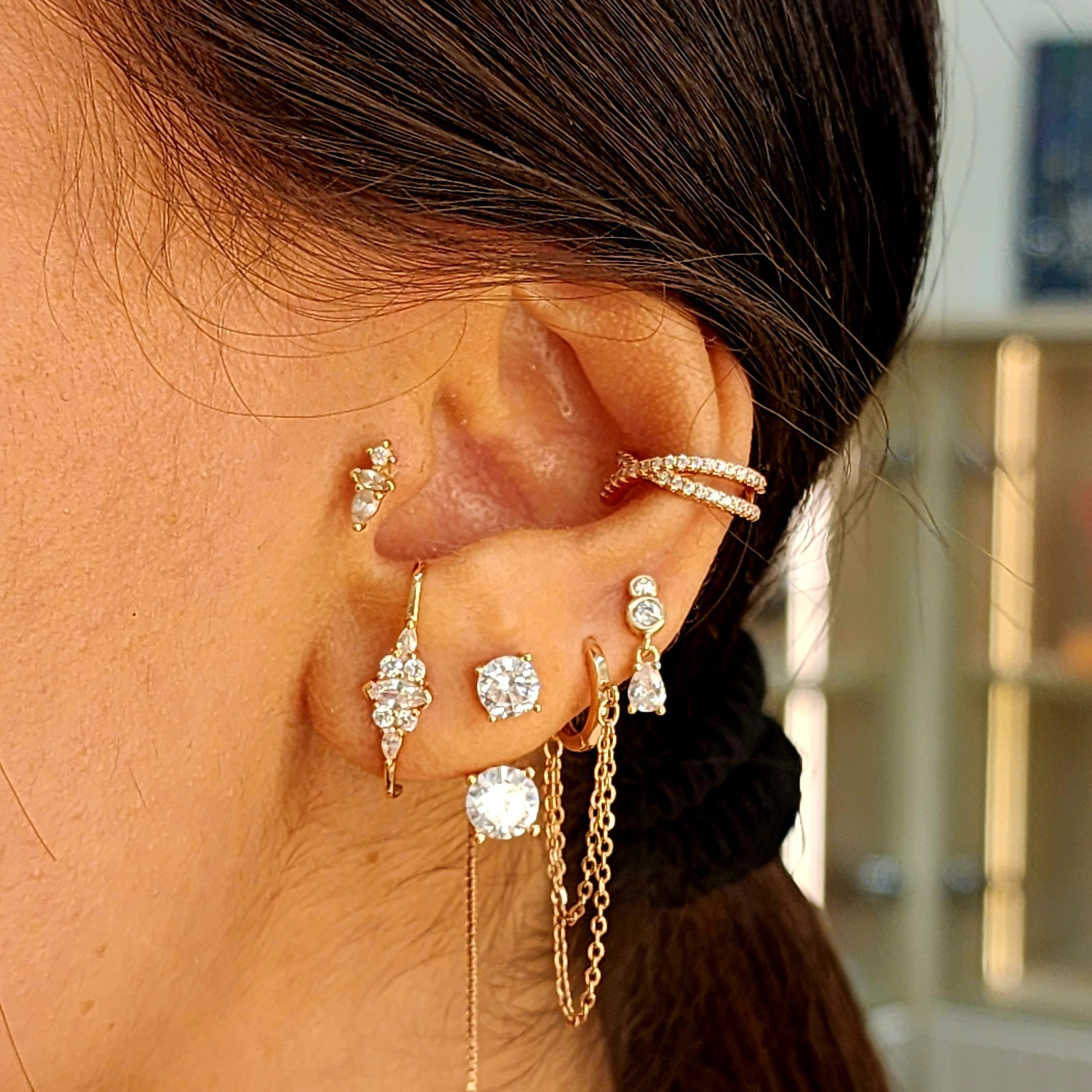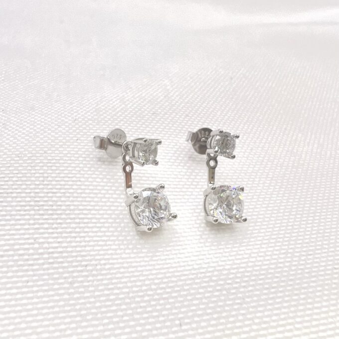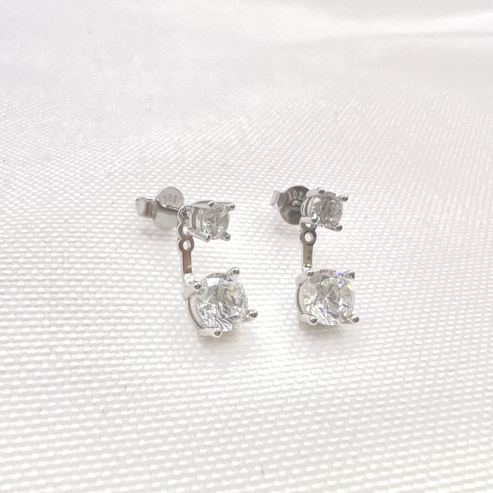 זוג עגילי מניפה זרקון צמוד זרקון נופל מכסף אמיתי 925.אפשרטת לציפוי רוזגולד או זהב