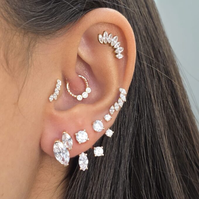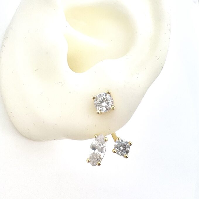 עגיל צמוד משתלב לתנוך עם שיבוץ אבני זרקון עגולות ואבן זרקון מרקיזה