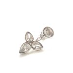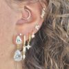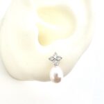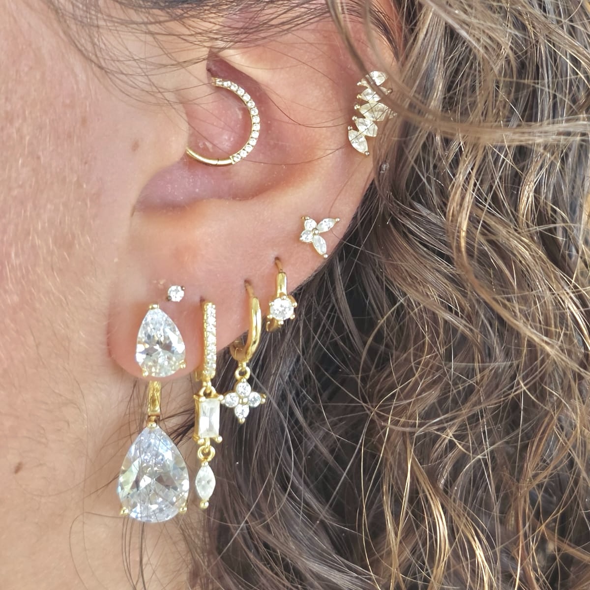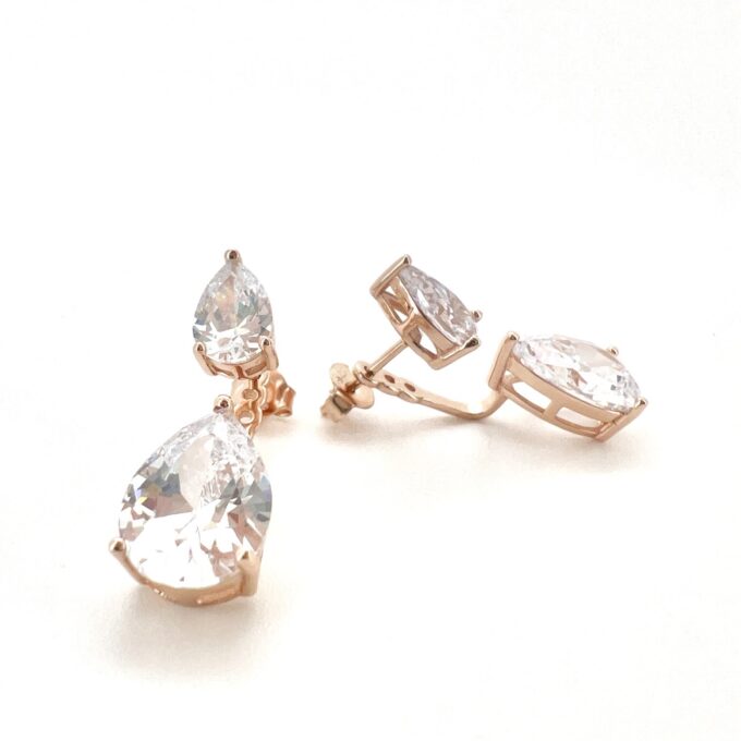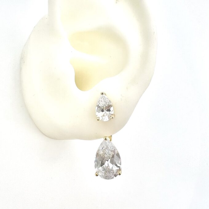 עגיל מניפה משובץ שתי אבני זרקון בצורת טיפה