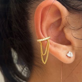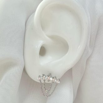 עגיל צמוד ונופל עם פלטת פס משובץ שלושה אבני זרקון עגולות מכסף אמיתי 925