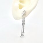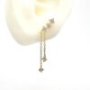 עגיל צמוד עם פס של שלושה אבני זרקון עגולות עם שתי שרשראות נופלות עם אבן בסופן