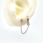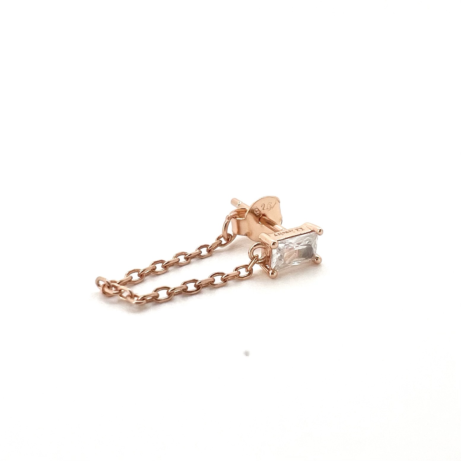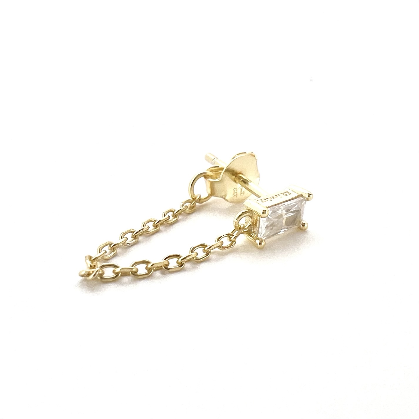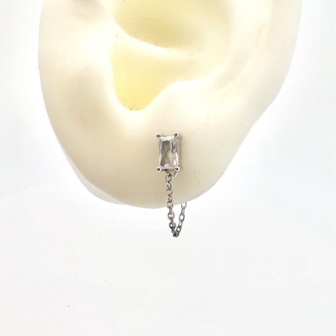 עגיל צמוד משובץ אבן זרקון מלבנית עם שרשרת שמחוברת לסוגר