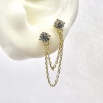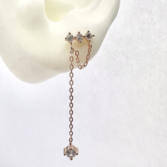 עגיל צמוד פלטה משובצת שלוש אבני זרקון עם אבן זרקון נופלת מכסף אמיתי 925