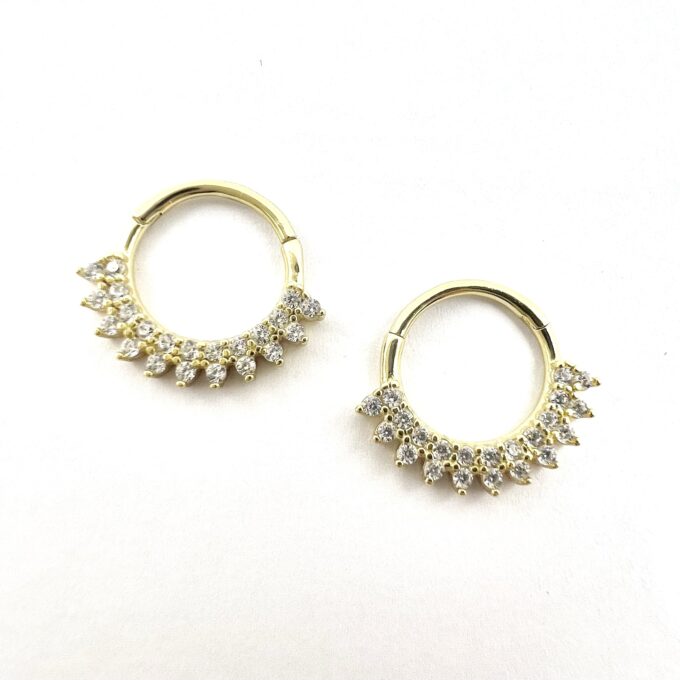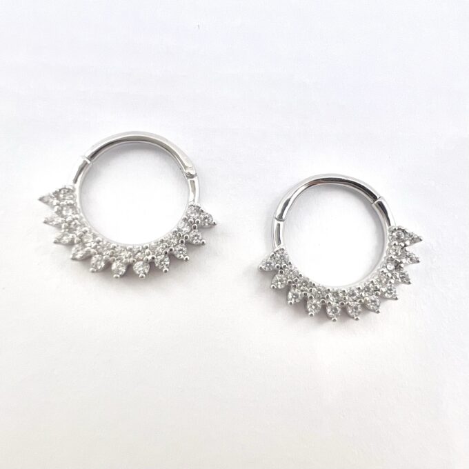 עגיל פירסינג חישוק משובץ אבני זרקון בצורת טיפה מכסף אמיתי 925