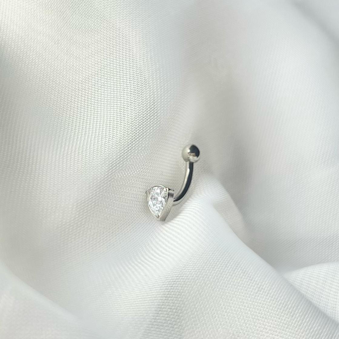 עגיל פירסינג עם סגירה מסתובבת משובץ אבן זרקון בצורת טיפה מטיטניום