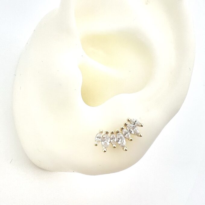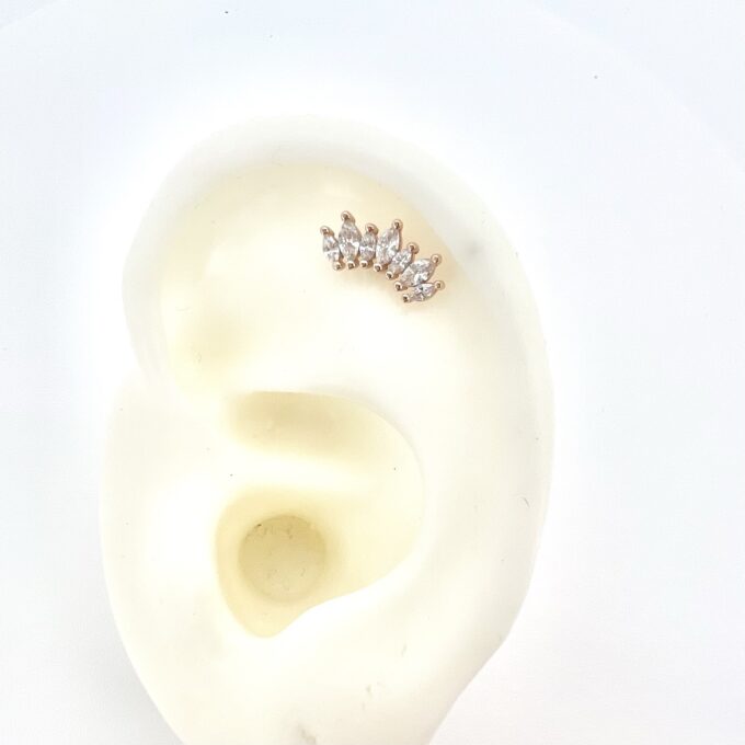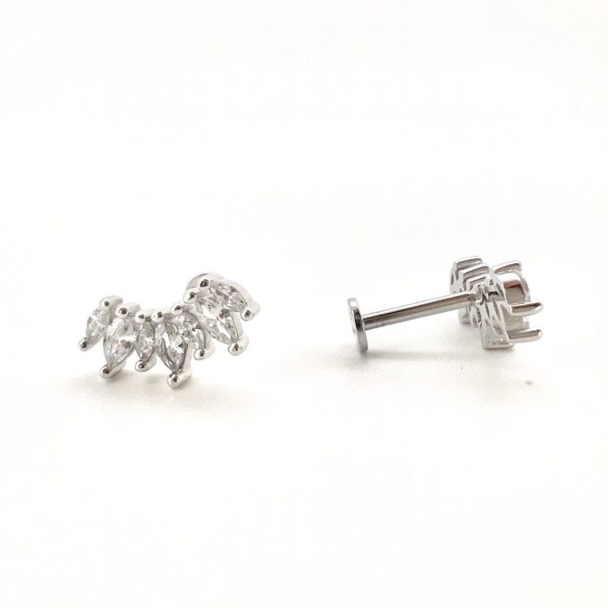 עגיל פיריסנג עם סגירה מסתובבת משובץ אבני זרקון בצורת לוטוס