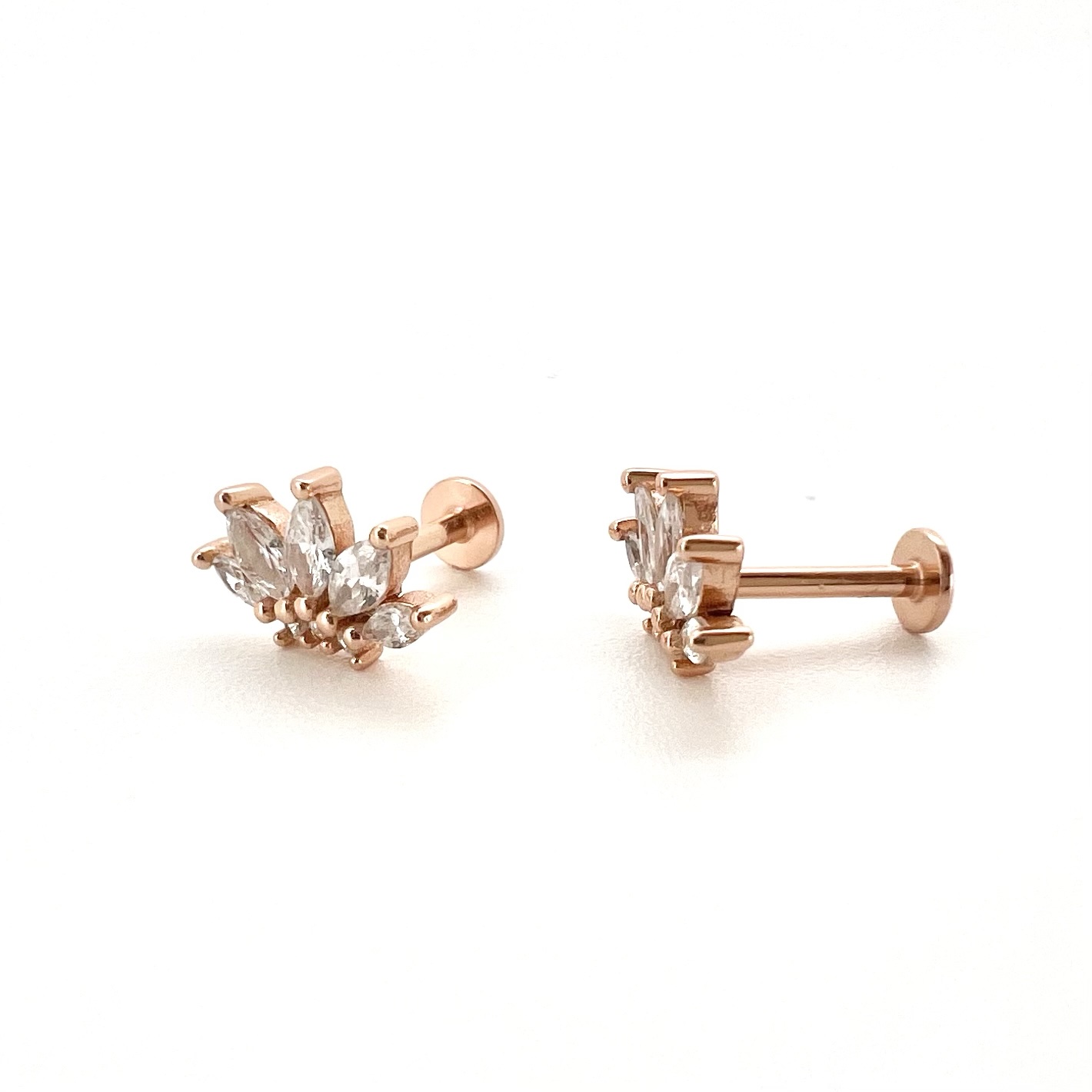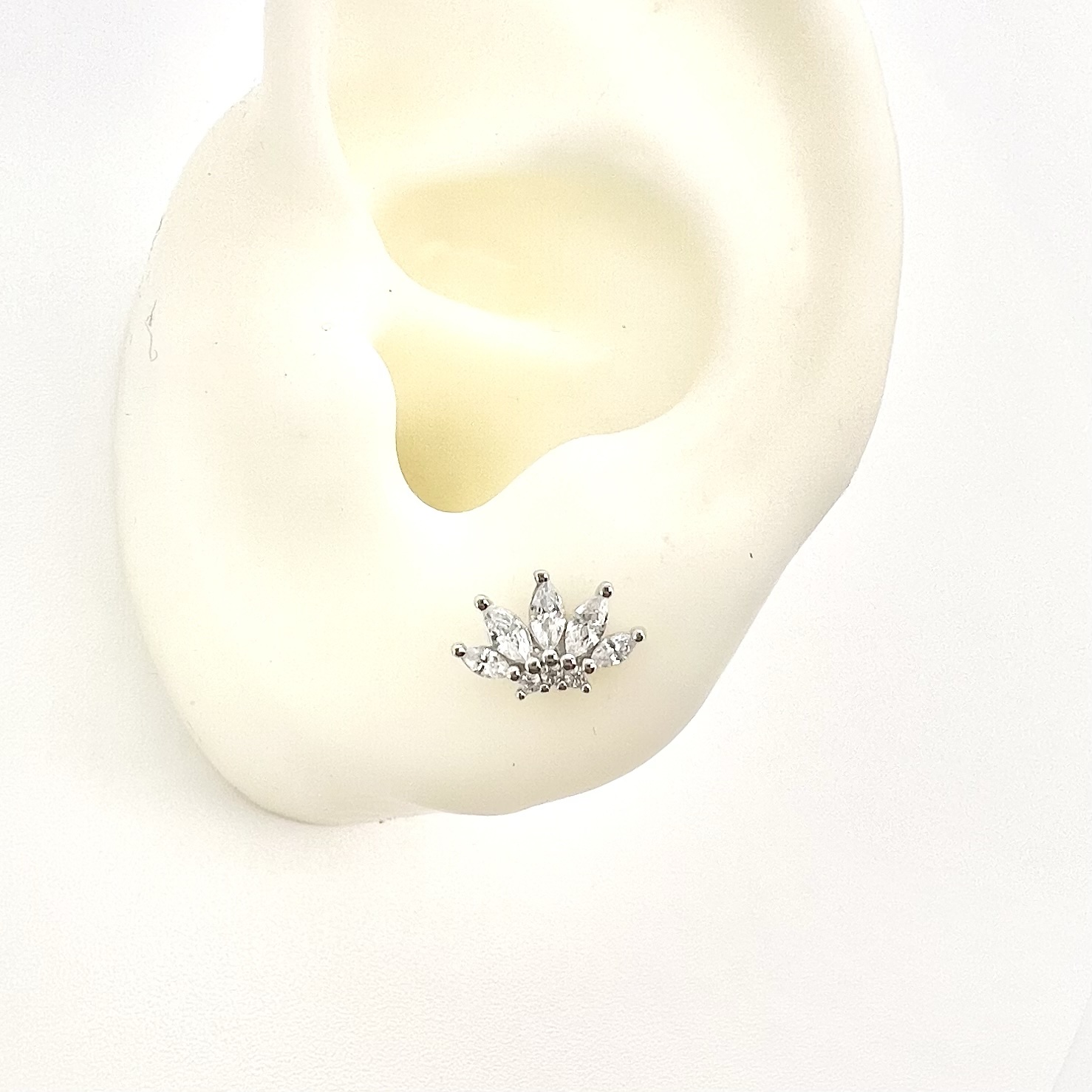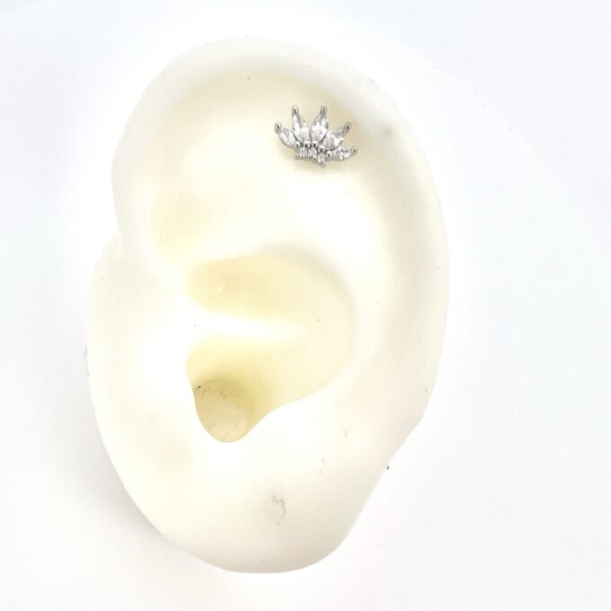 עגיל פירסינג עם סגירה מסתובבת משובץ אבני זרקון בצורת לוטוס