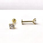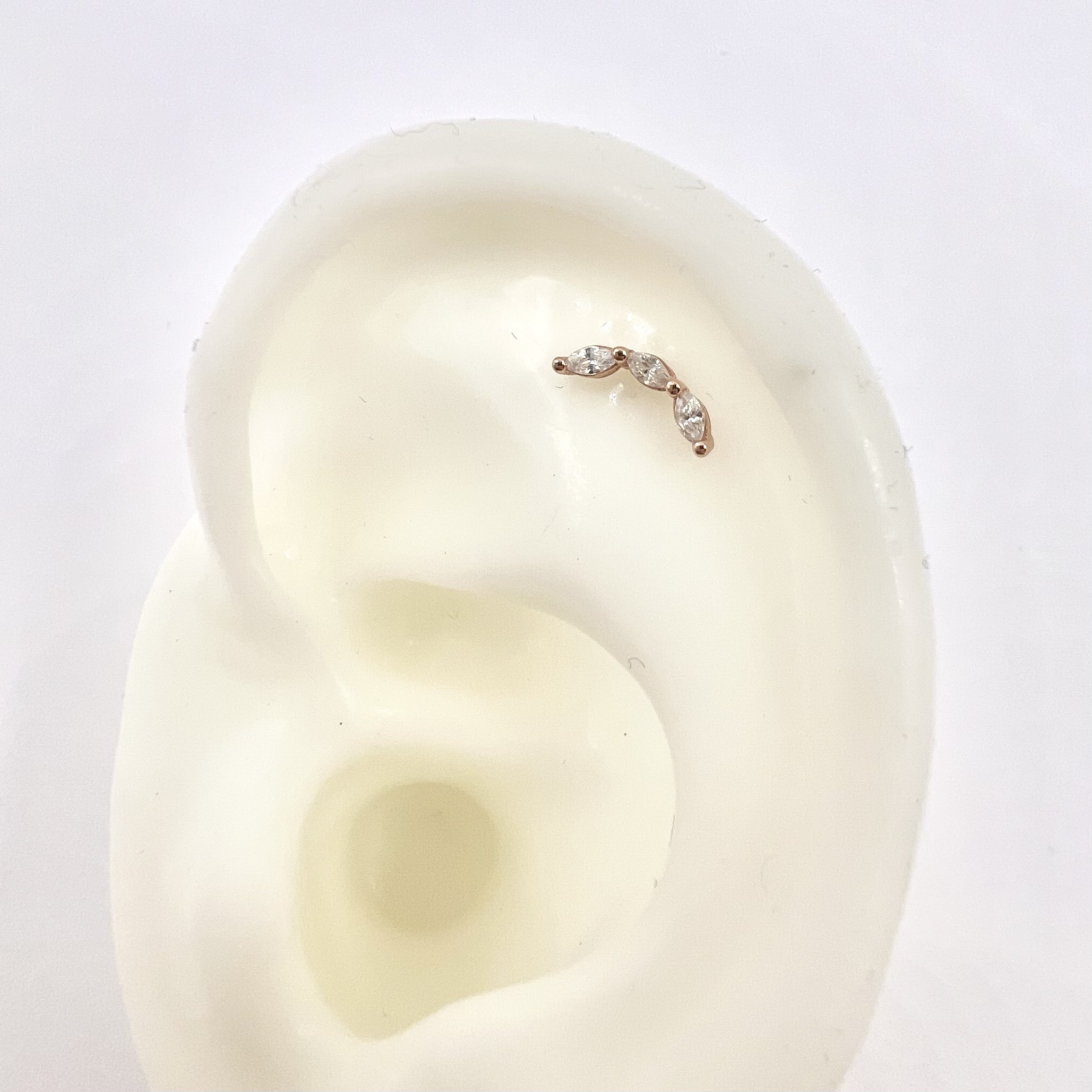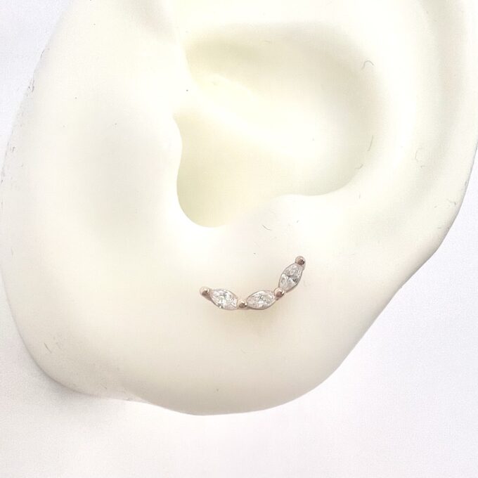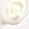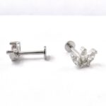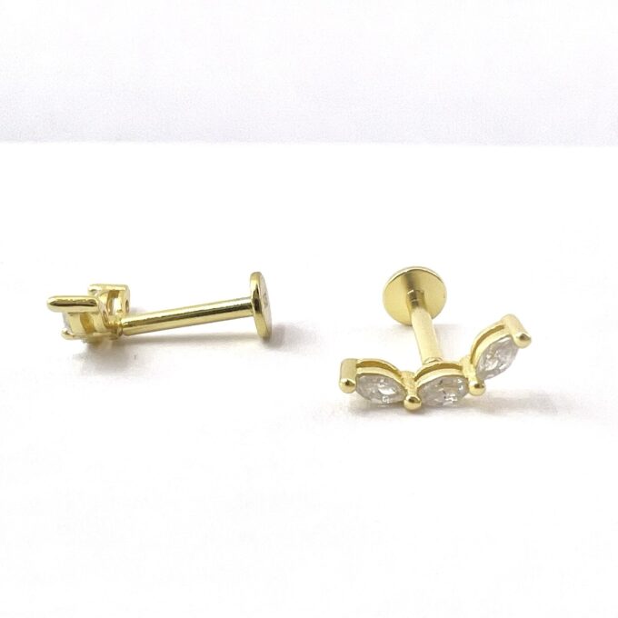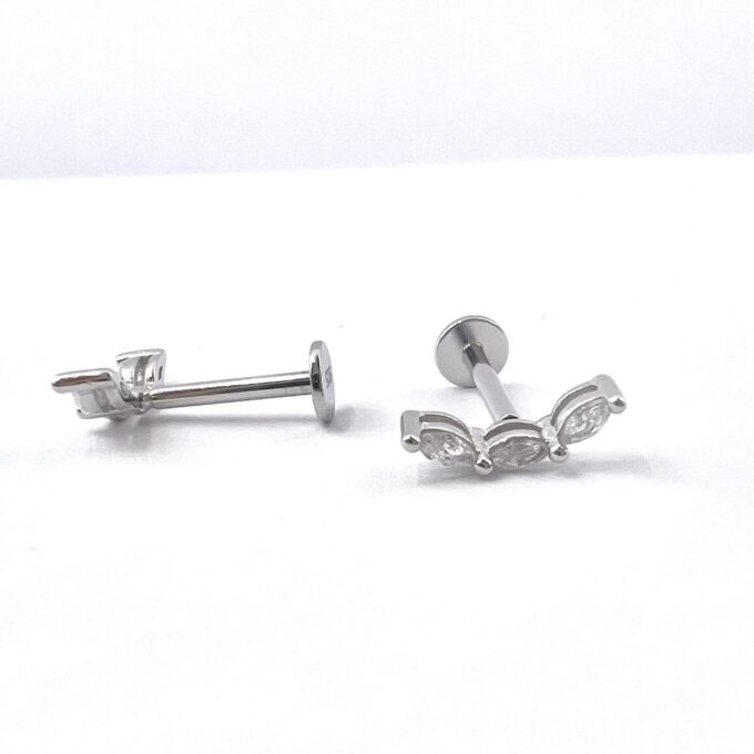 עגיל פירסינג עם סגירה מסתובבת משובץ שלוש אבני זרקון בצורת טיפה מכסף אמיתי 925