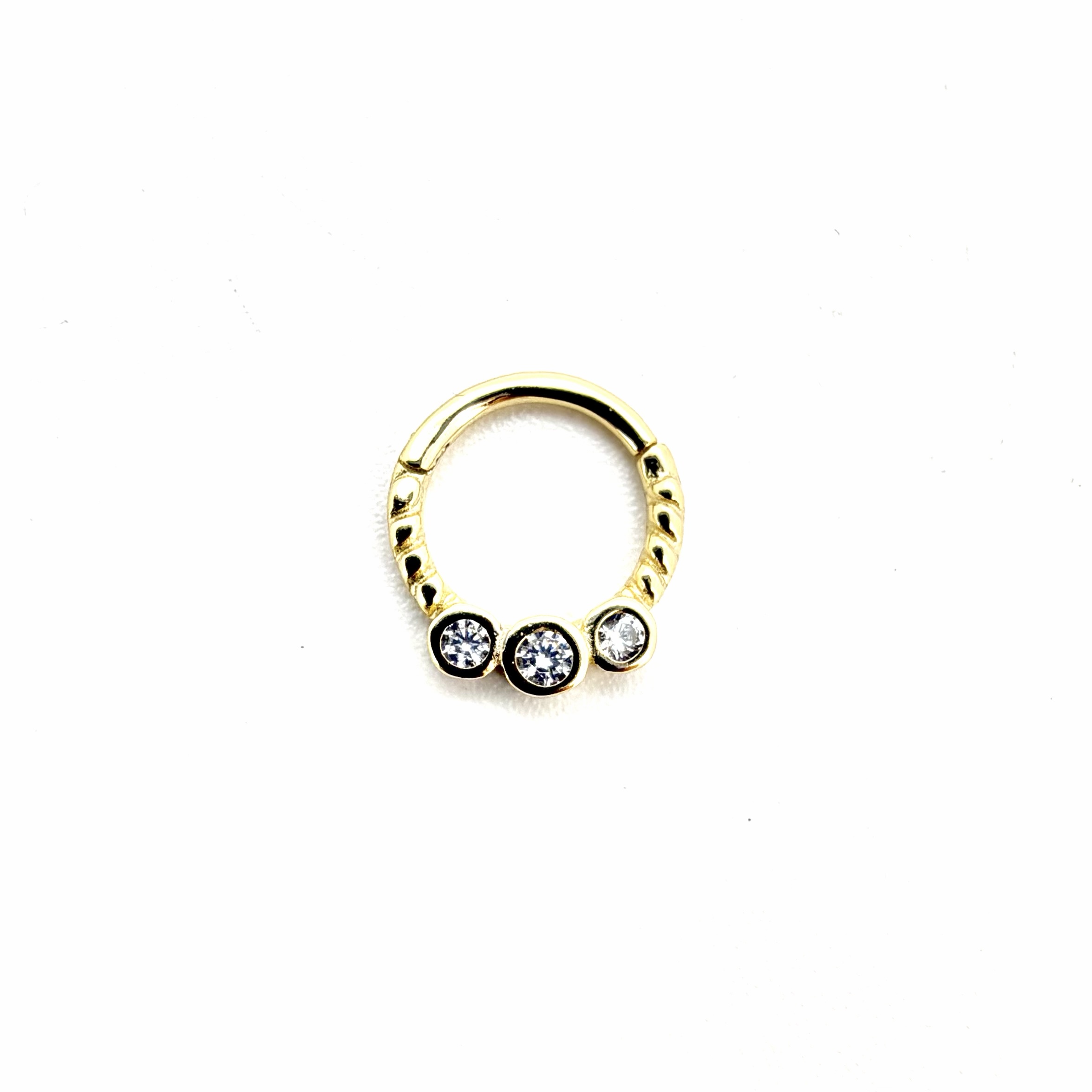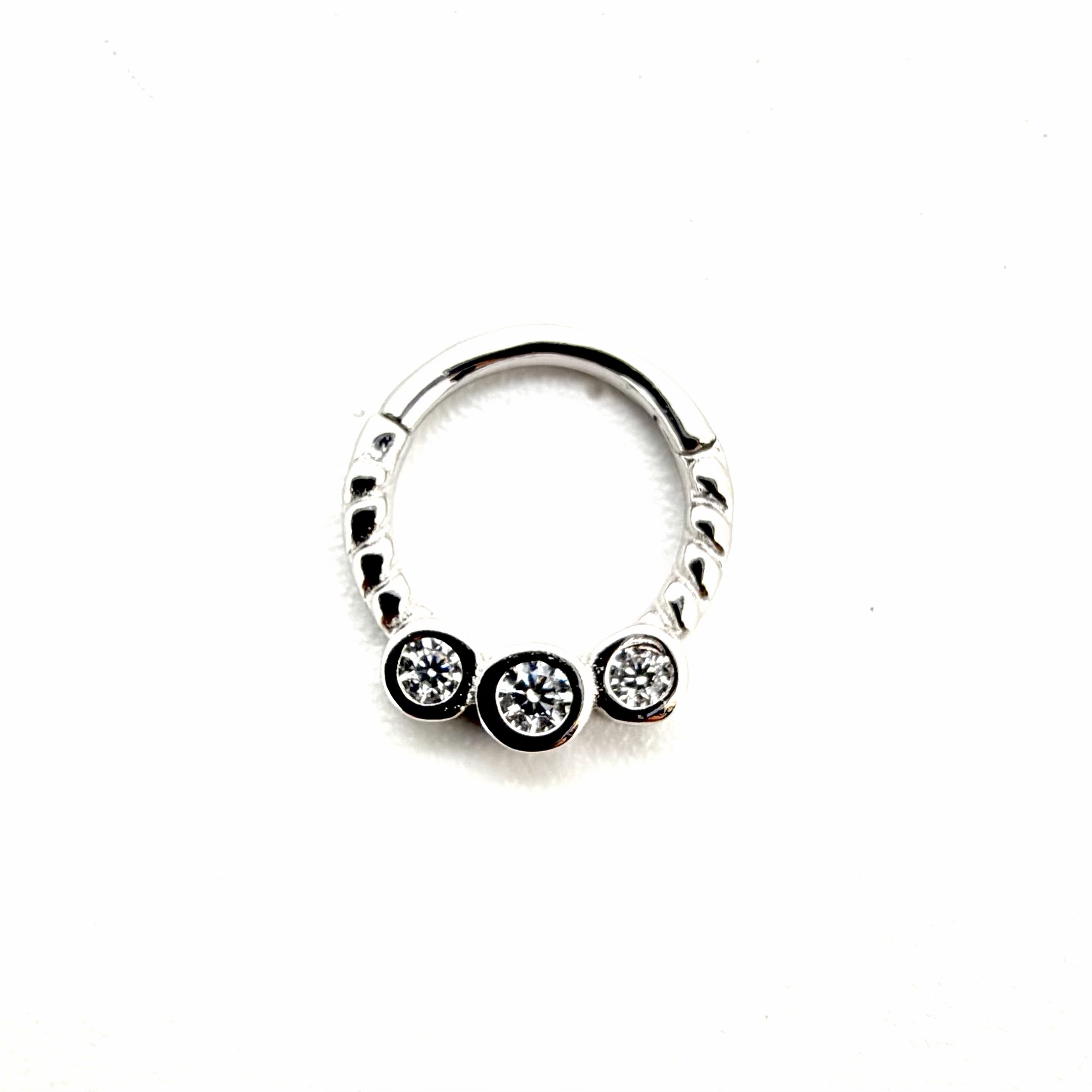 עגיל חישוק לפירסינג משובץ אבני זרקון