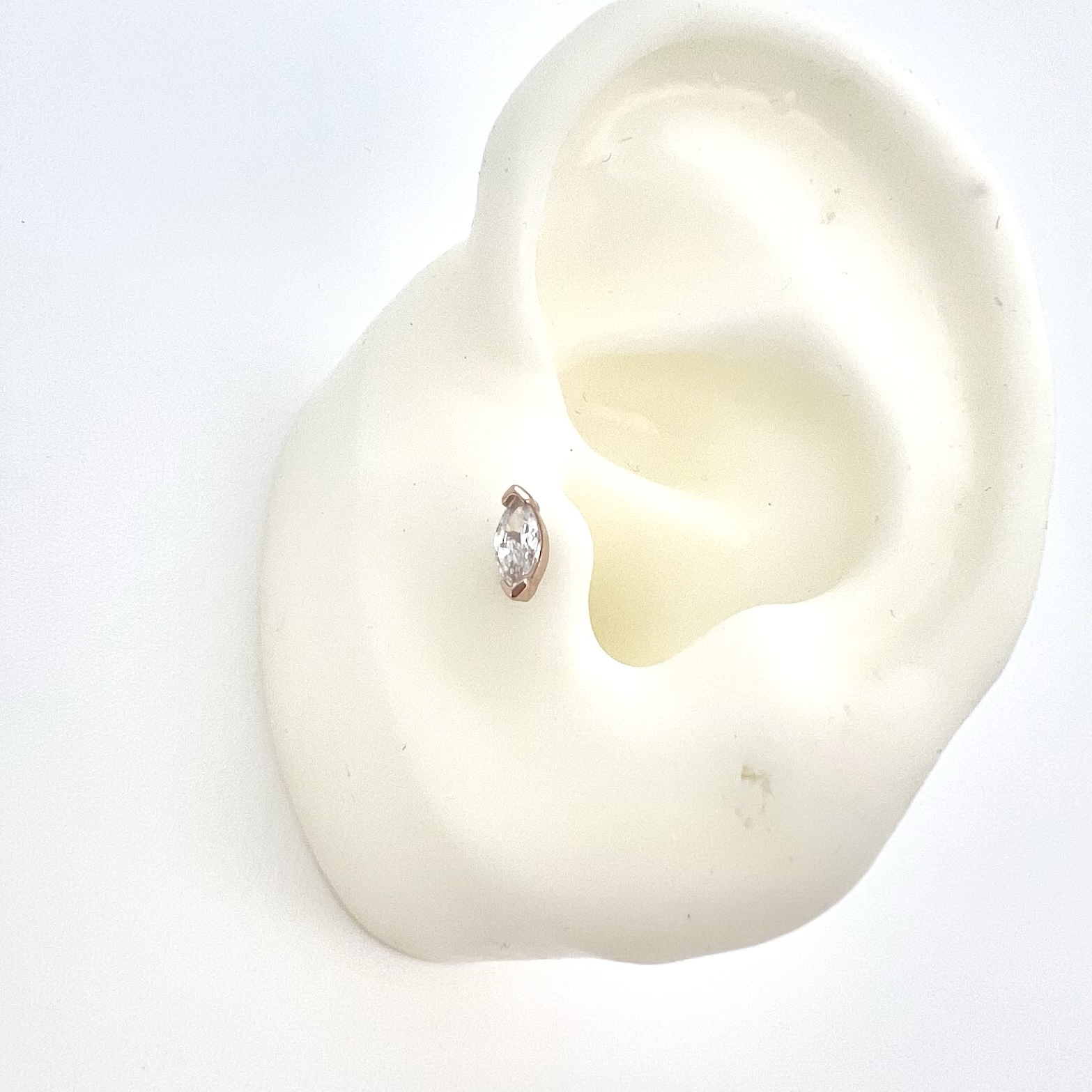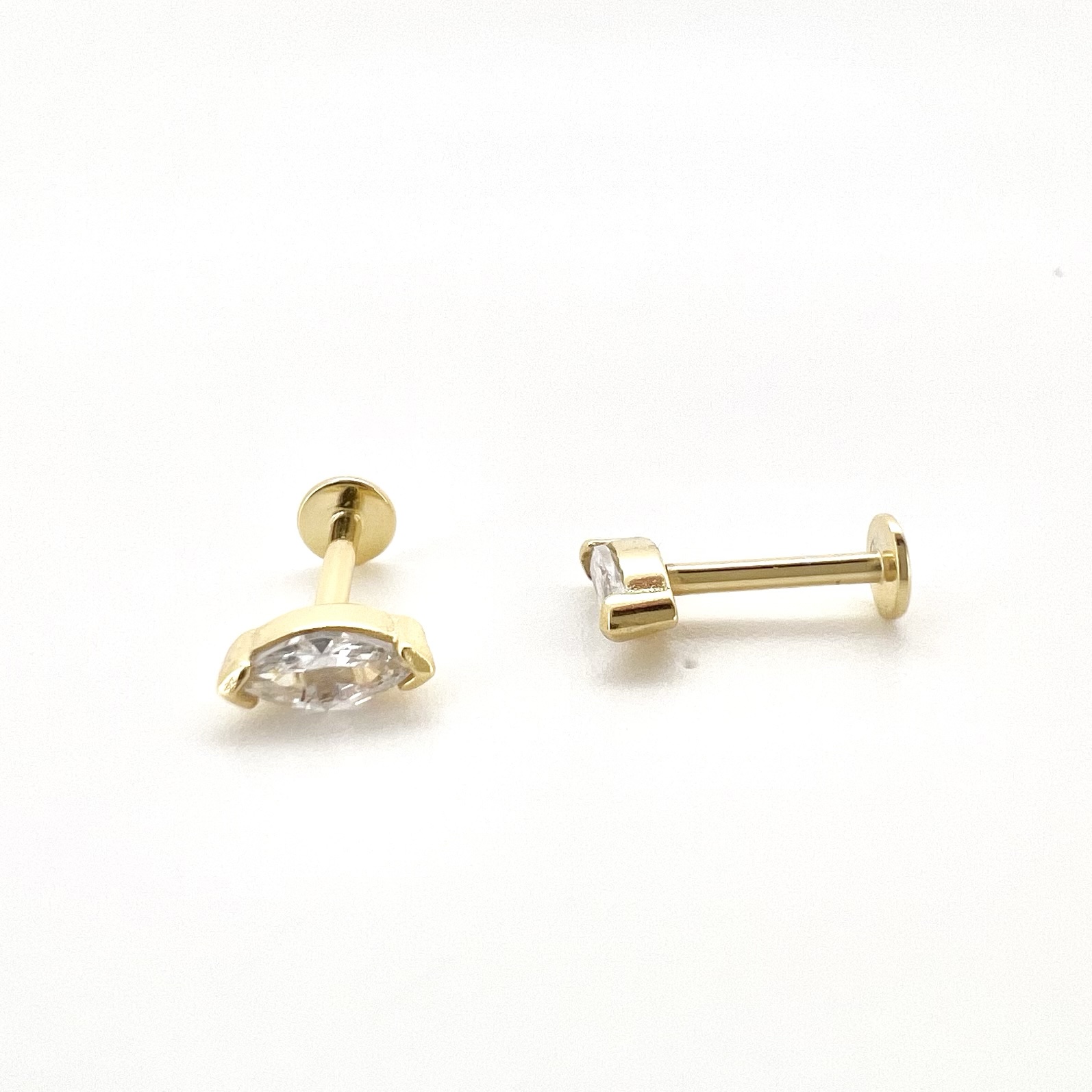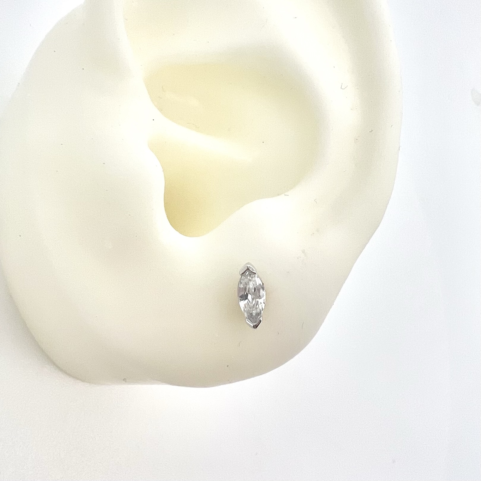 עגיל פירסינג עם סגירה מסתובבת משובץ אבן זרקון מרקיזה
