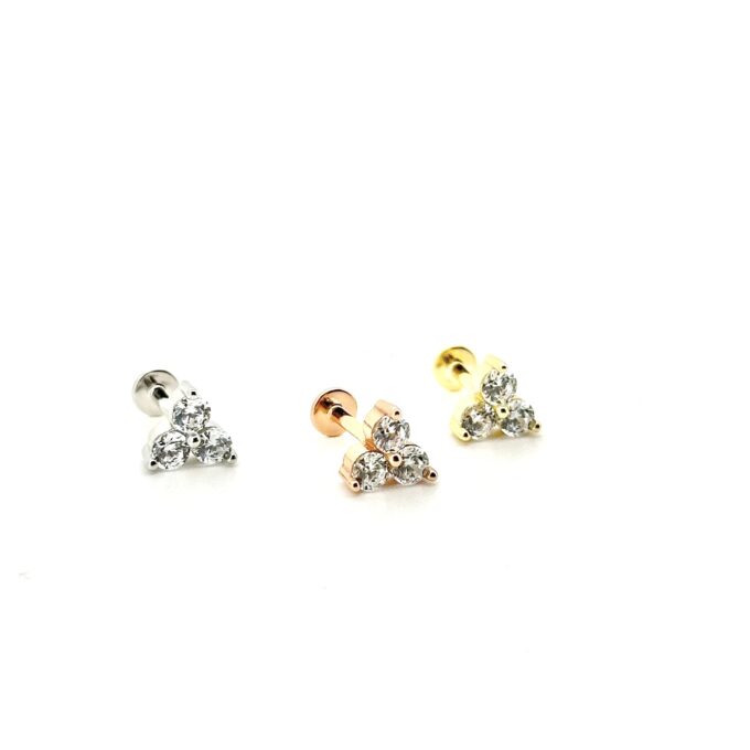 עגיל צמוד עם סגירה מסתובבת משובץ שלושה אבני זרקון עגולות מכסף אמיתי 925
