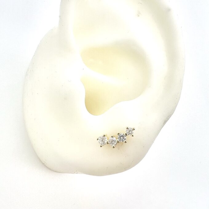 עגיל צמוד משובץ 4 אבני זרקון עגולות