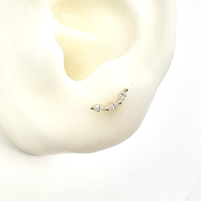 עגיל צמוד משובץ שלושה אבני זרקון מעוגלים