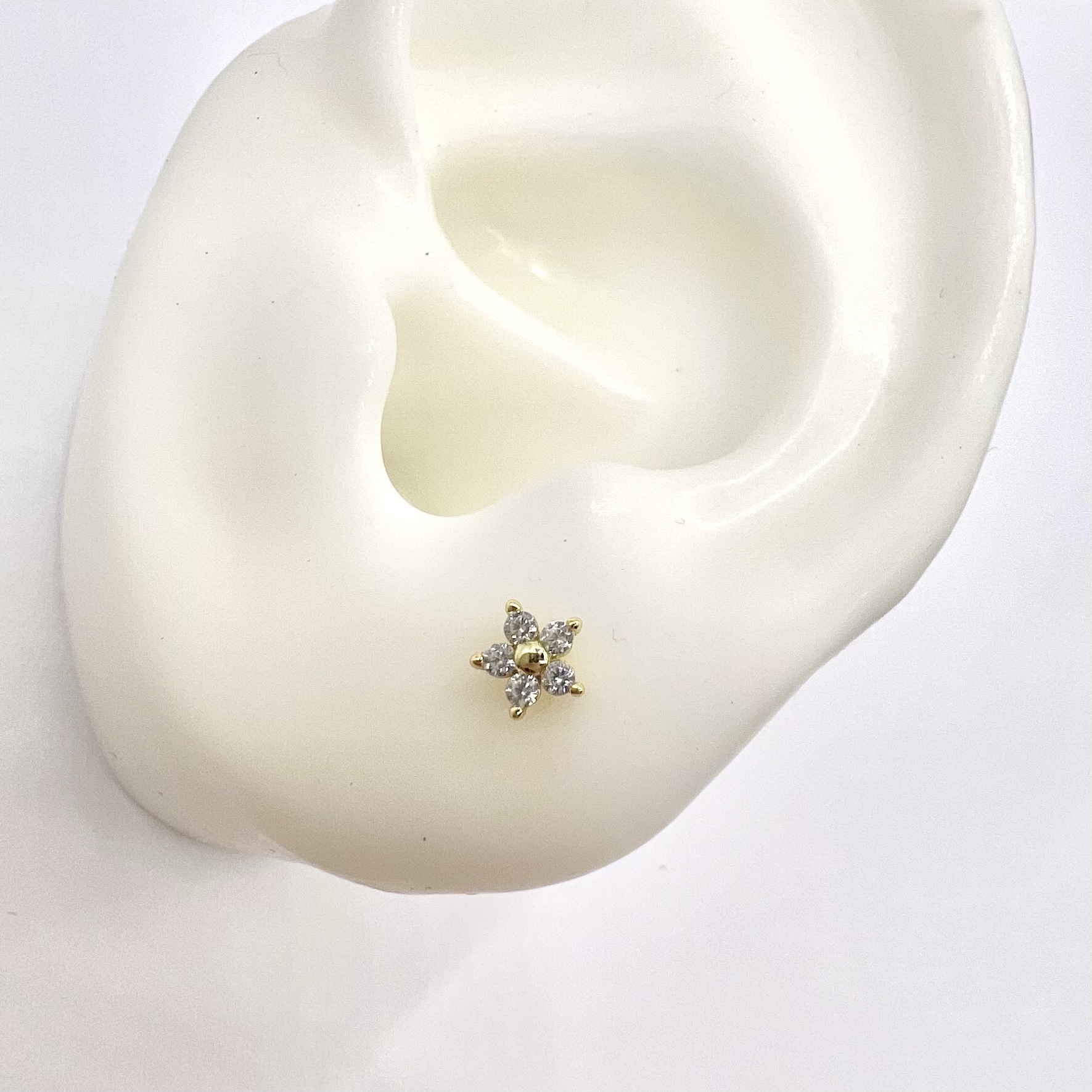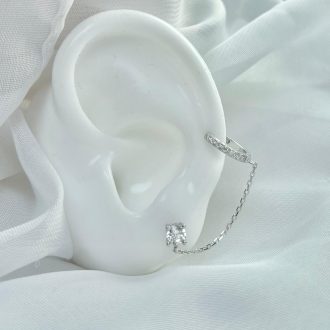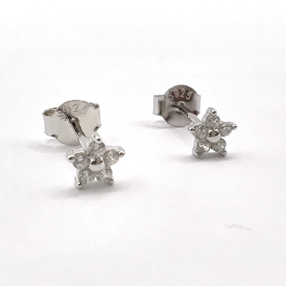 עגיל צמוד בצורת פרח משובץ אבני זרקון מכסף אמיתי 925