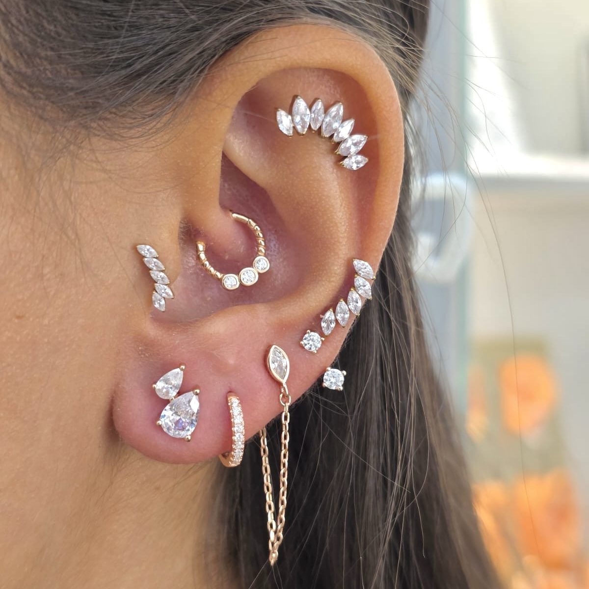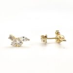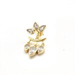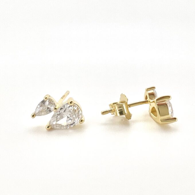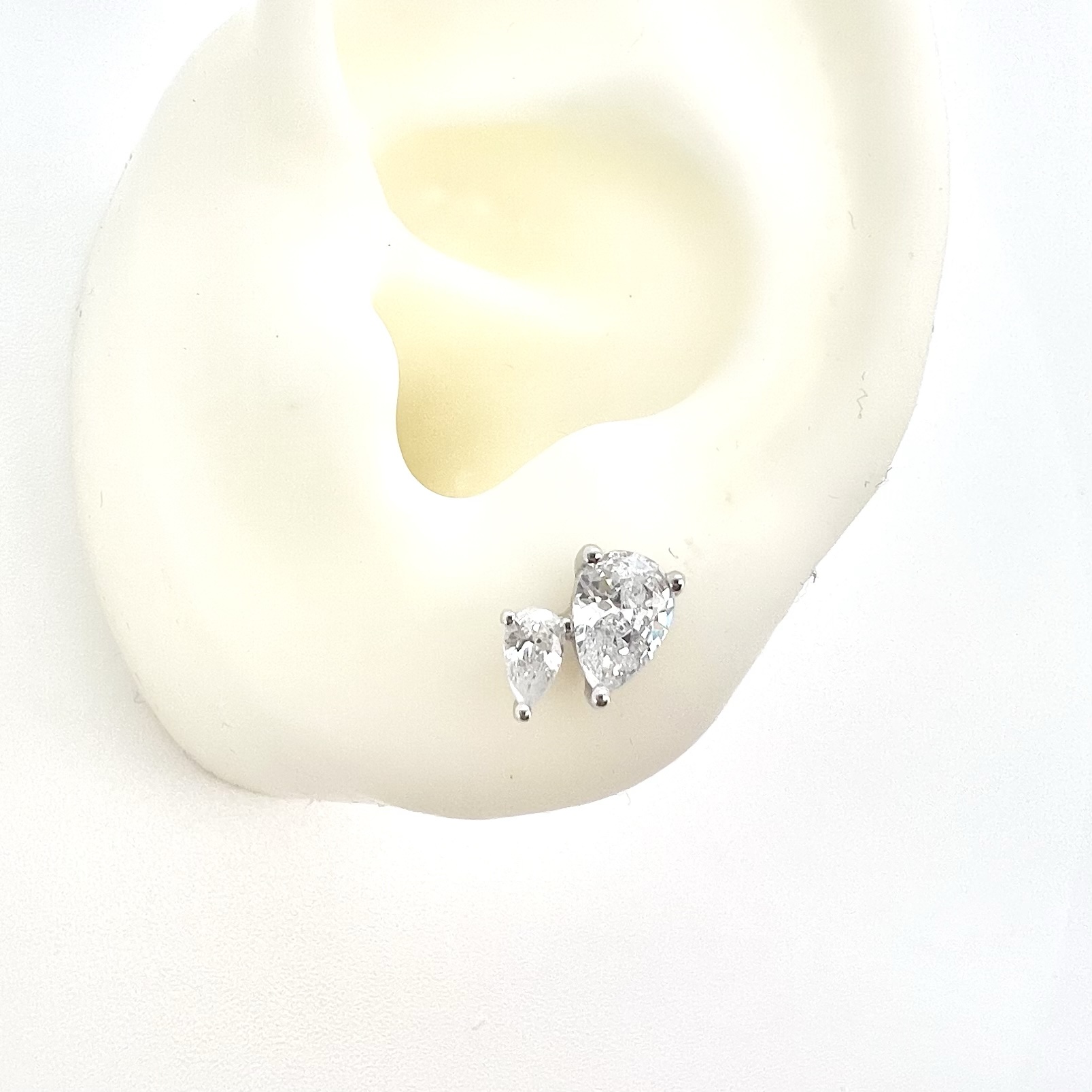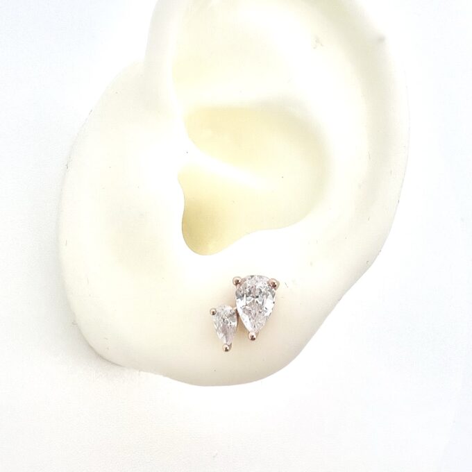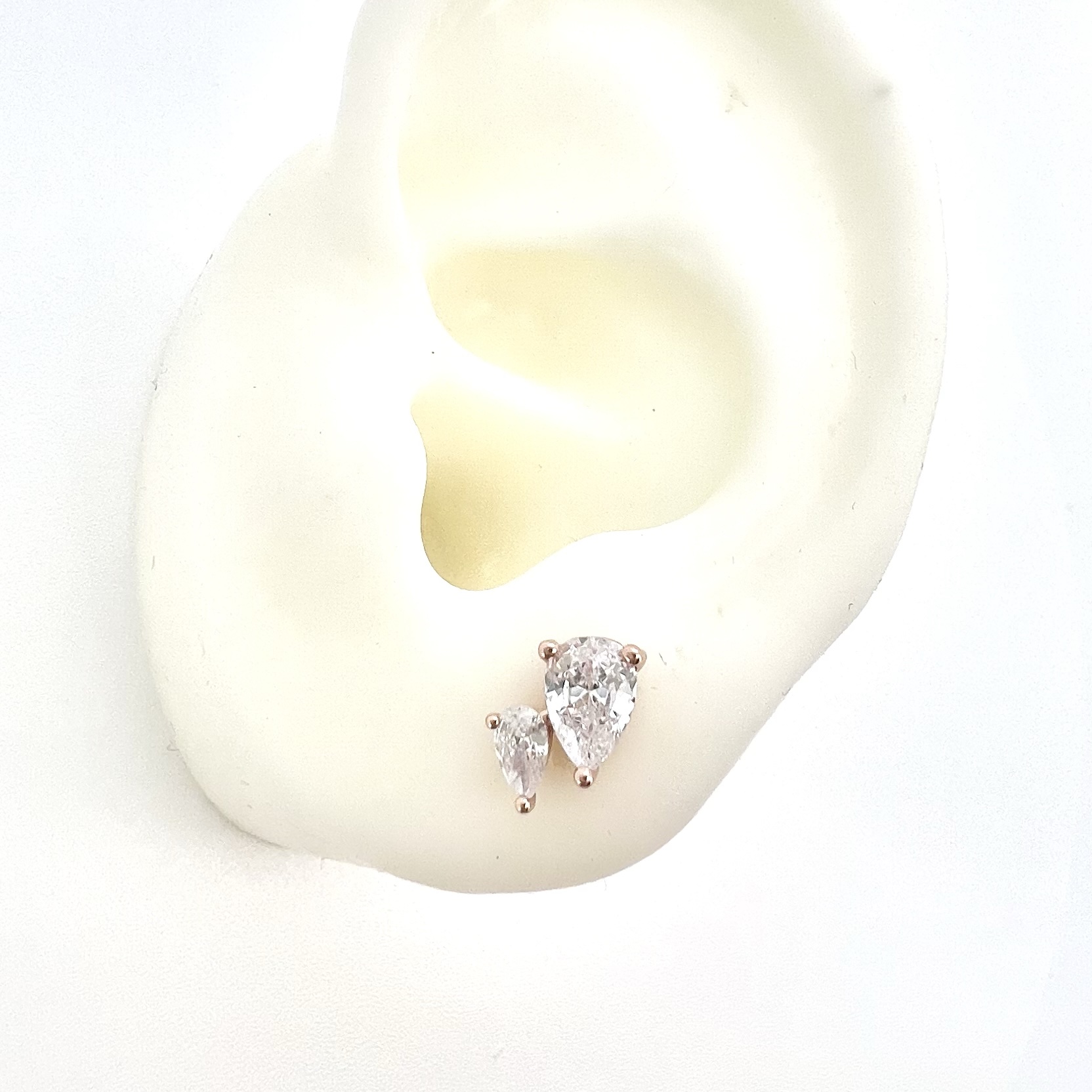 עגיל צמוד משובץ שתי אבני זרקון בצורת טיפה