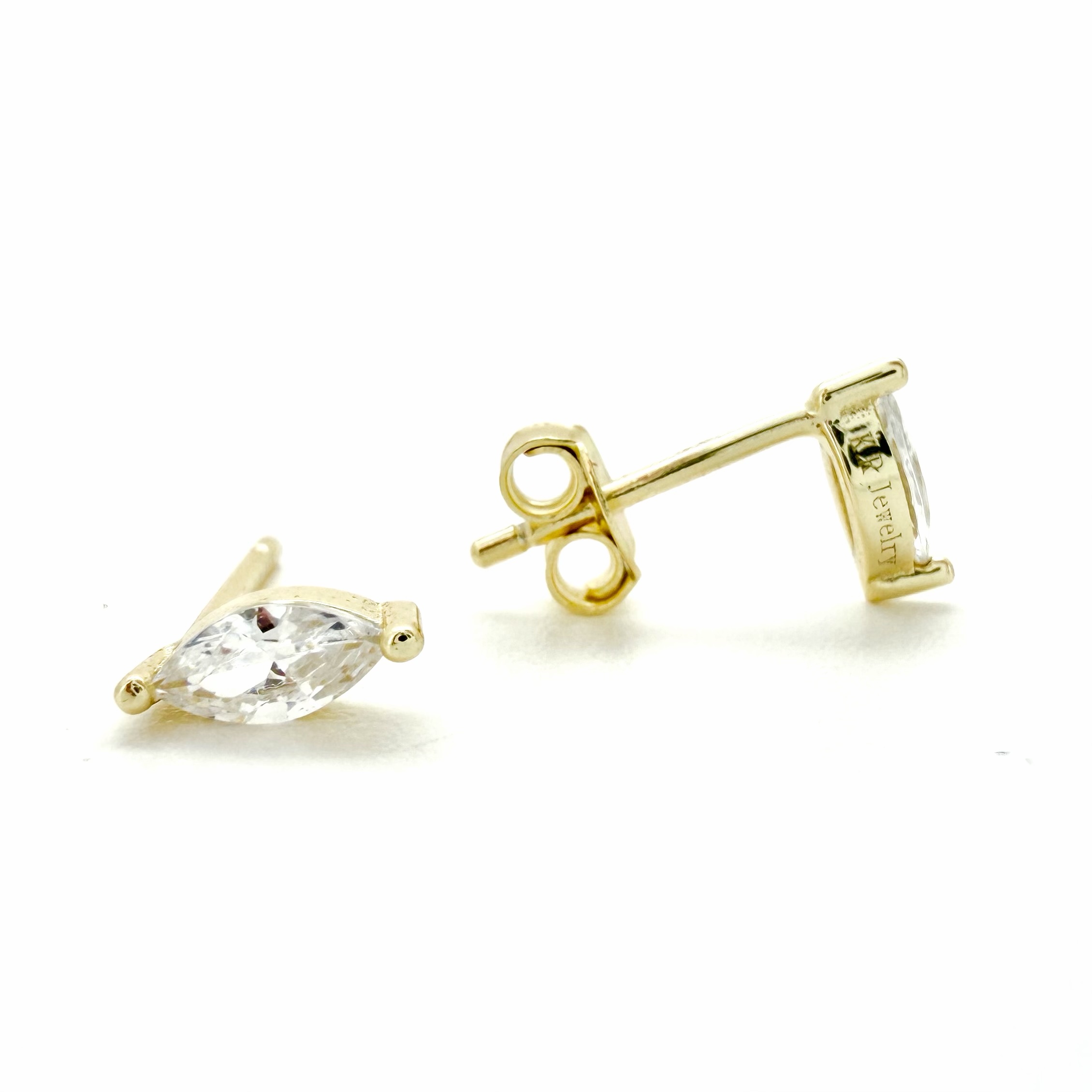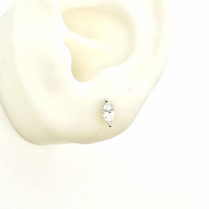 עגיל צמוד משובץ אבן זרקון בצורת מרקיזה