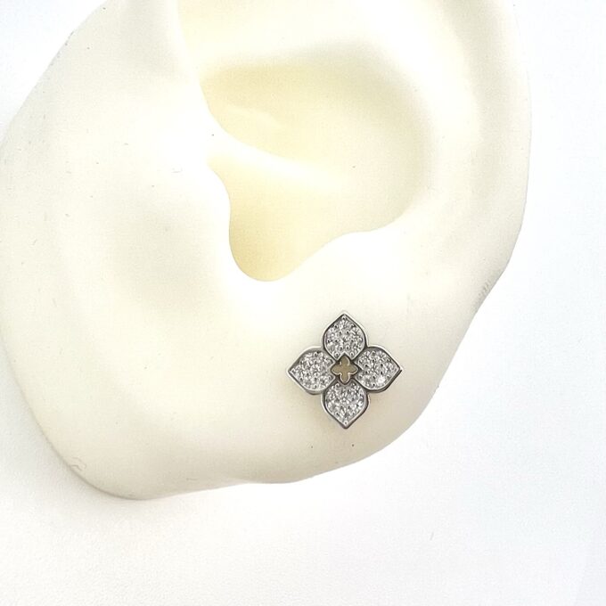 עגיל צמוד בצורת פרח משובץ אבני זרקון