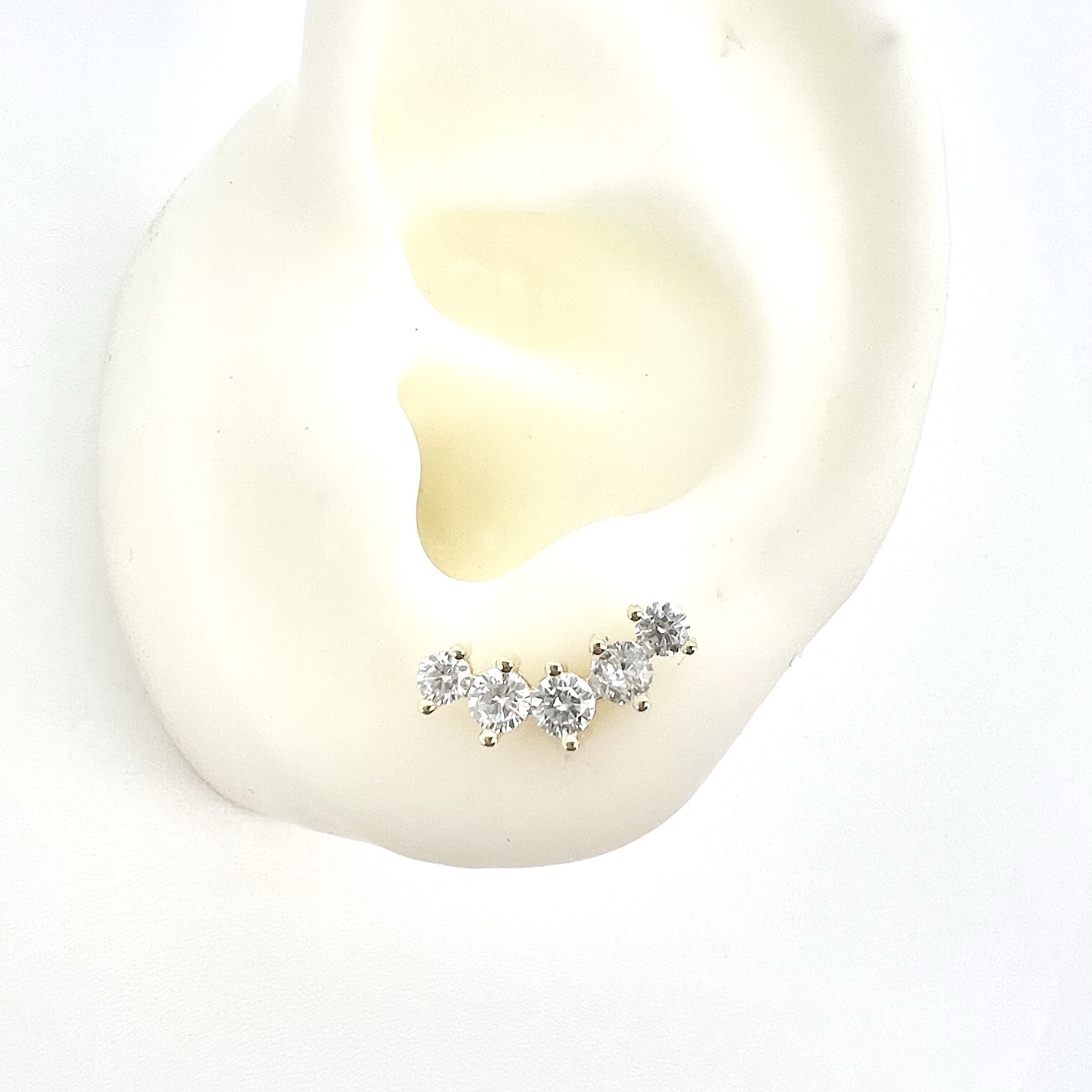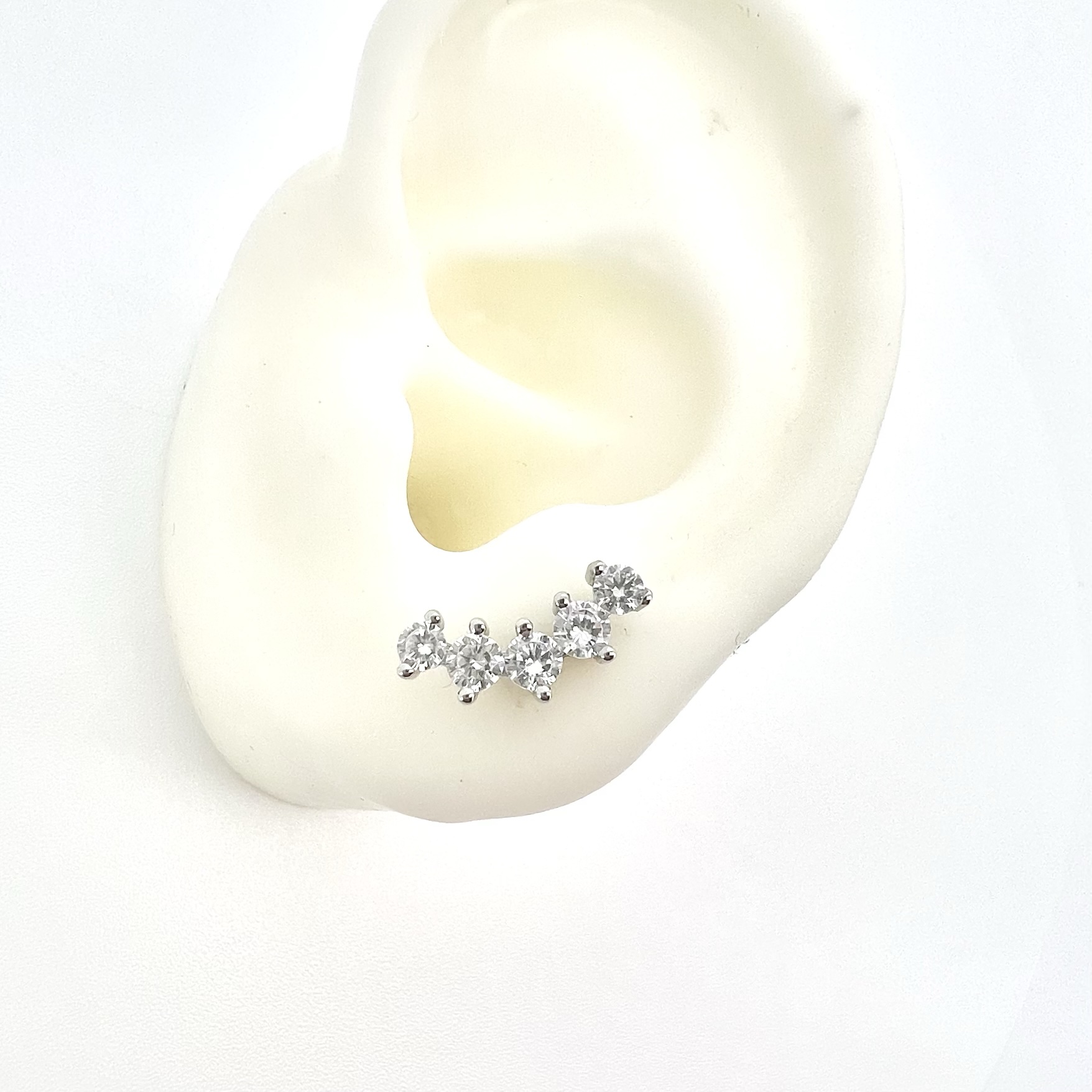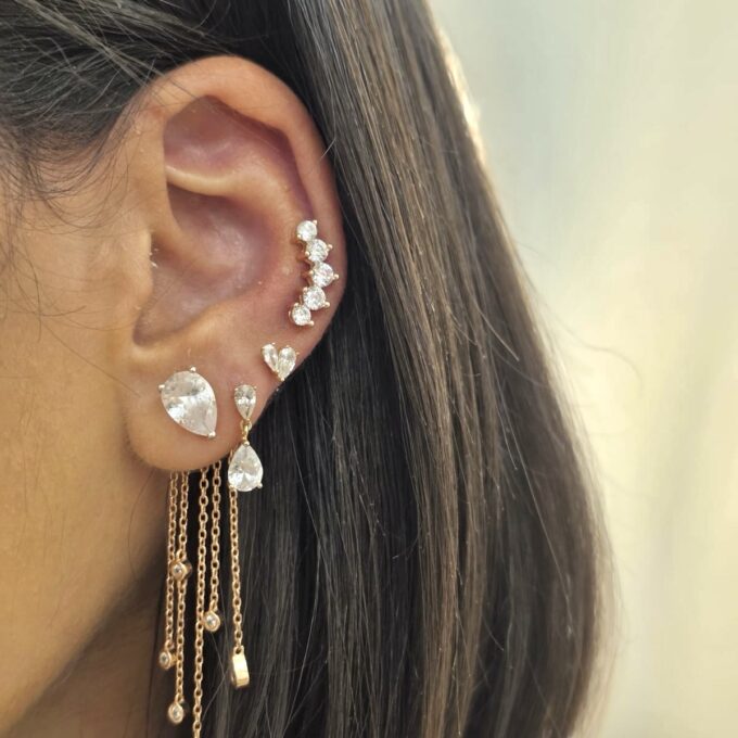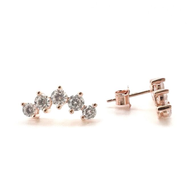 עגיל צמוד משובץ אבני זרקון בצורת קשת