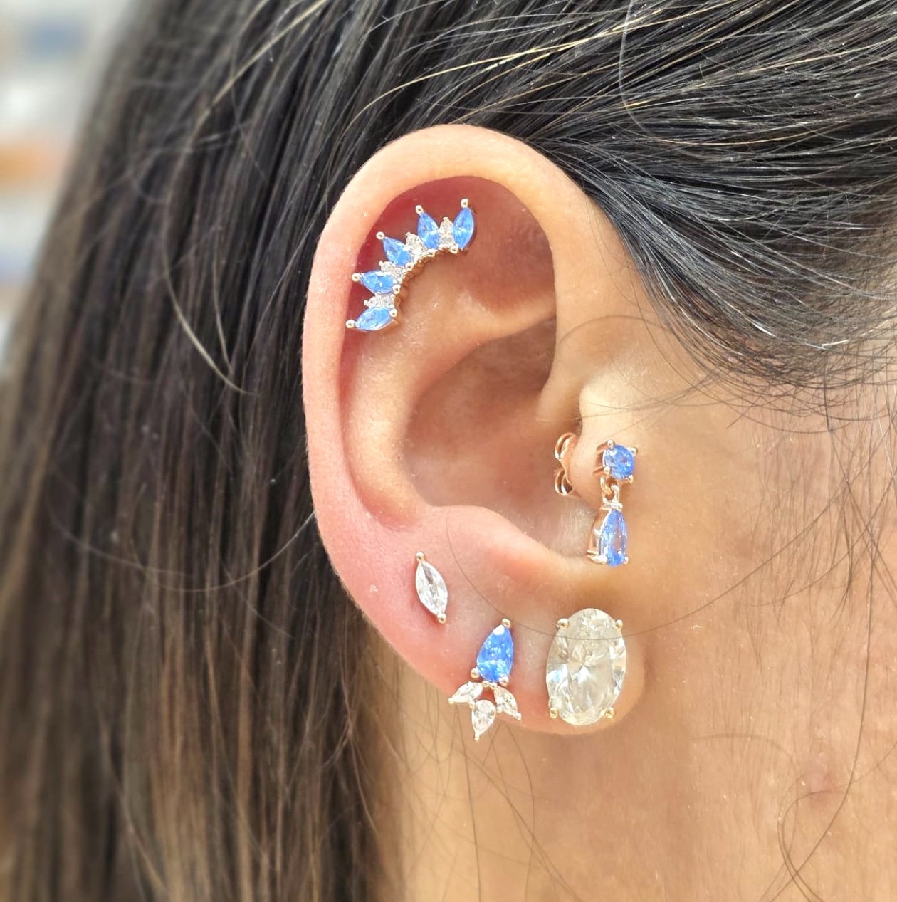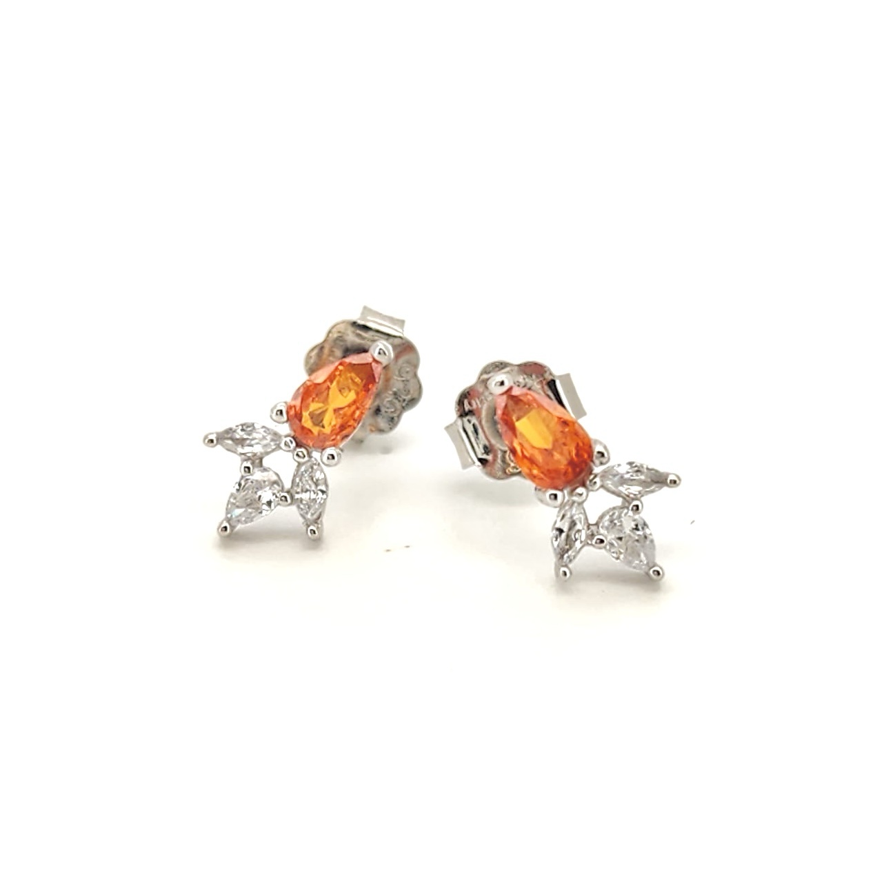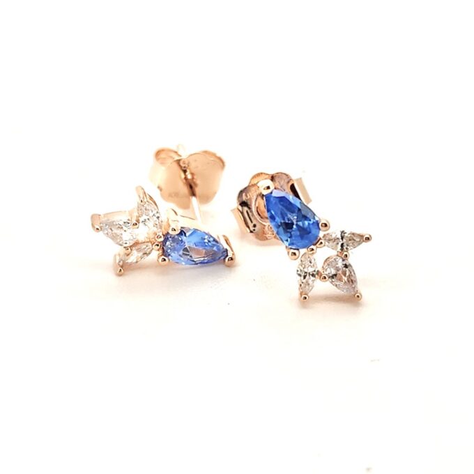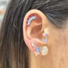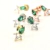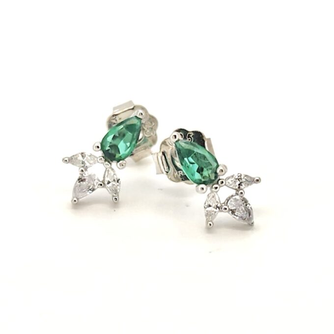 עגיל צמוד משובץ אבן זרקון במגוון צבעים עם שתי אבני זרקון בצורת טיפה מכסף אמיתי 925