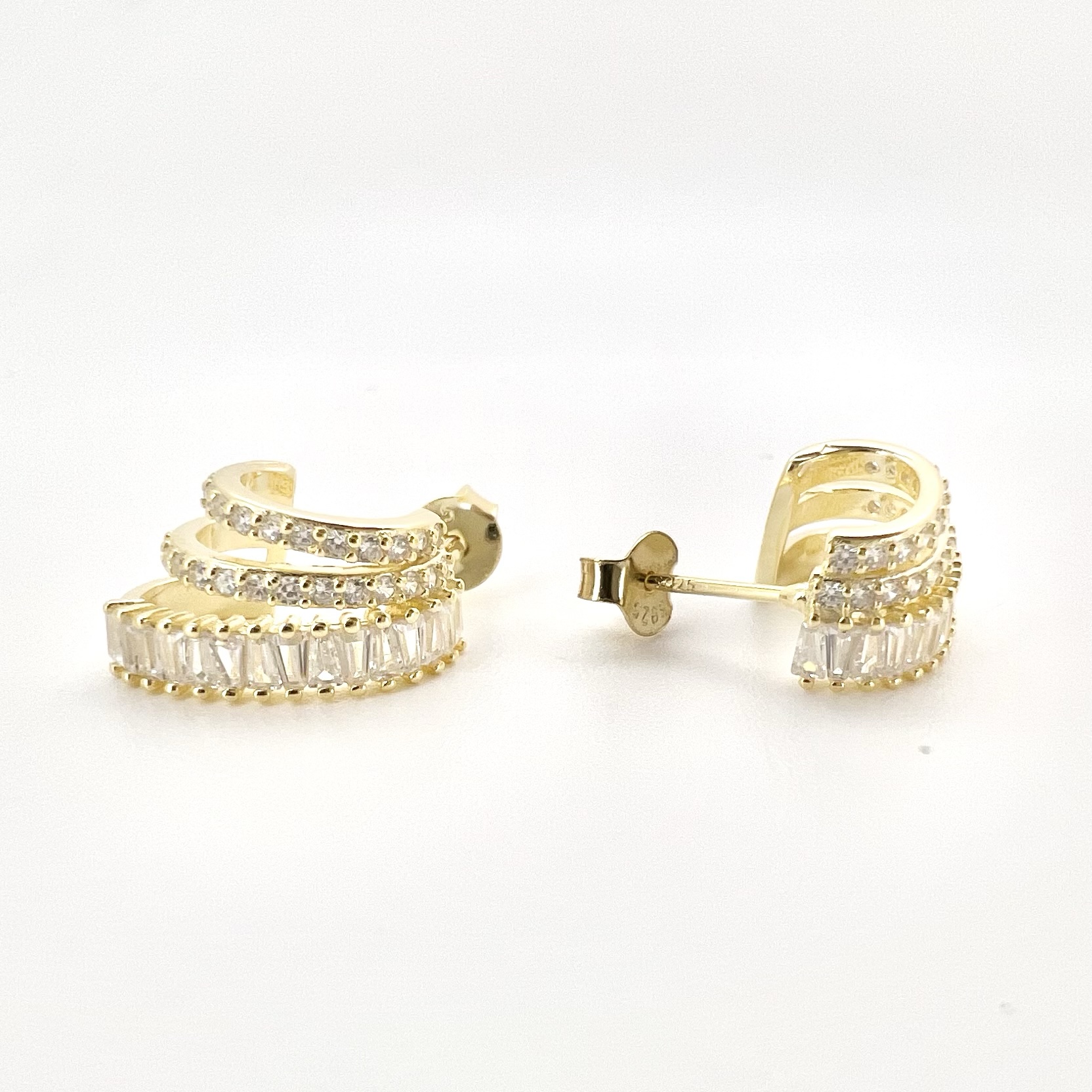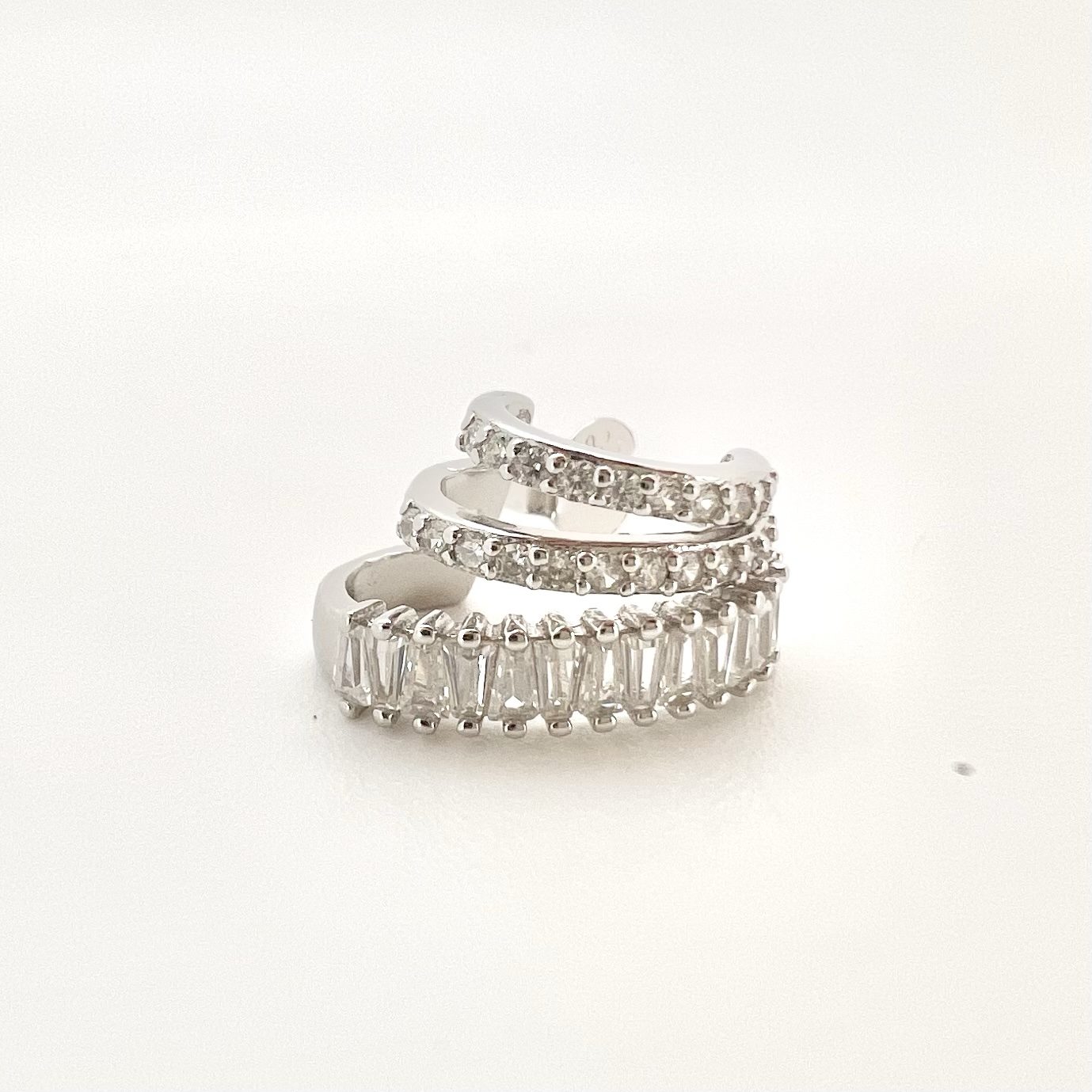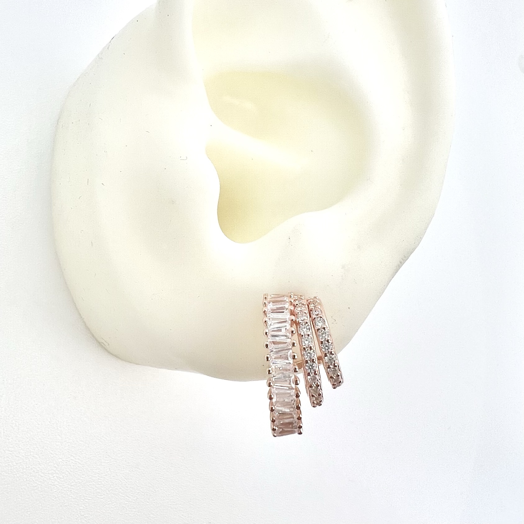 עגיל צמוד עם שלושה חישוקים משובצים אבני זרקון בגדלים שונים