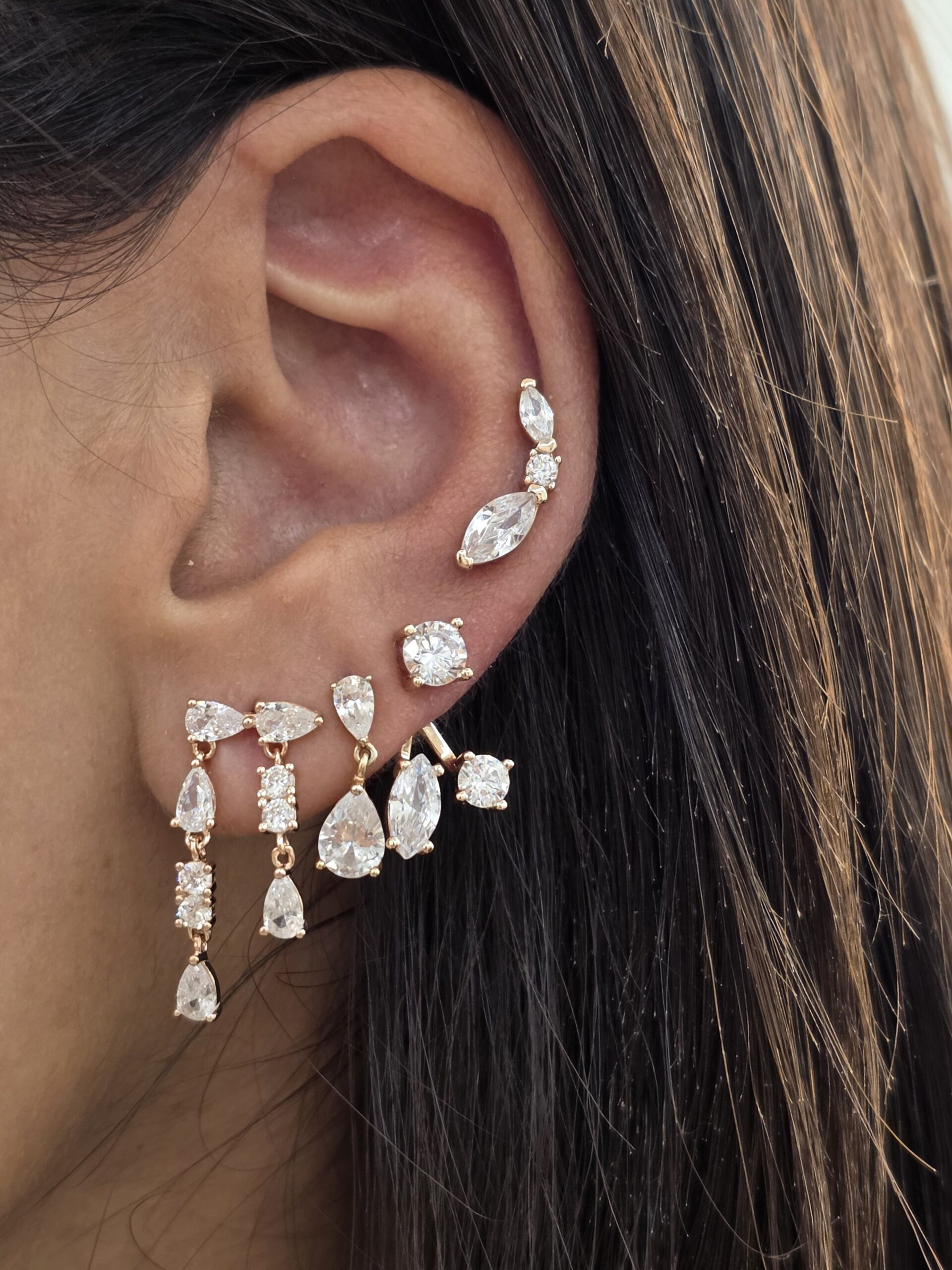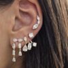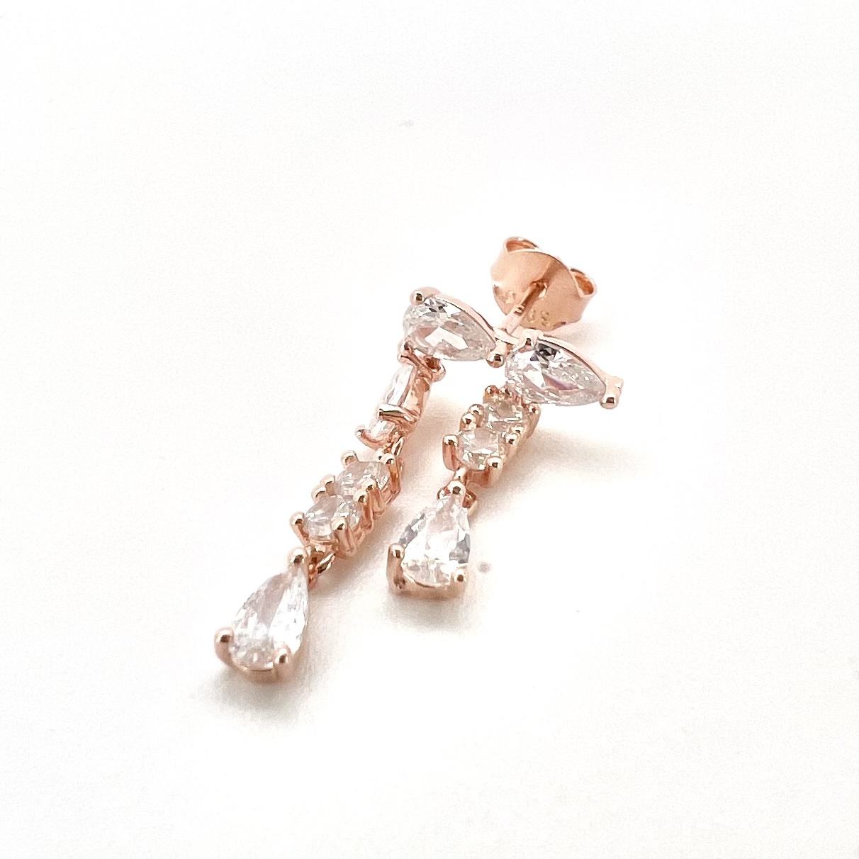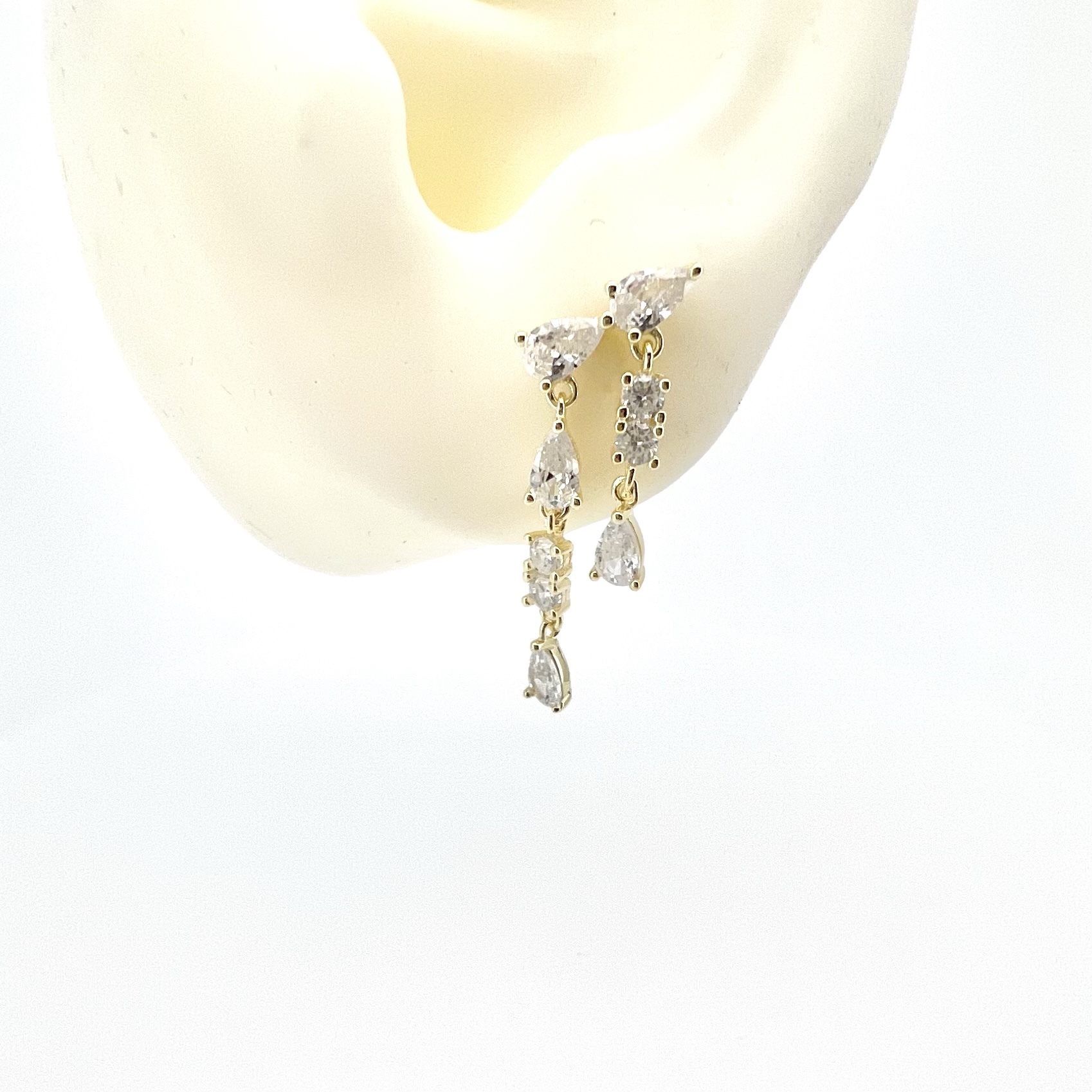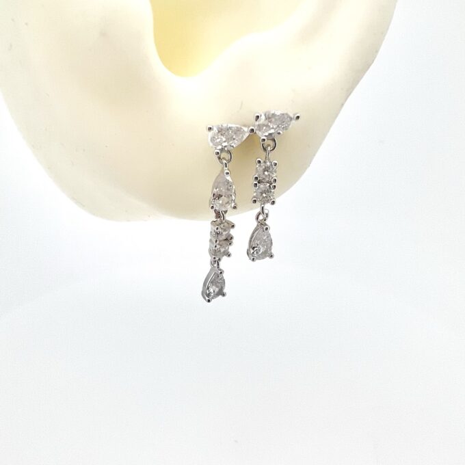 עגיל משובת אבני זרקון עם שתי שורות של אבנים נופלות